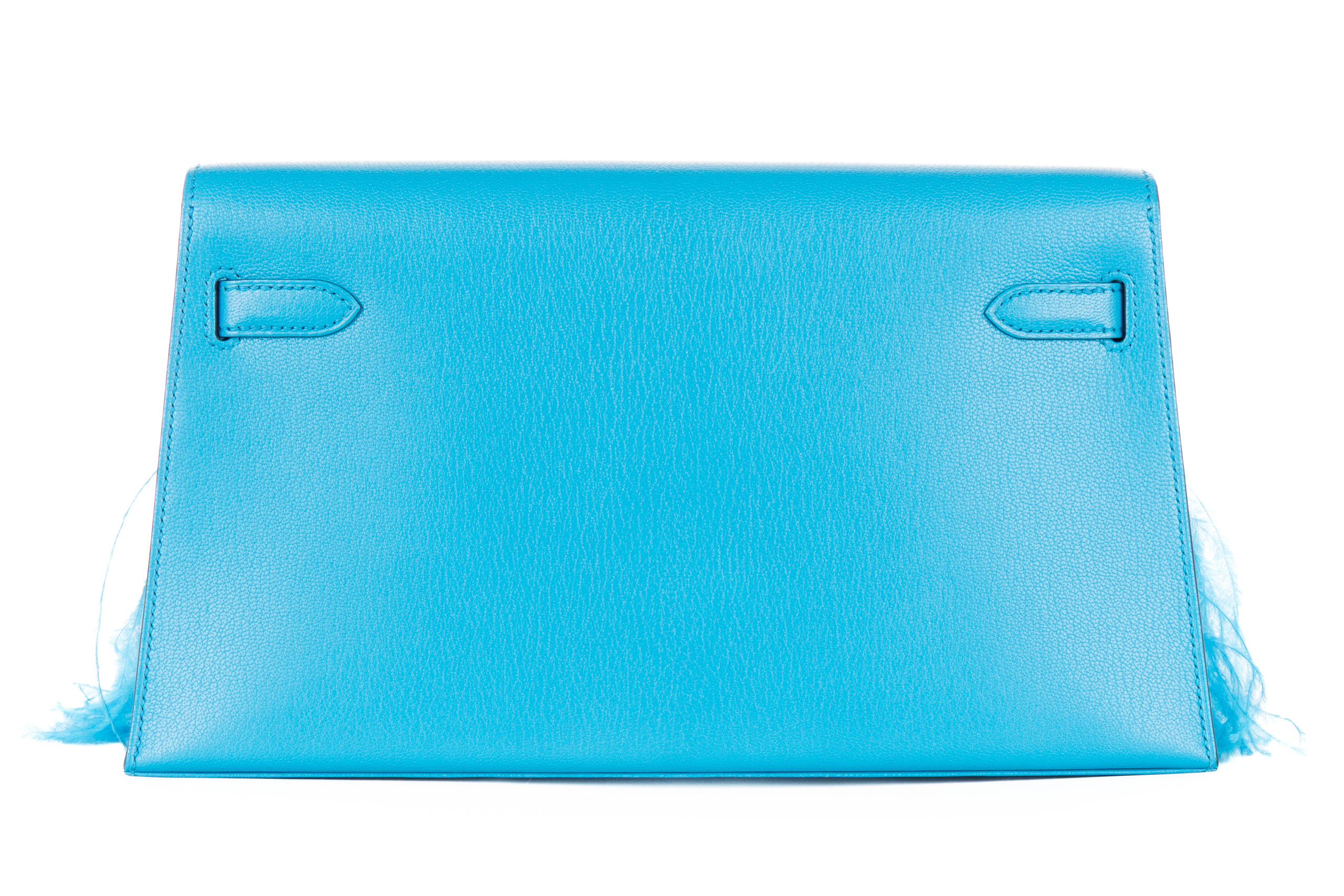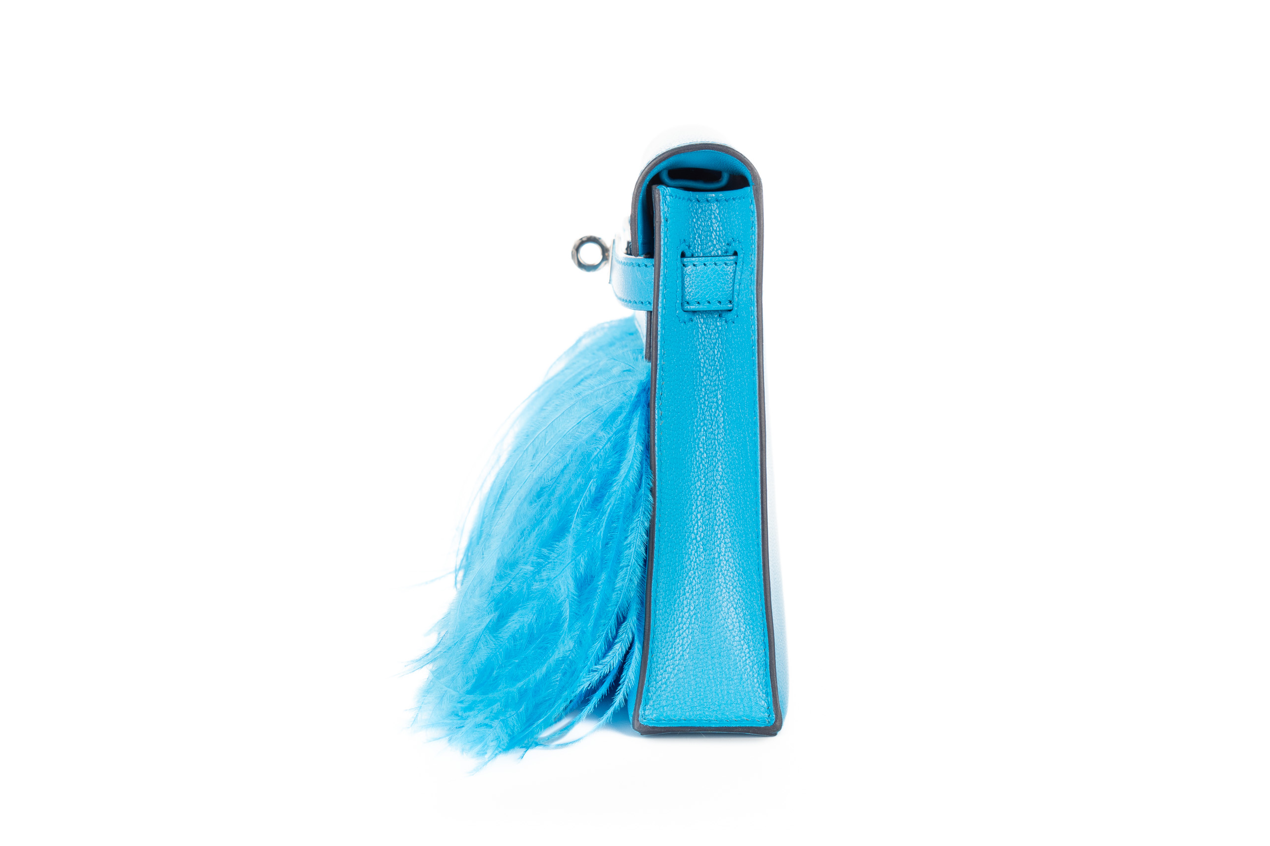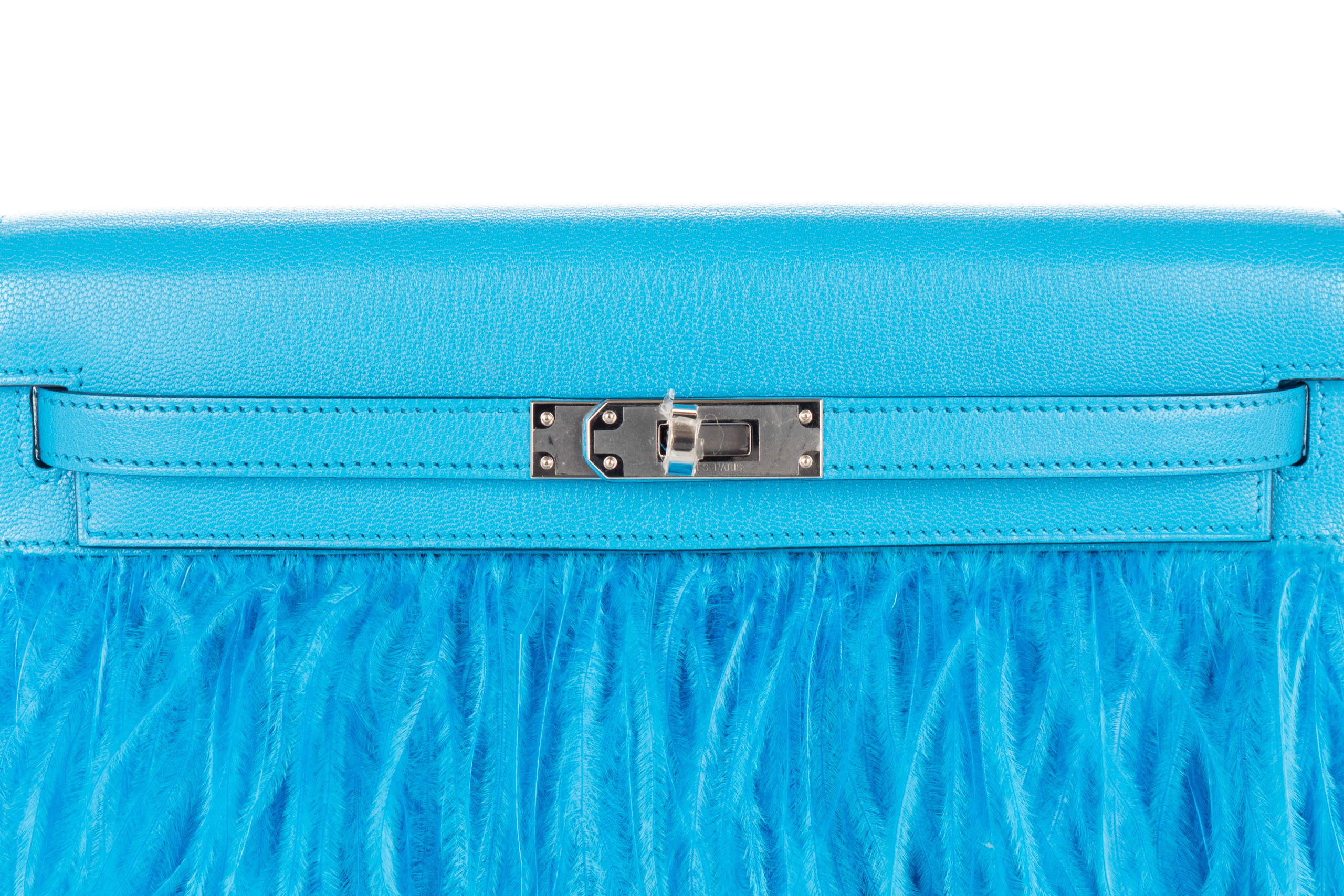 Hermès Kelly Elan Folie Bleu Frida Chevre Chamkila Ostrich Feather Palladium Hardware