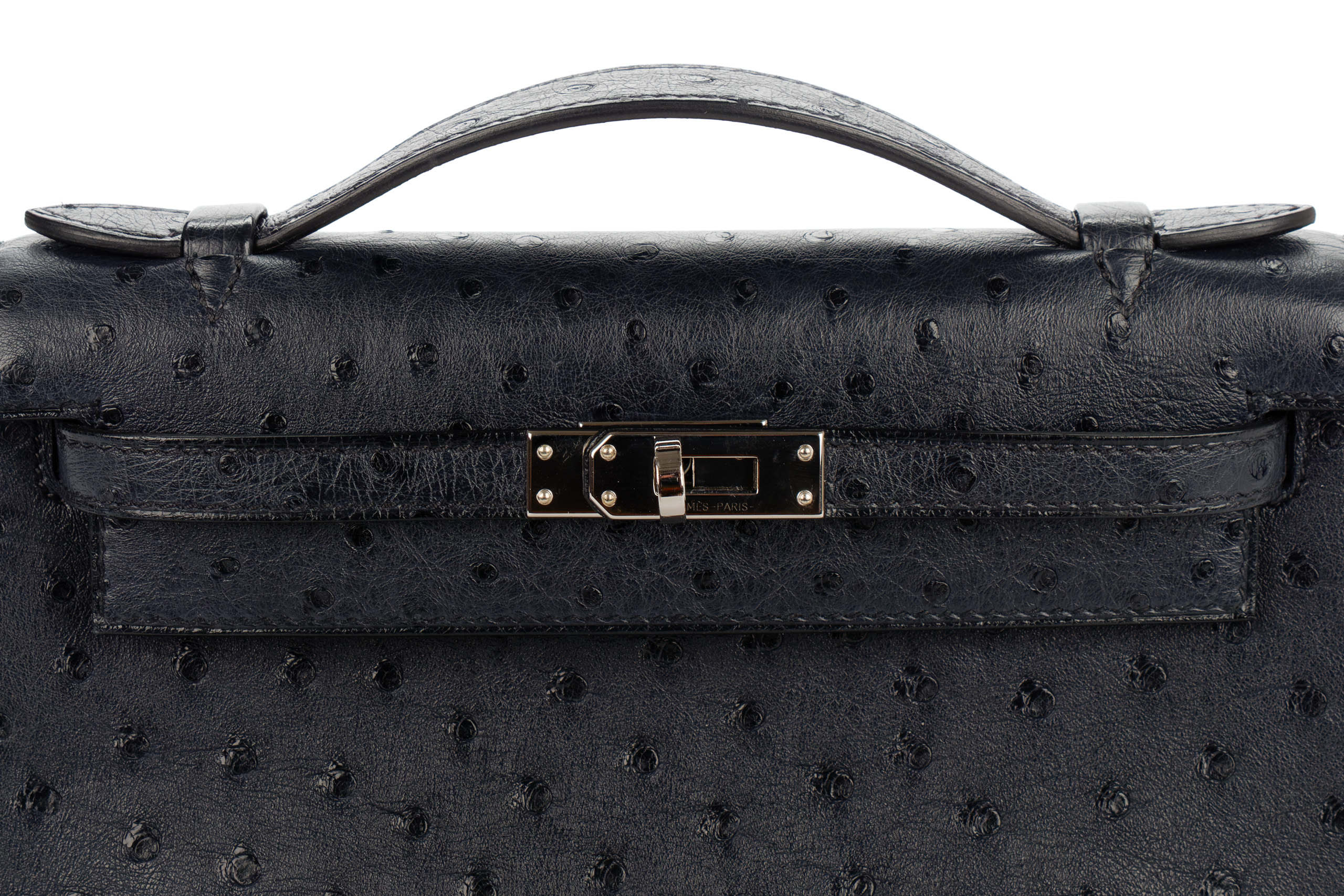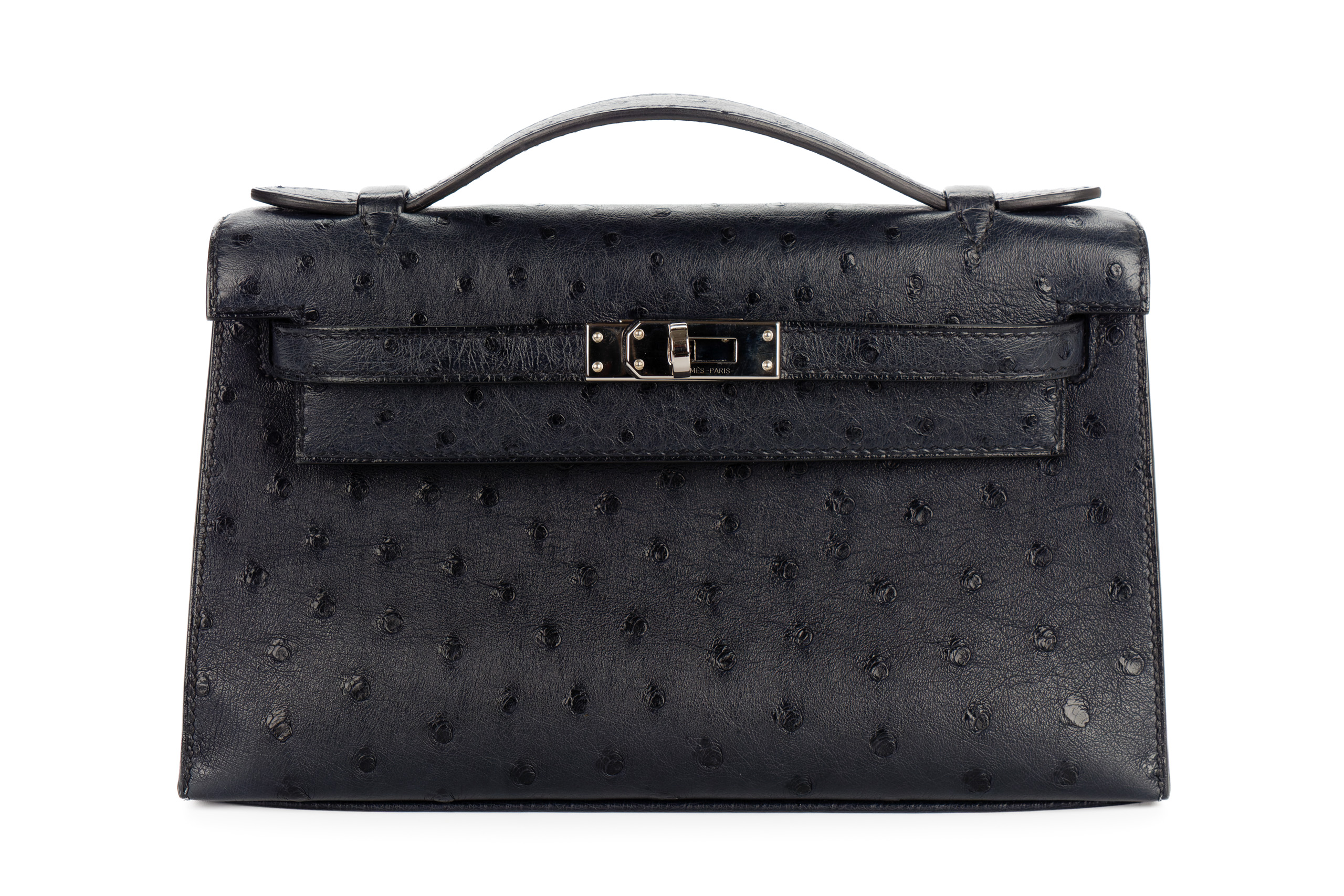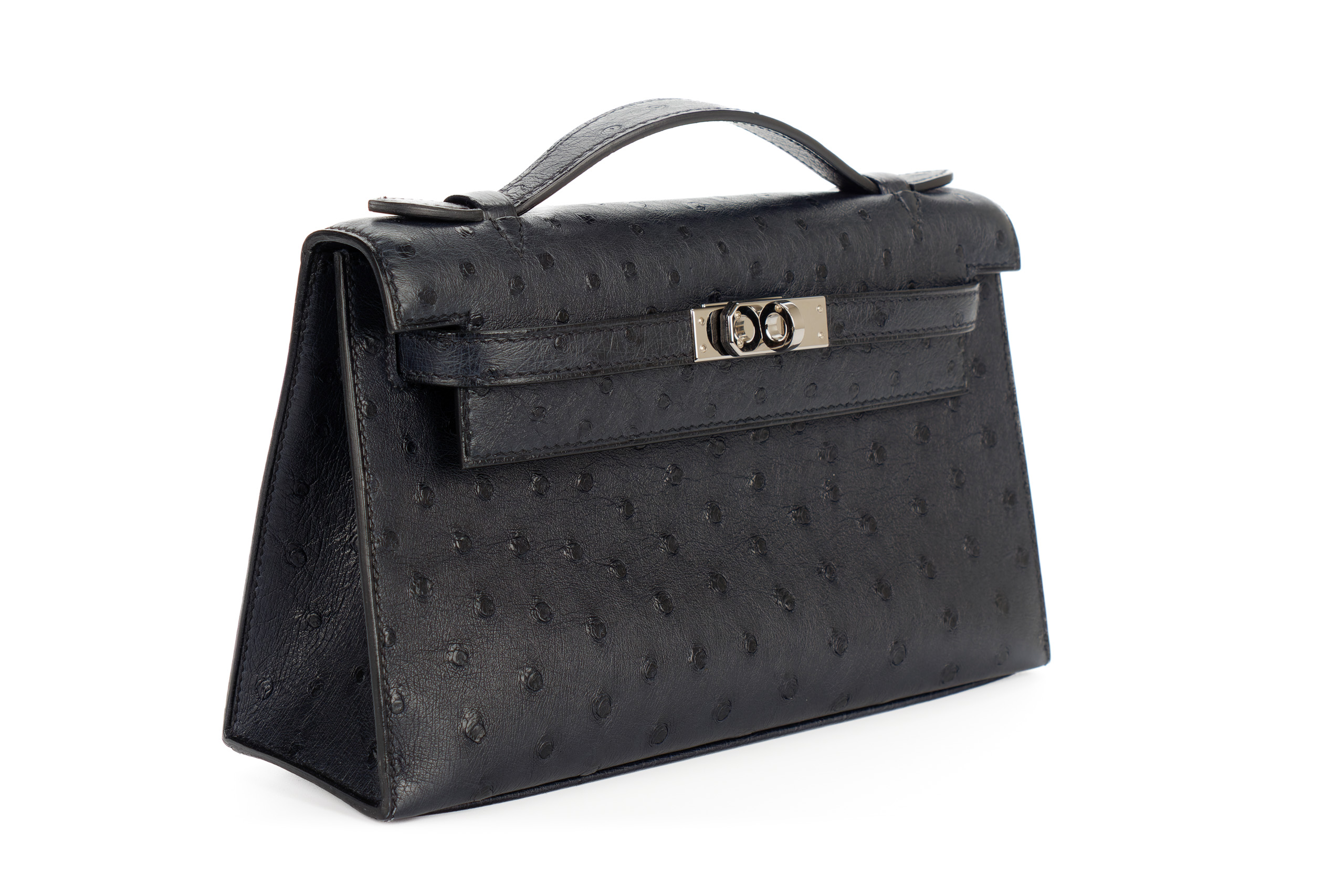 Hermès Kelly Pochette Bleu Indigo Ostrich Palladium Hardware