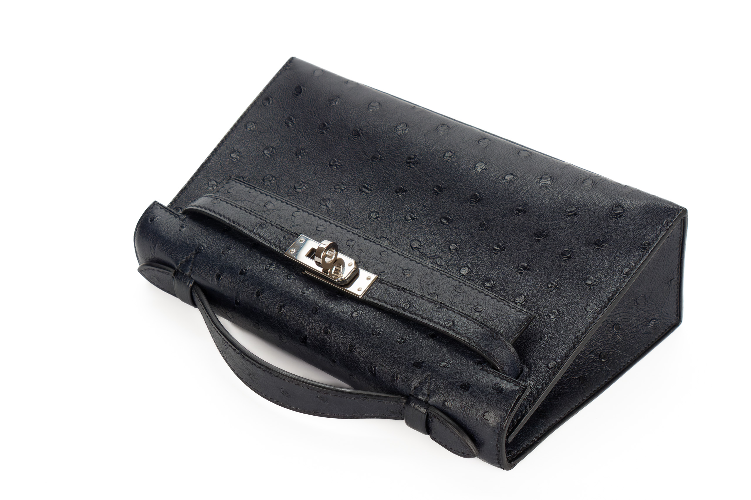 Hermès Kelly Pochette Bleu Indigo Ostrich Palladium Hardware / Y stamp 2020 Pre-Loved condition