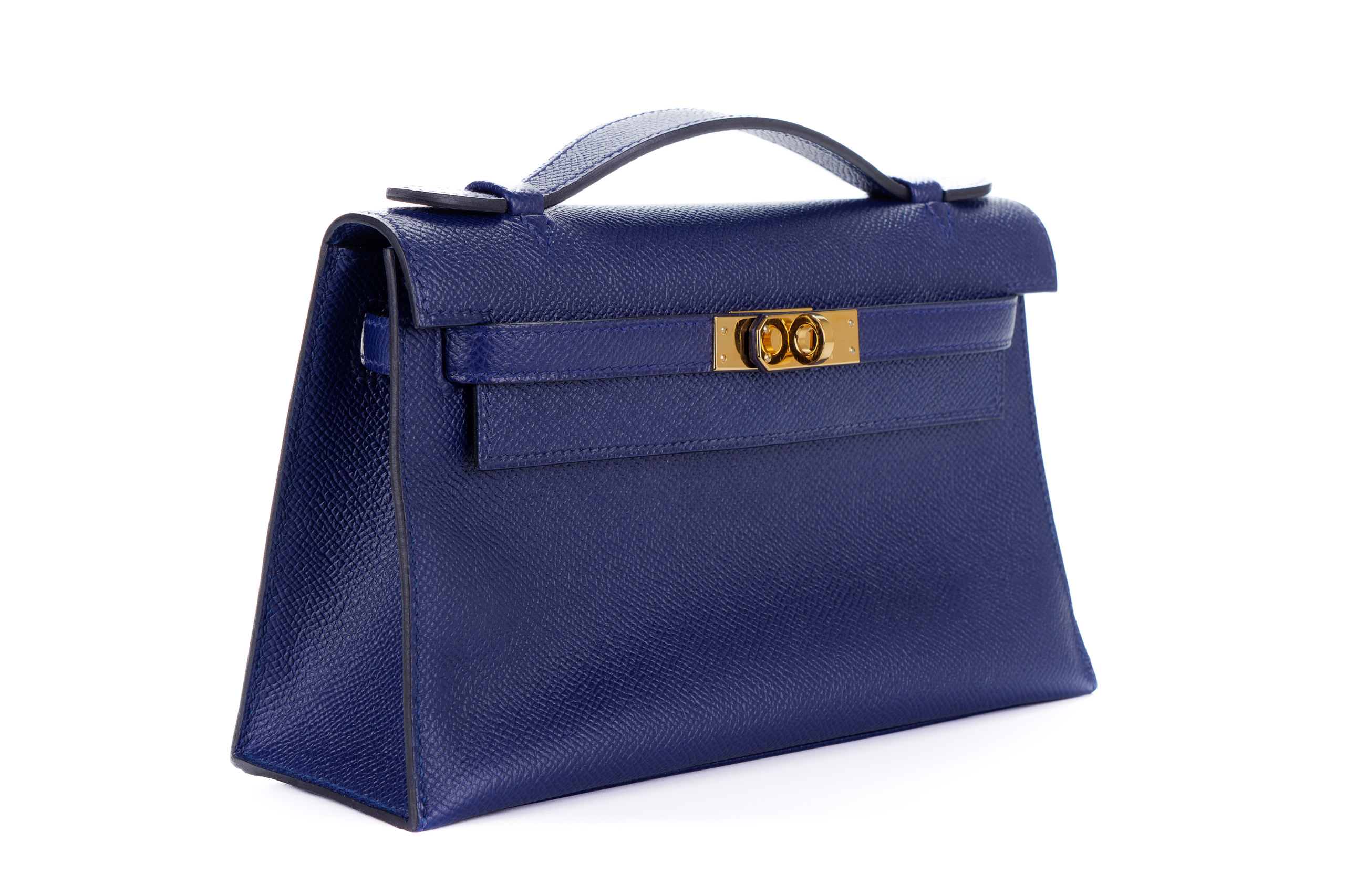 Hermès Kelly Pochette Bleu Saphir Epsom Gold Hardware / X Stamp 2016 Pre-Loved