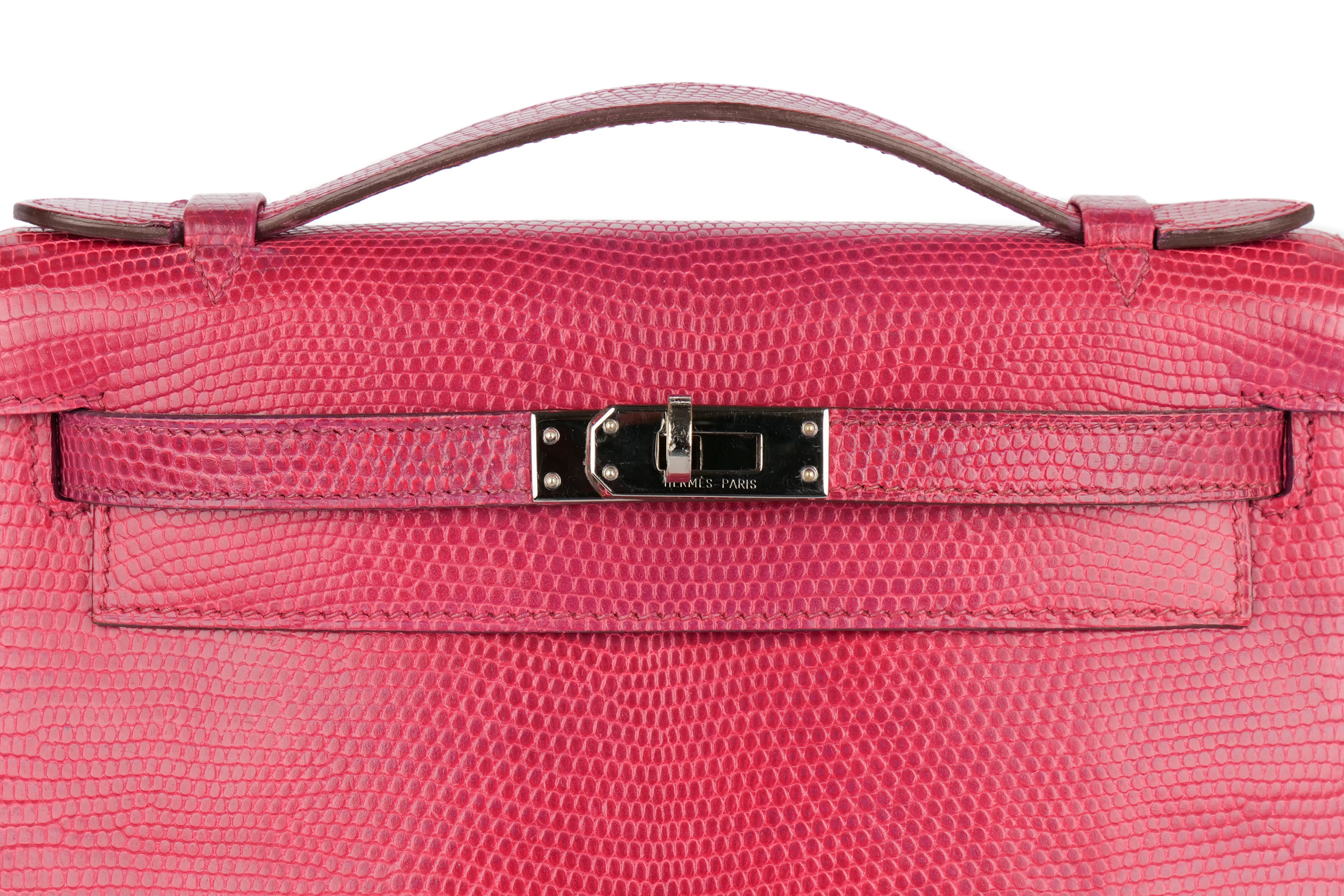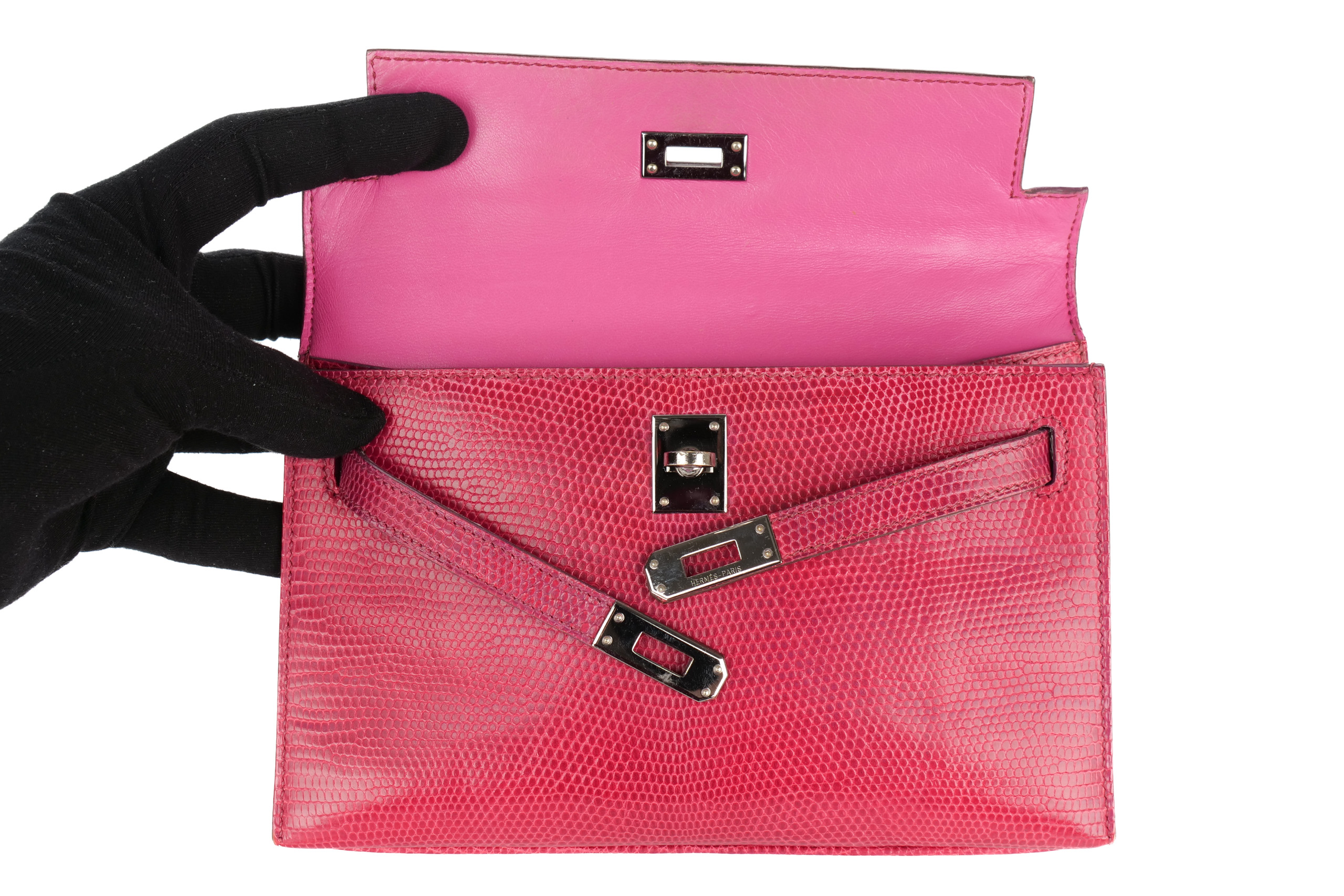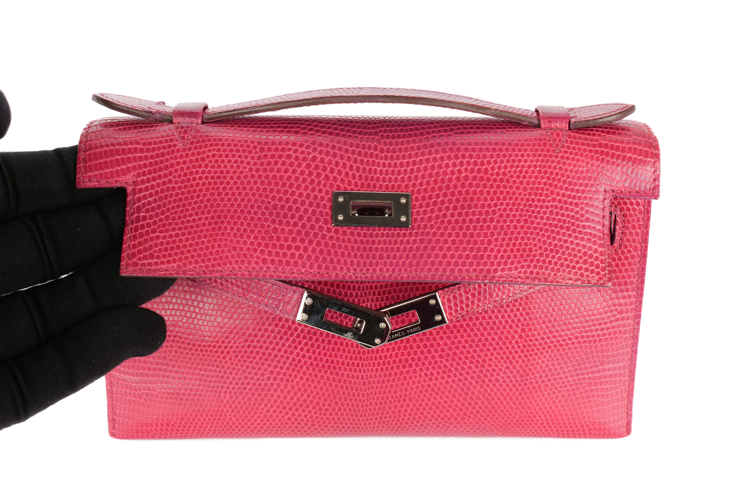 Hermès Kelly Pochette Fuschia Lizard Ruthenium Hardware