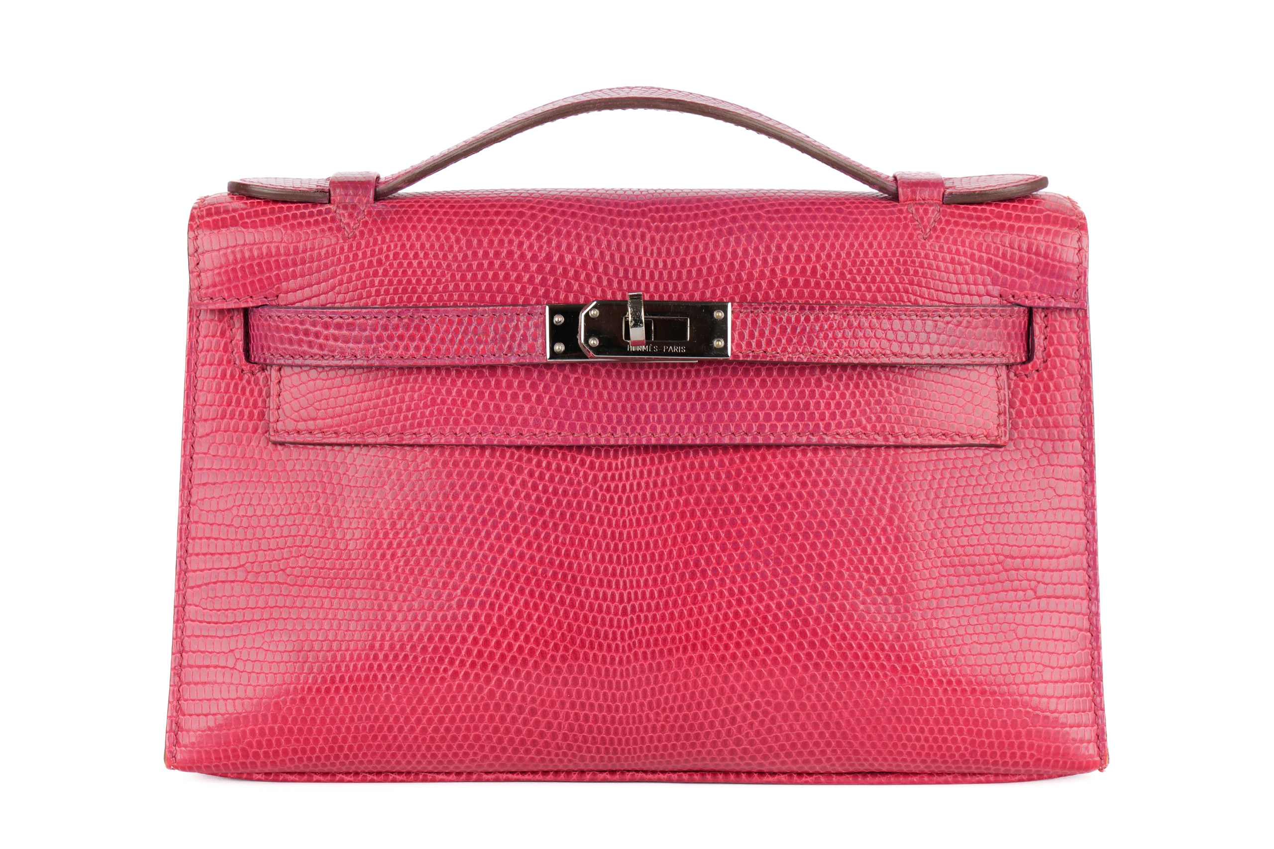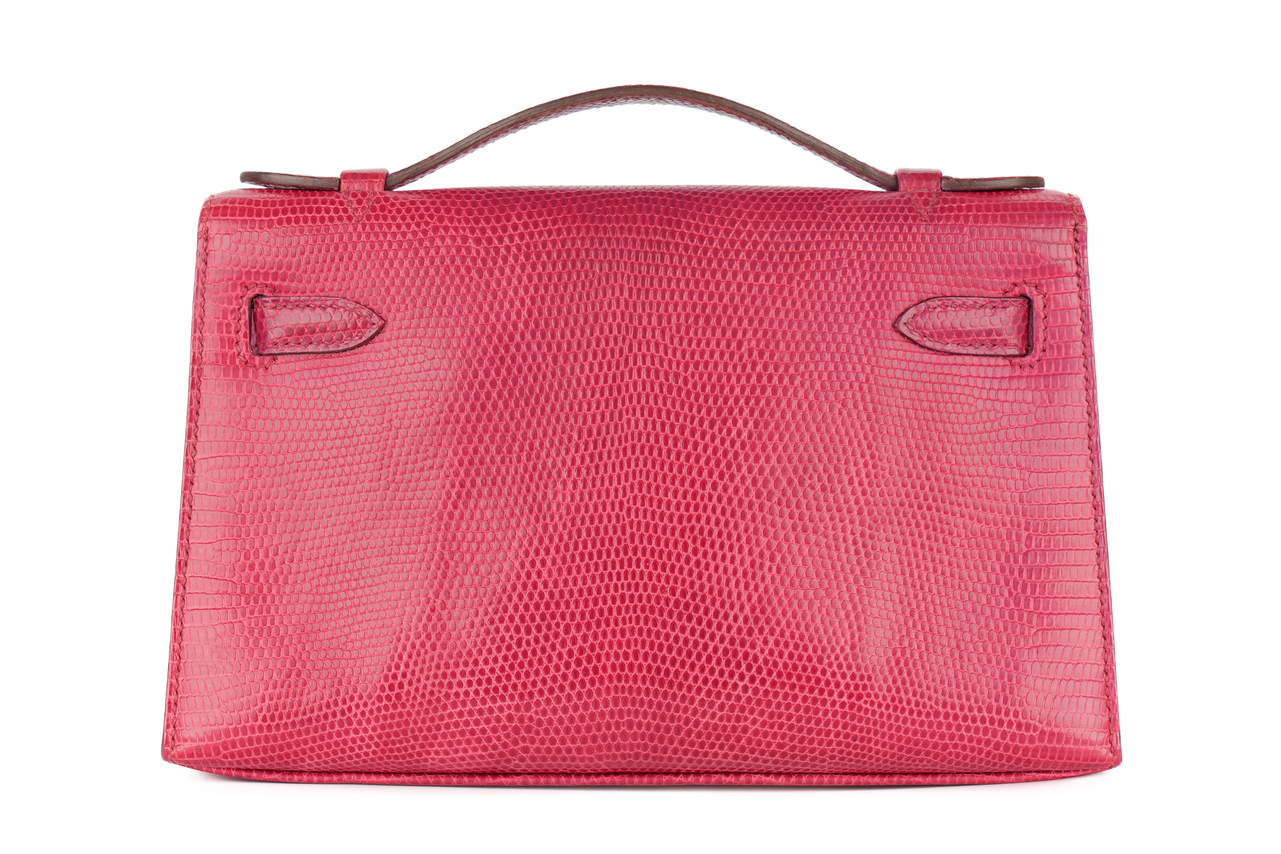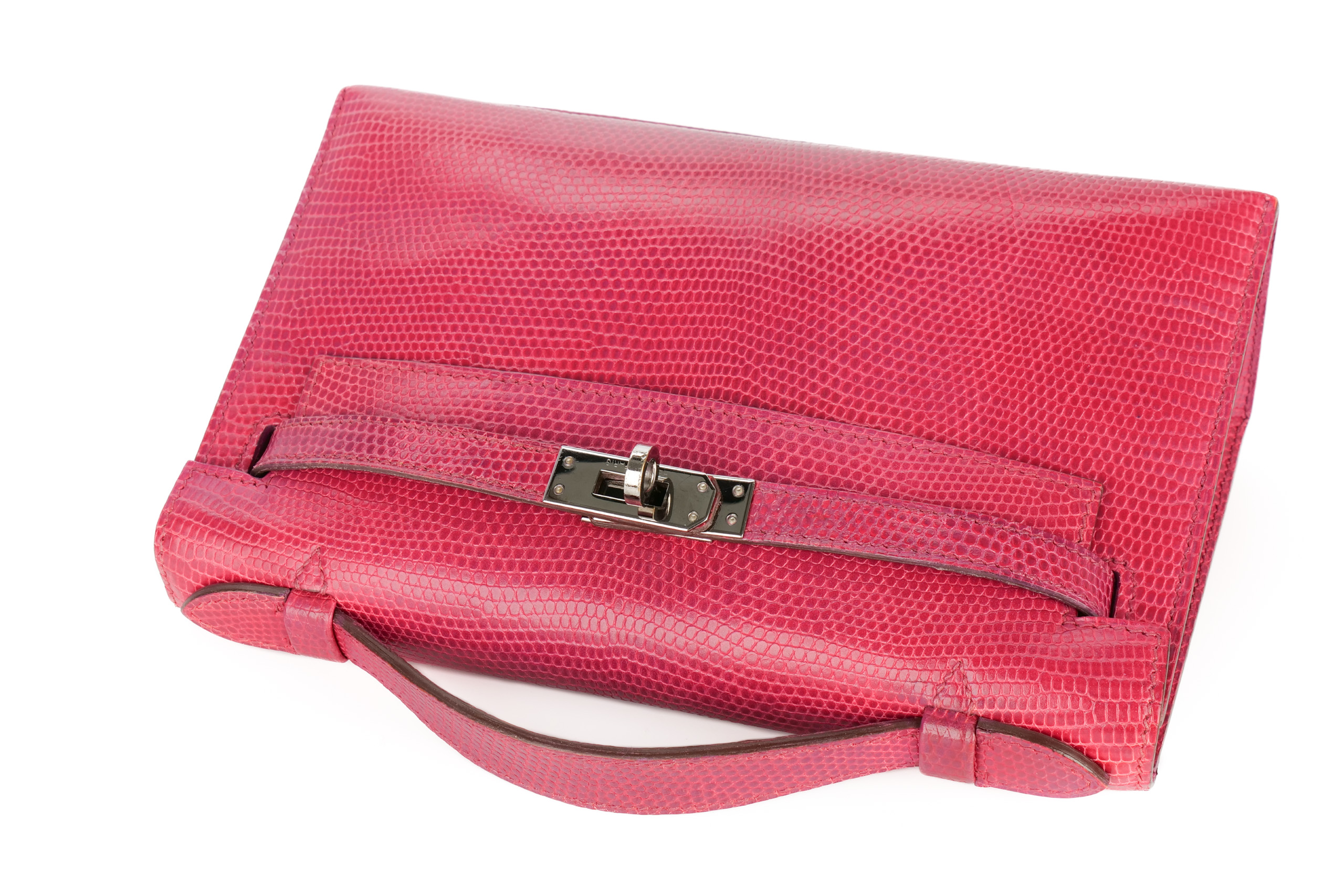 Hermès Kelly Pochette Fuschia Lizard Ruthenium Hardware