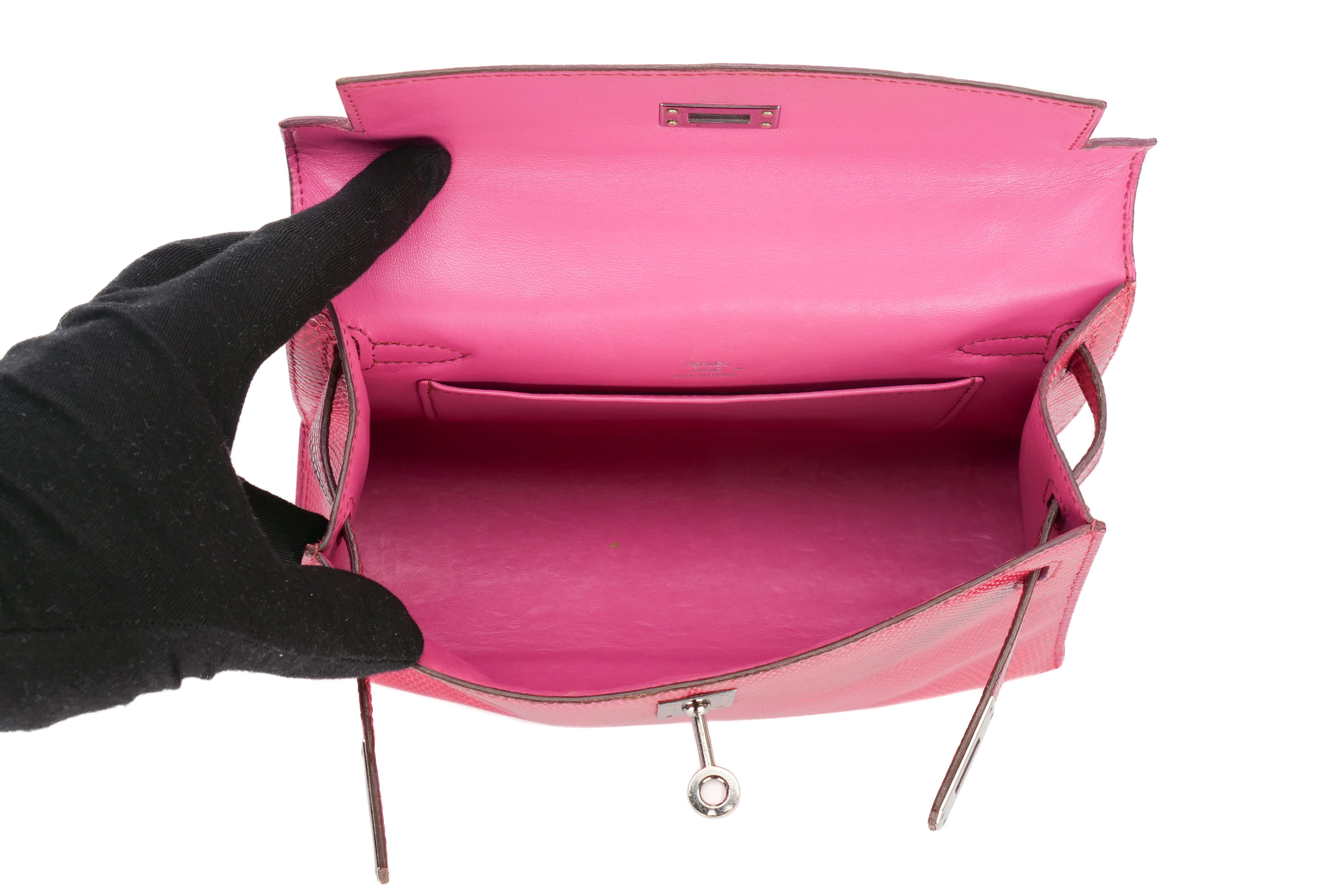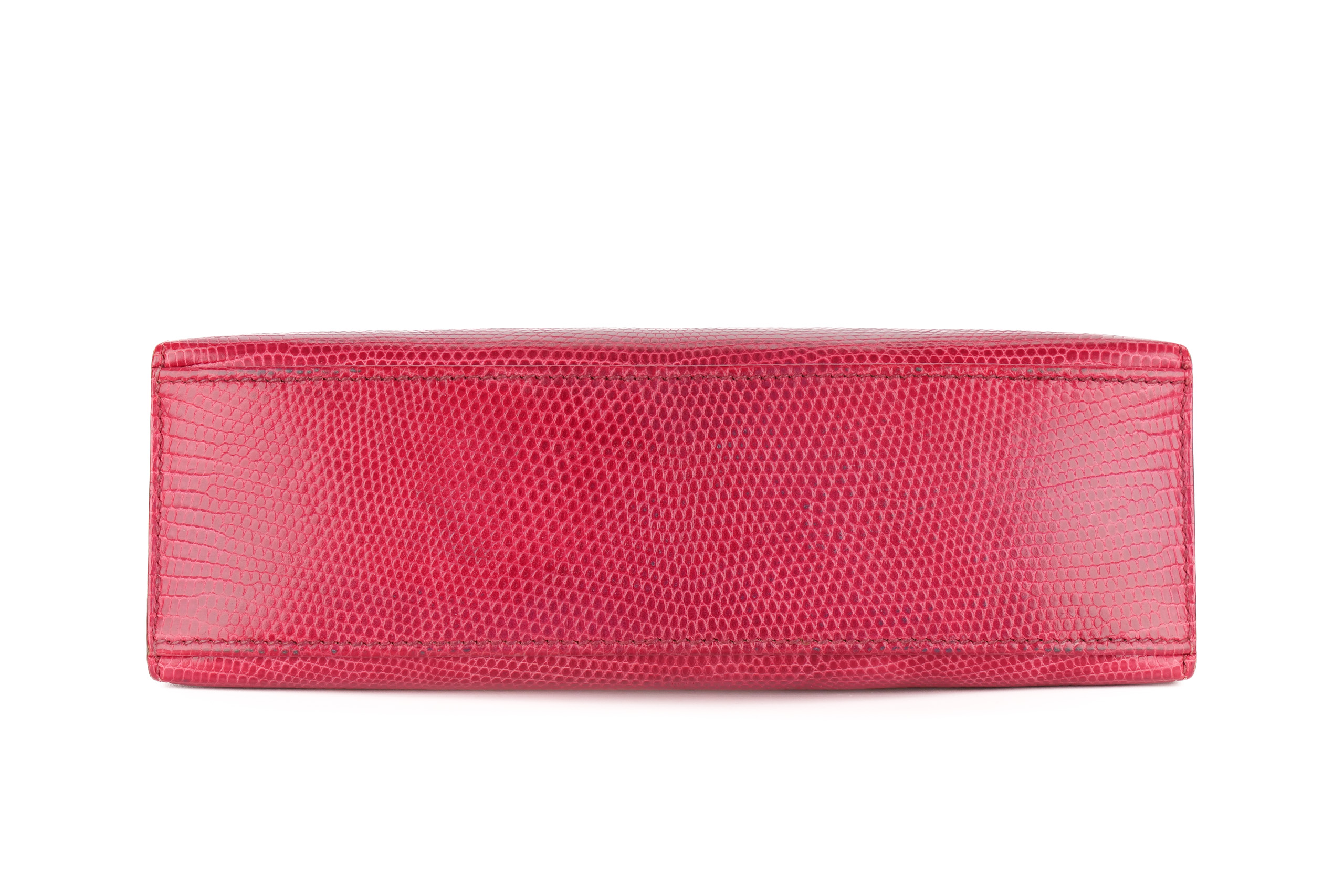 Hermès Kelly Pochette Fuschia Lizard Ruthenium Hardware / J Square Stamp 2006, Preloved