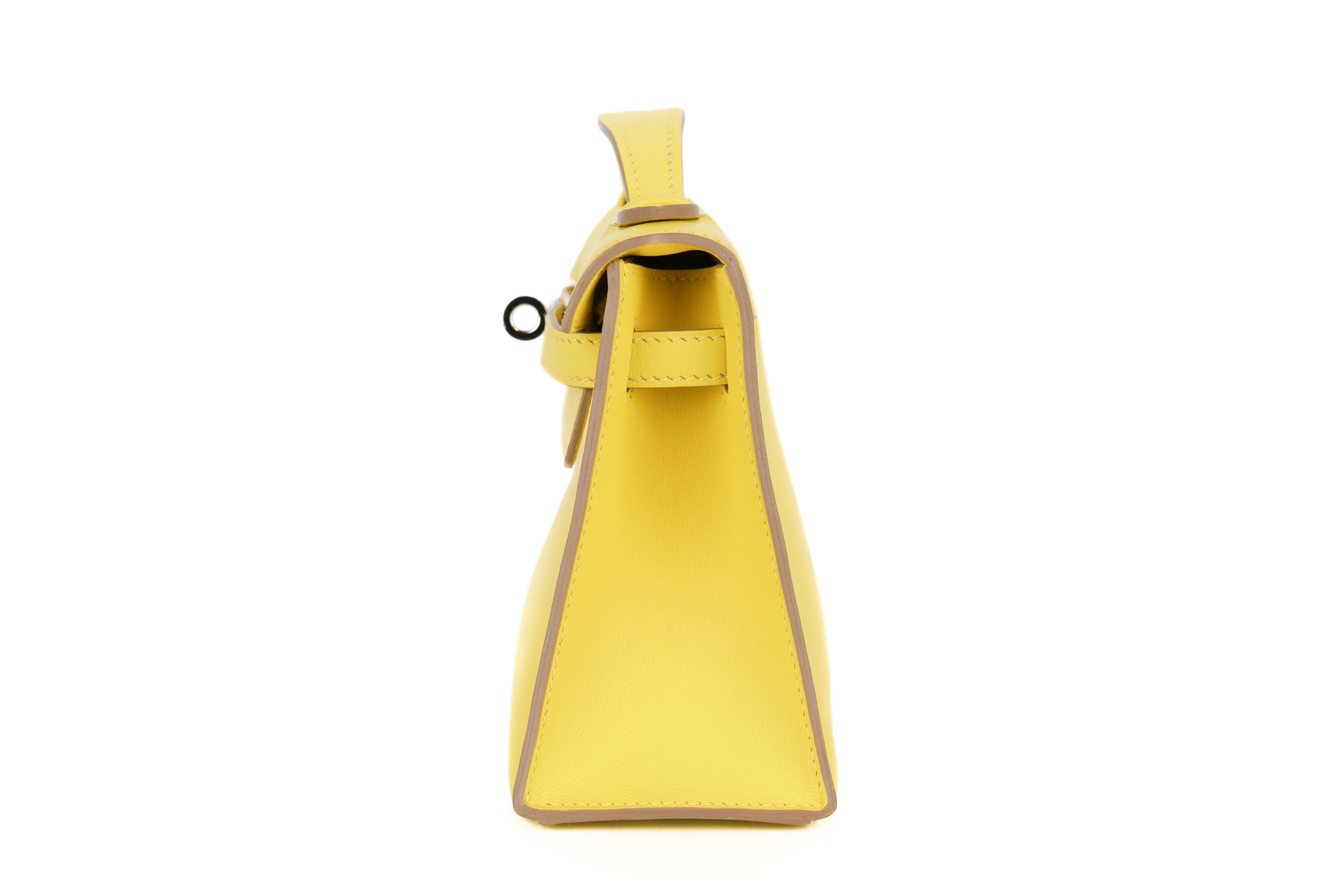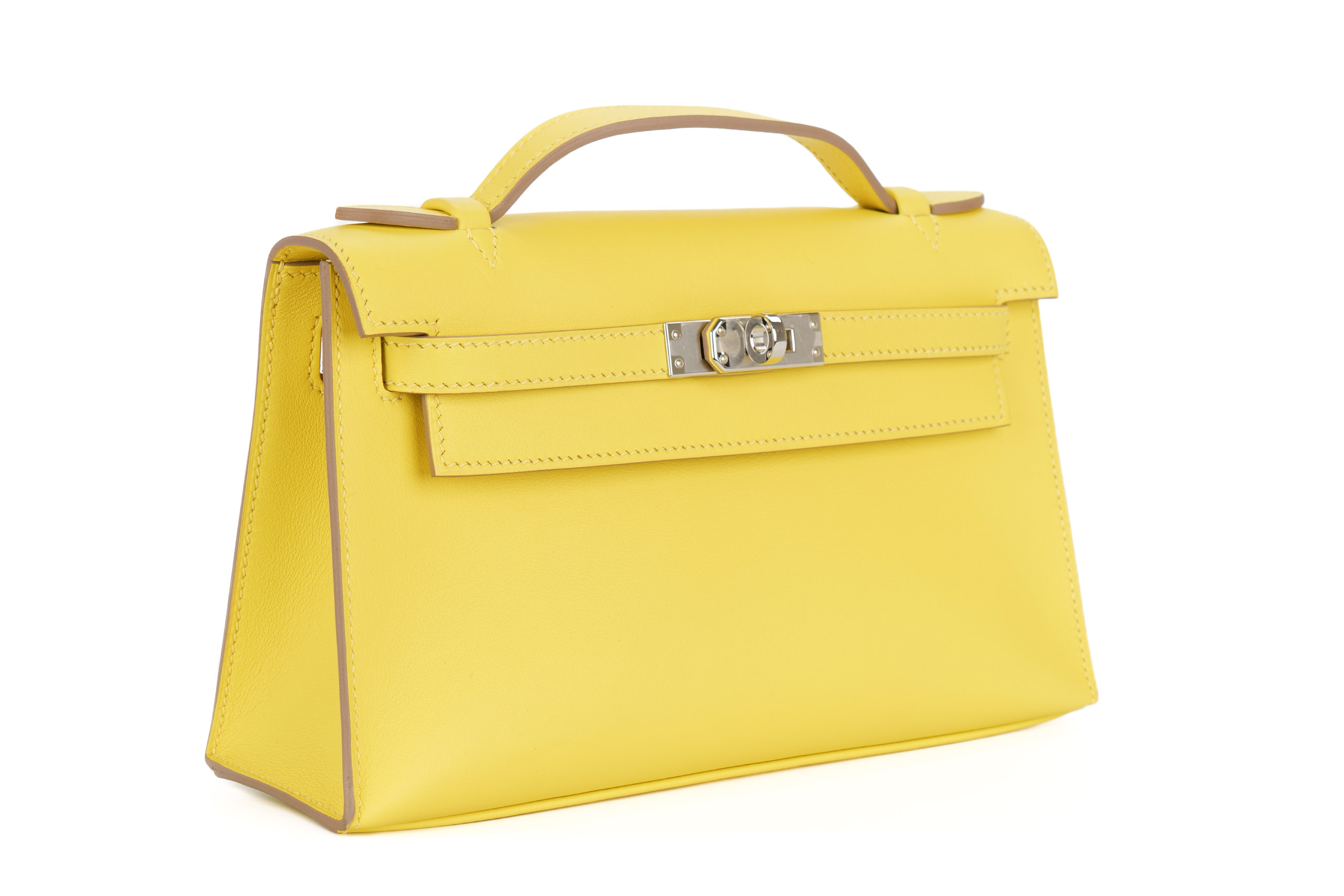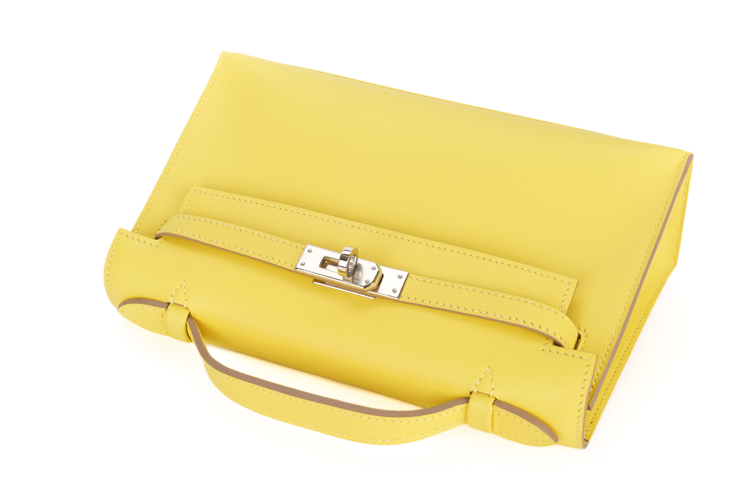 Hermès Kelly Pochette Lime Swift Palladium Hardware / Y Stamp 2020, Brand New