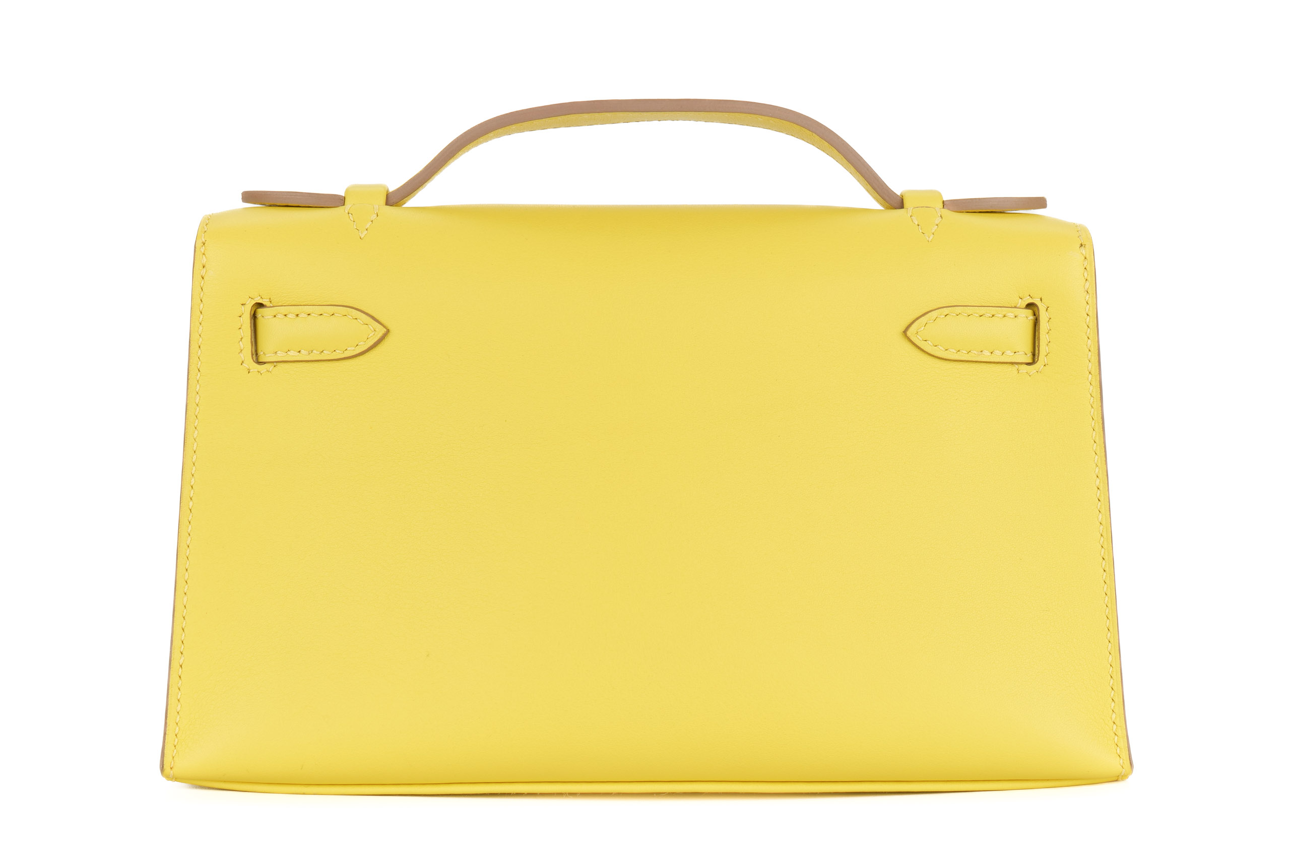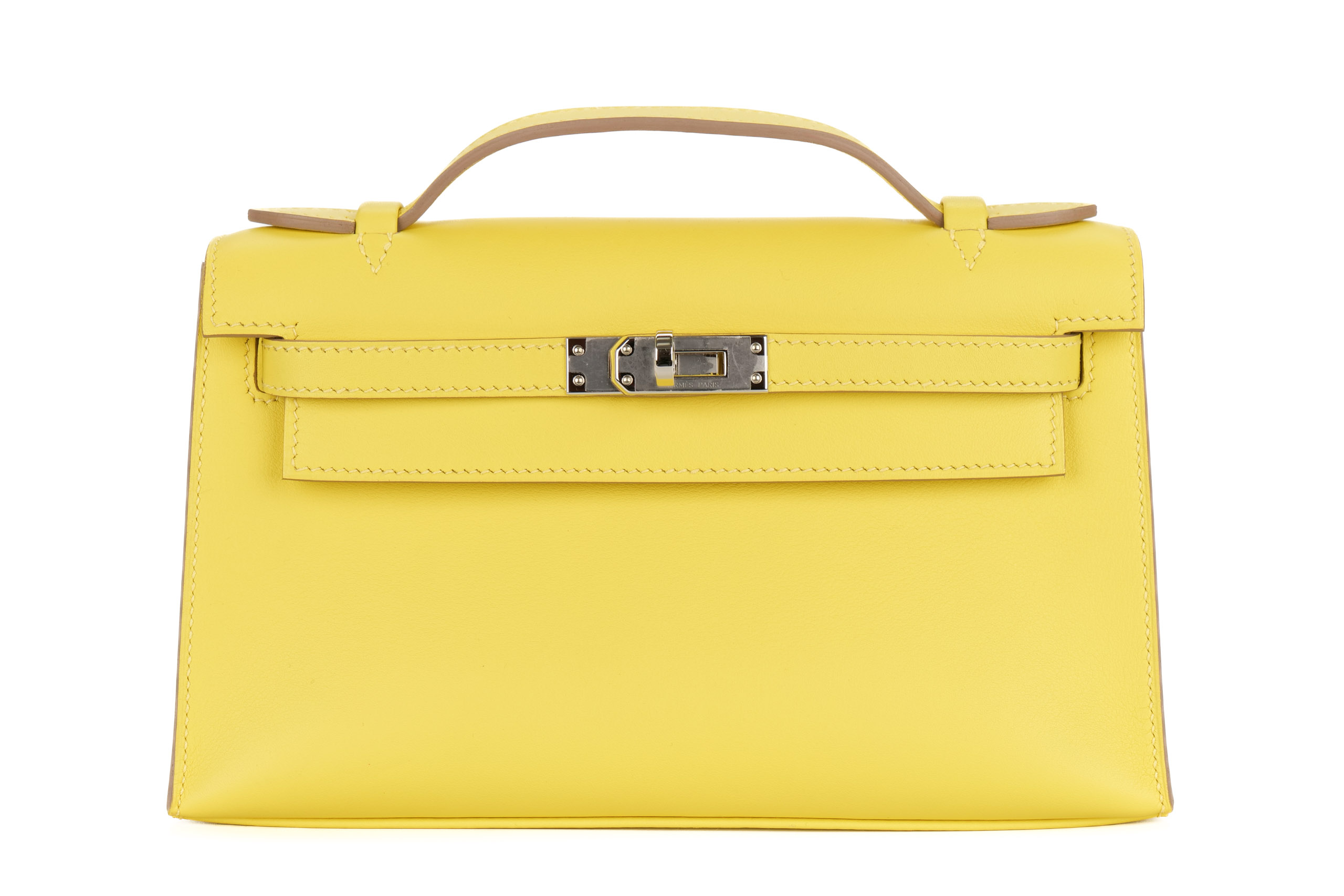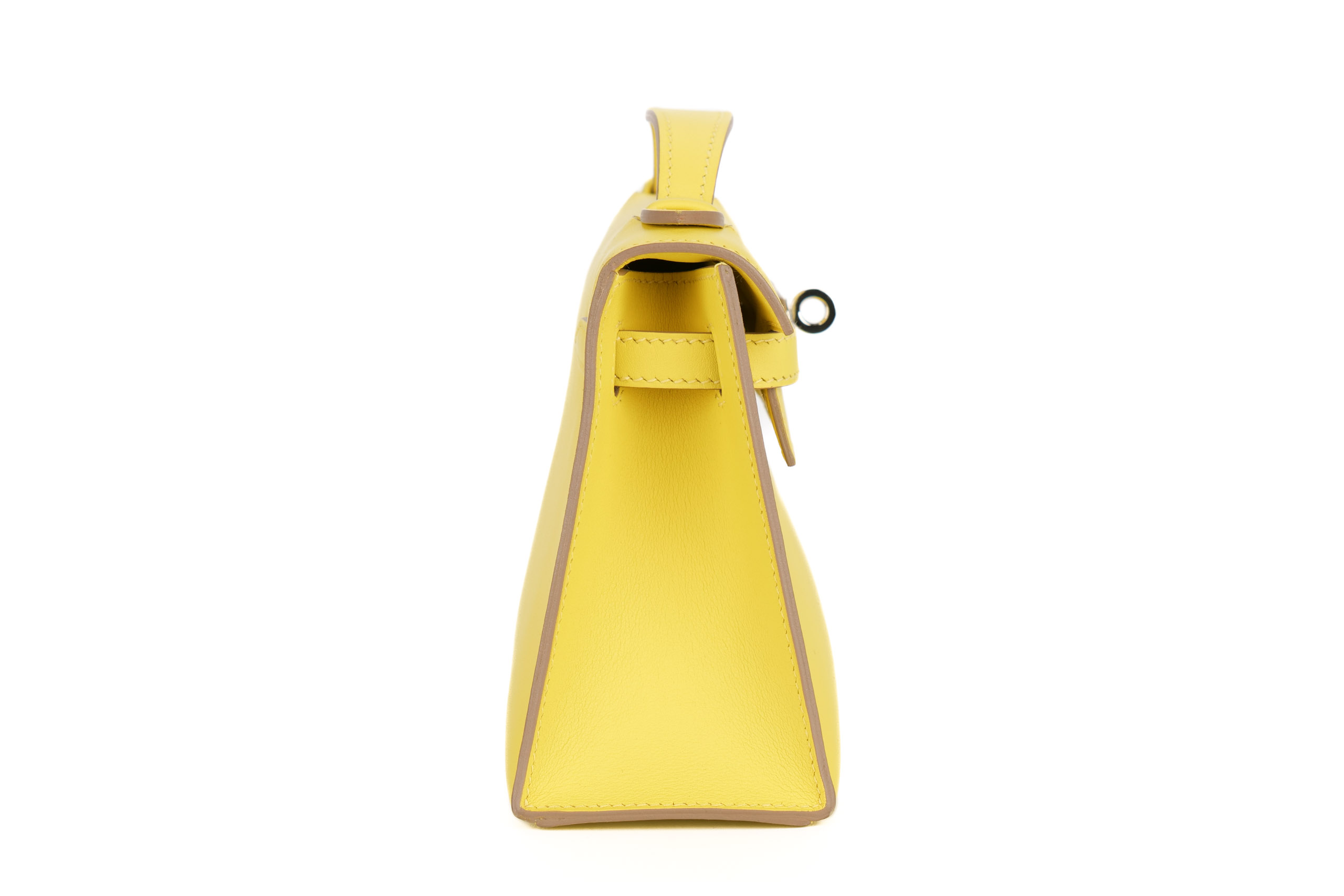 Hermès Kelly Pochette Lime Swift Palladium Hardware / Y Stamp 2020, Brand New