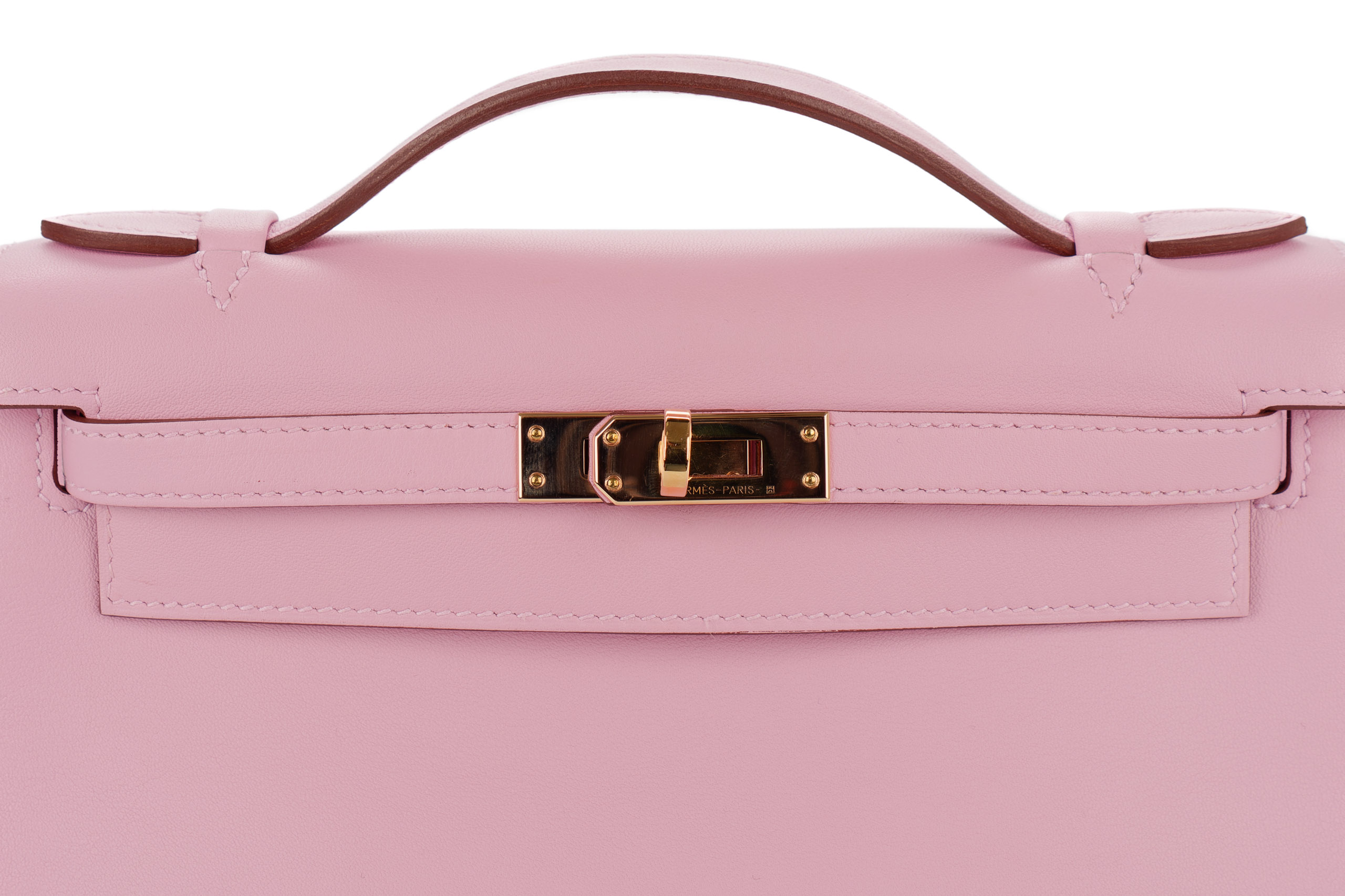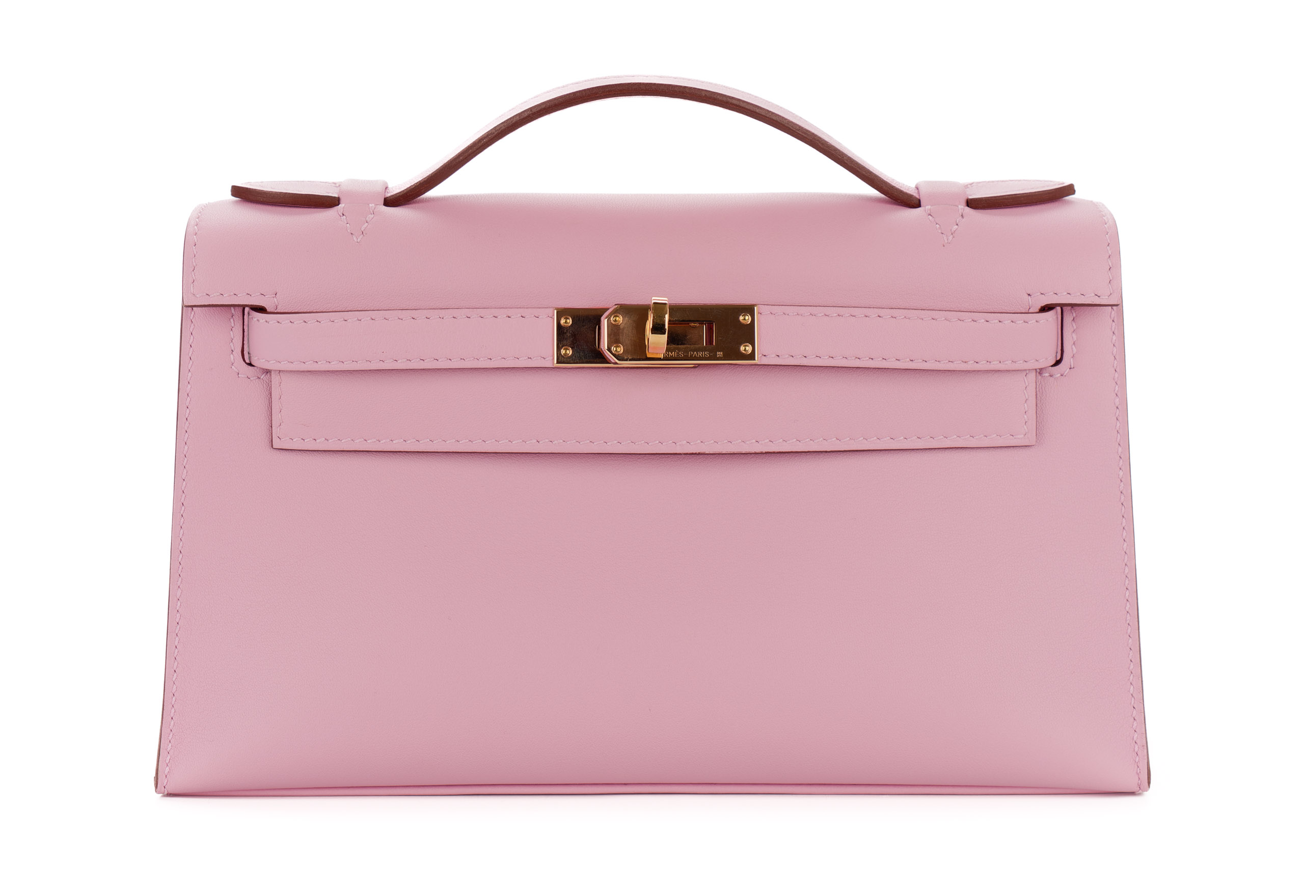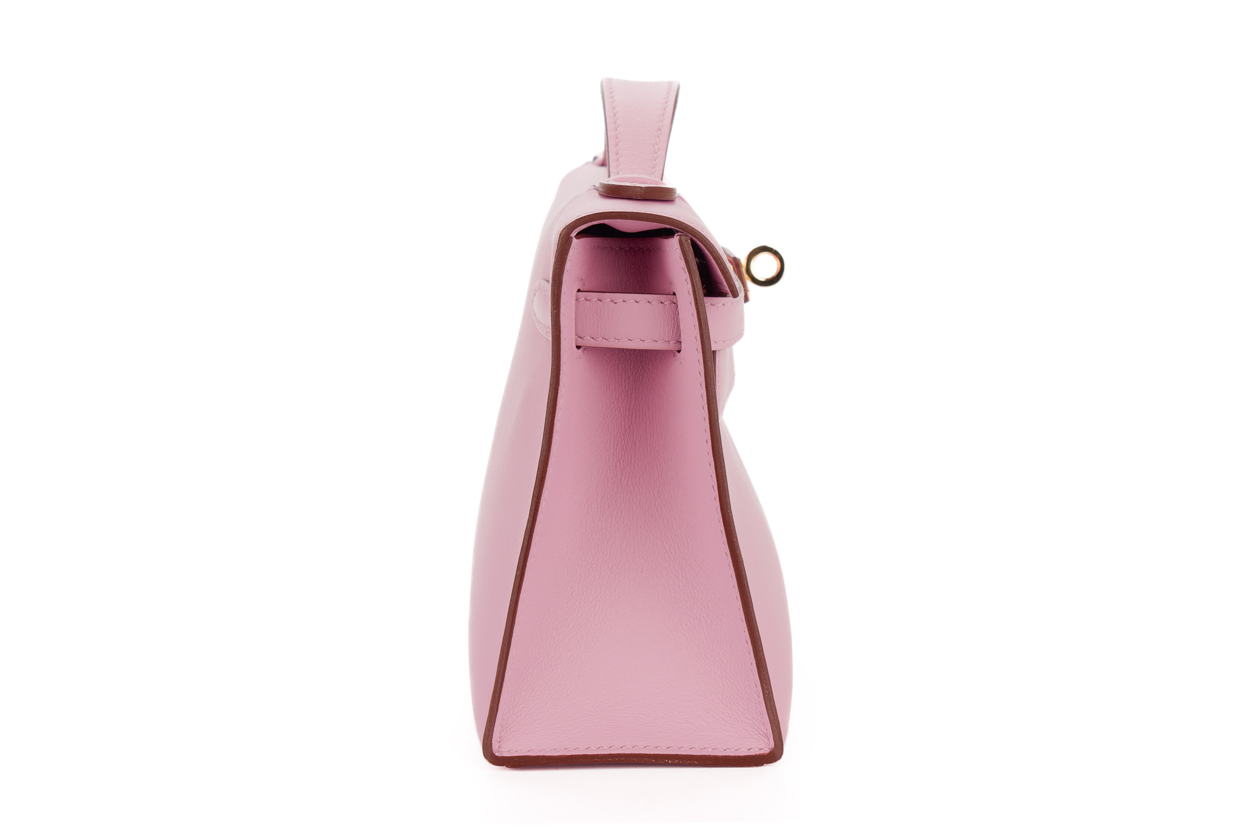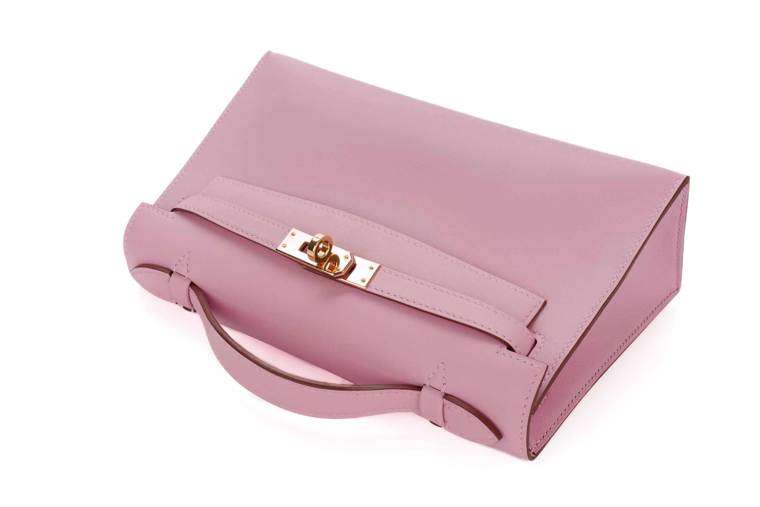 Hermès Kelly Pochette Mauve Sylvestre Swift Rose Gold Hardware / U stamp 2022, Pre-loved