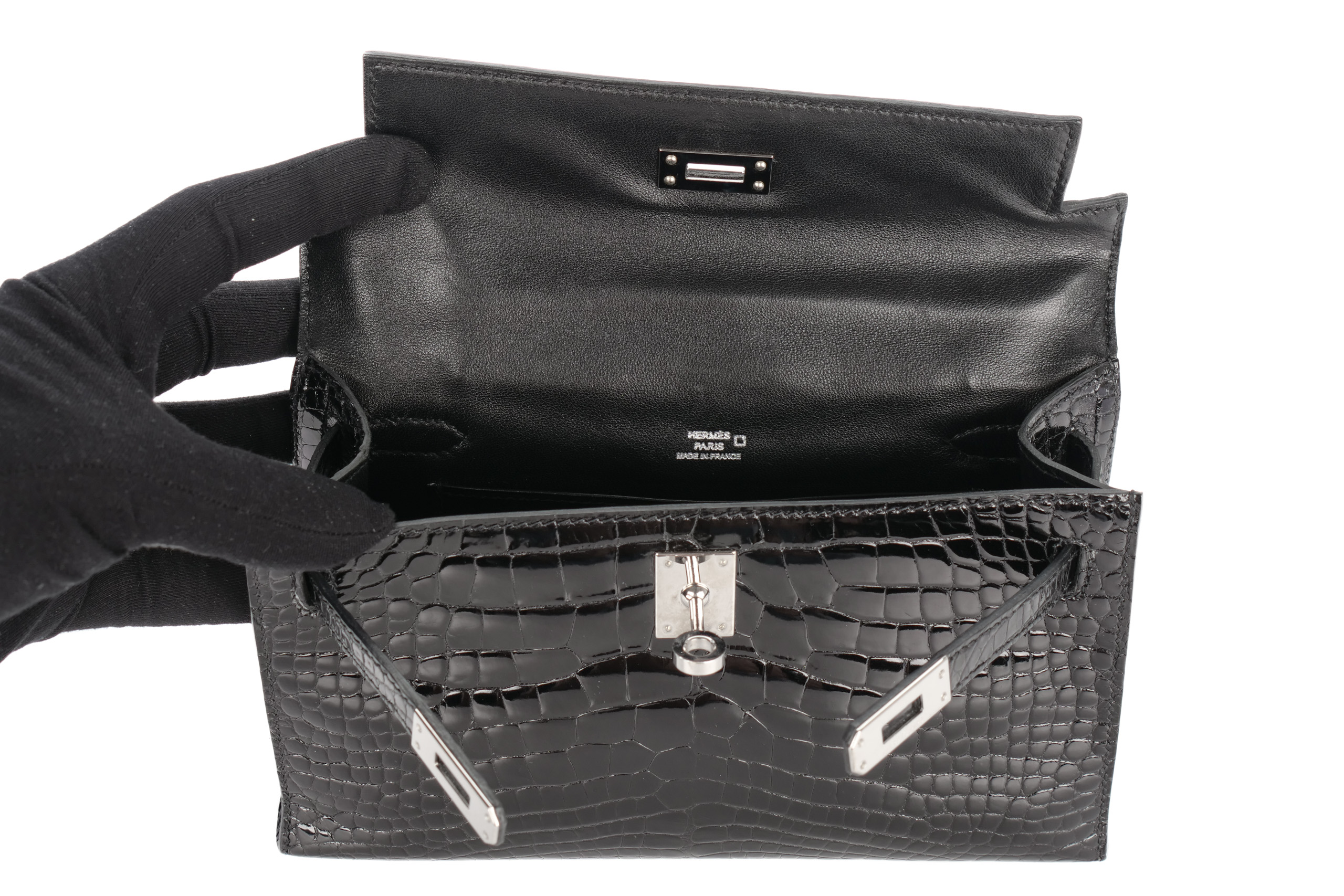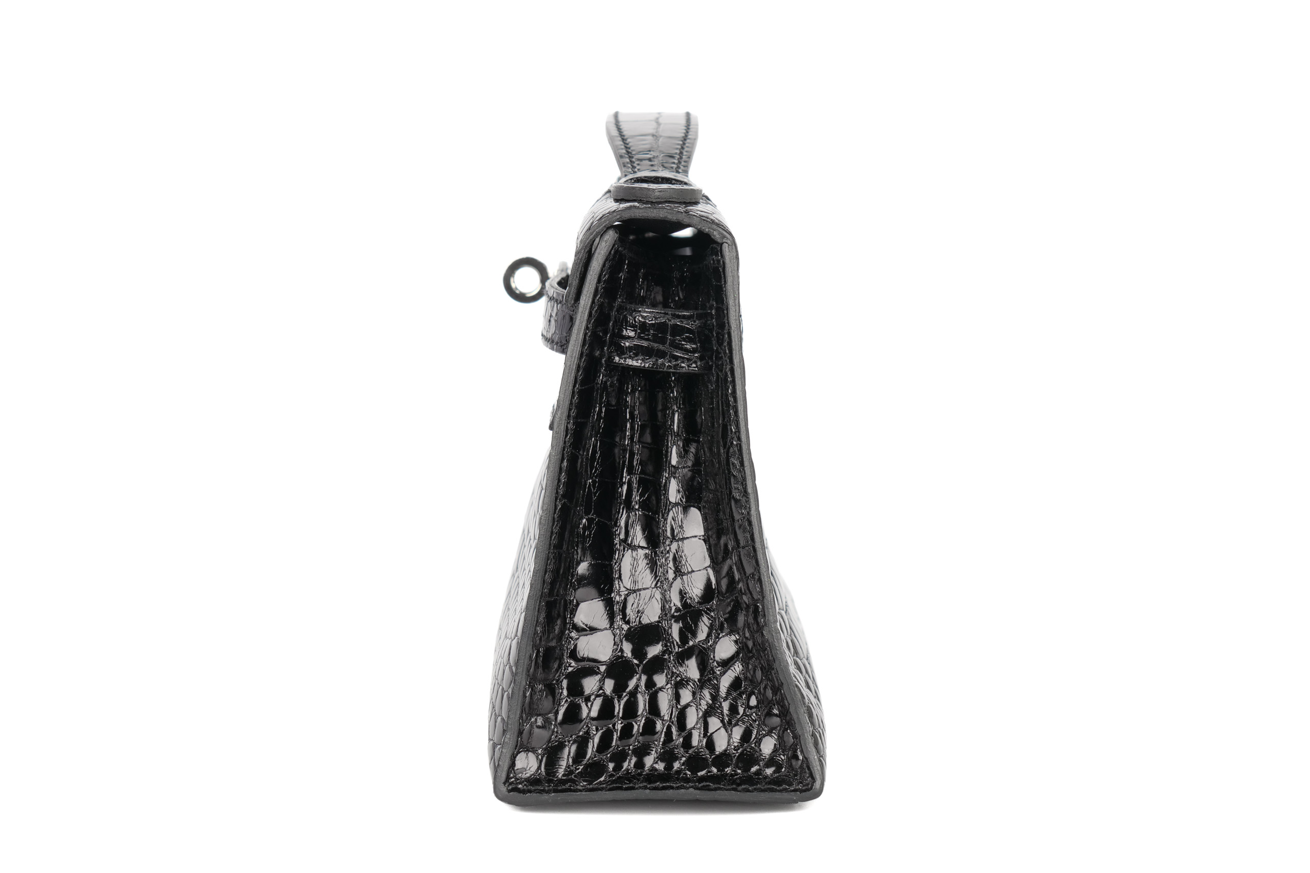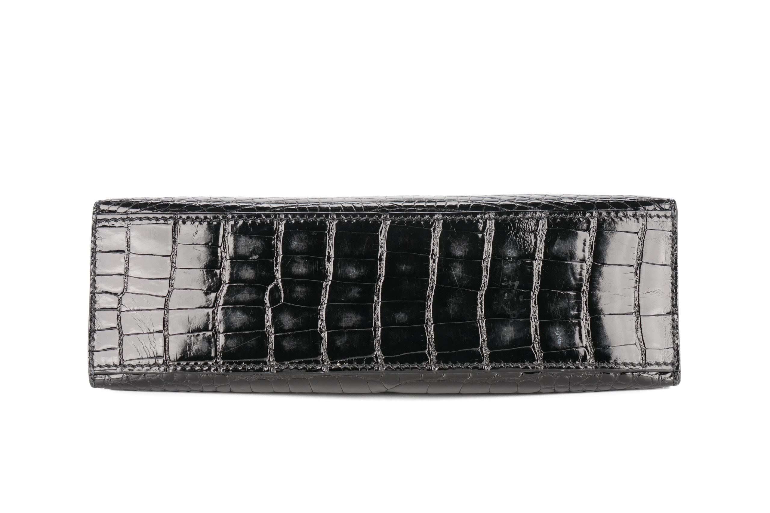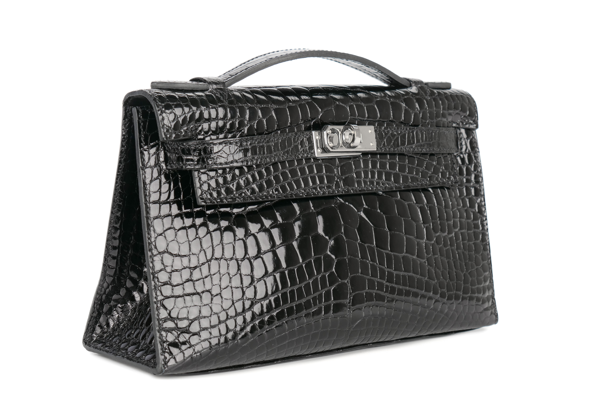 Hermès Kelly Pochette Noir / Black Shiny Aligator Palladium Hardware / M Square Stamp 2009, Excellent Preloved