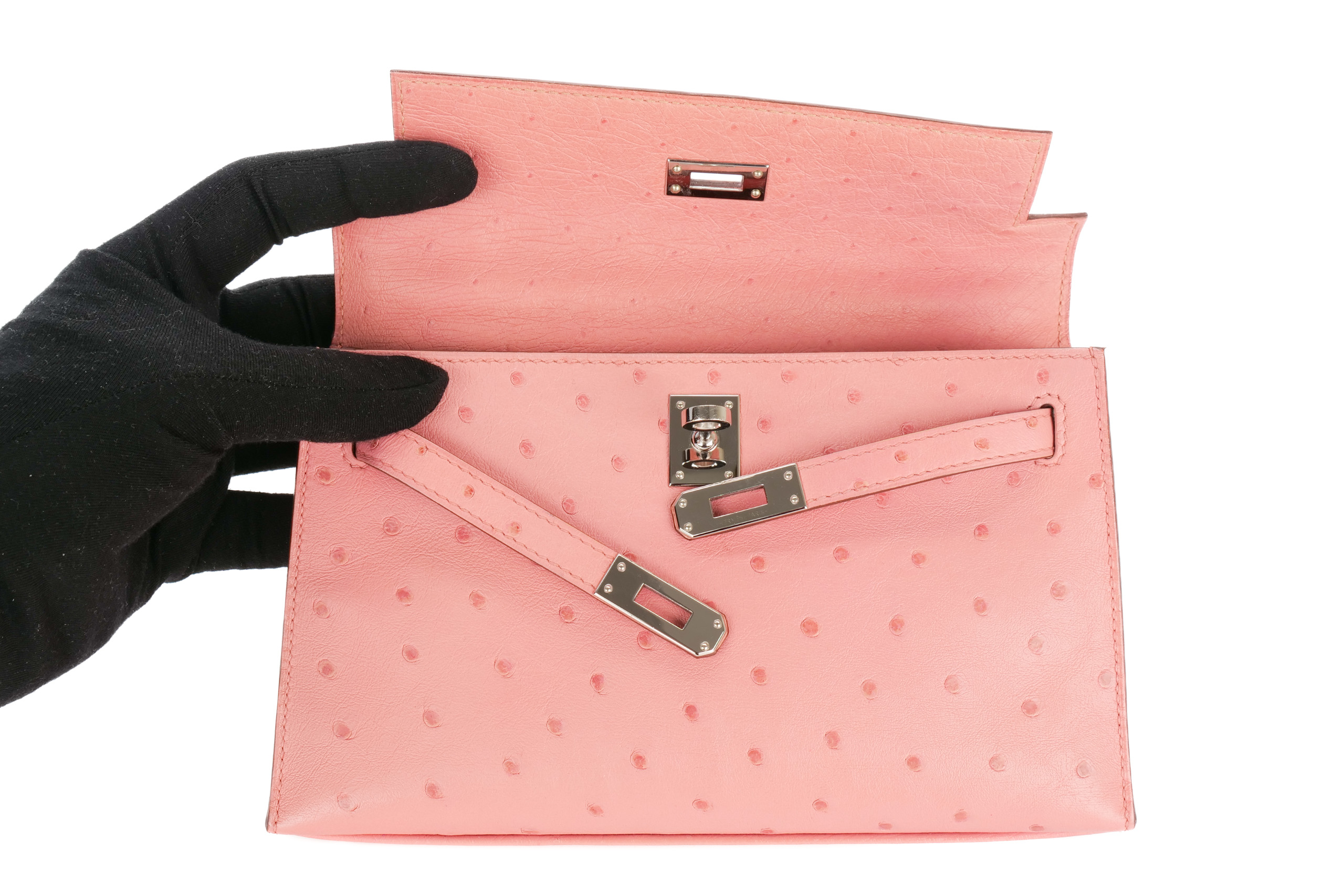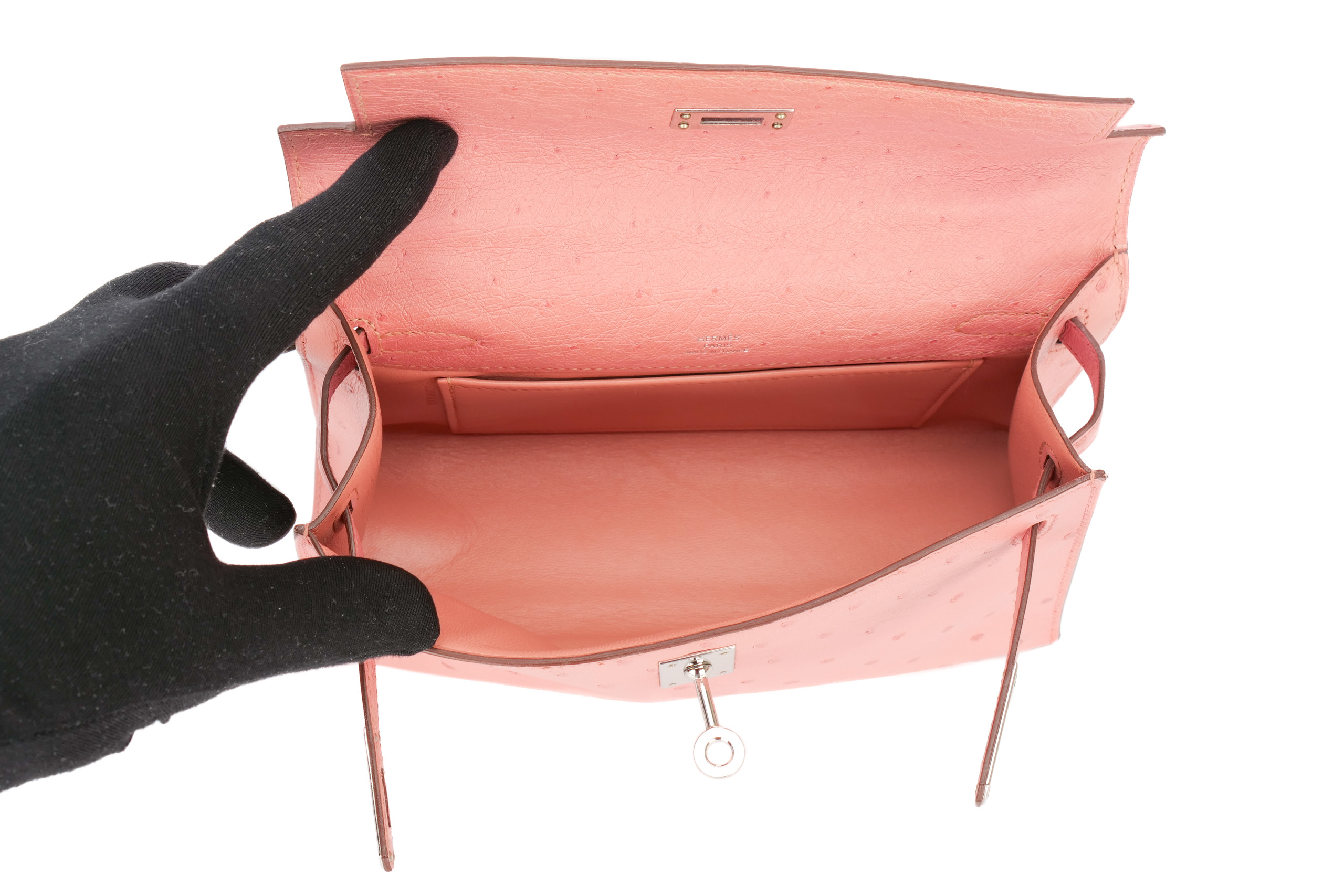 Hermès Kelly Pochette Terre Cuite Ostrich Palladium Hardware / Y Stamp 2020, Preloved
