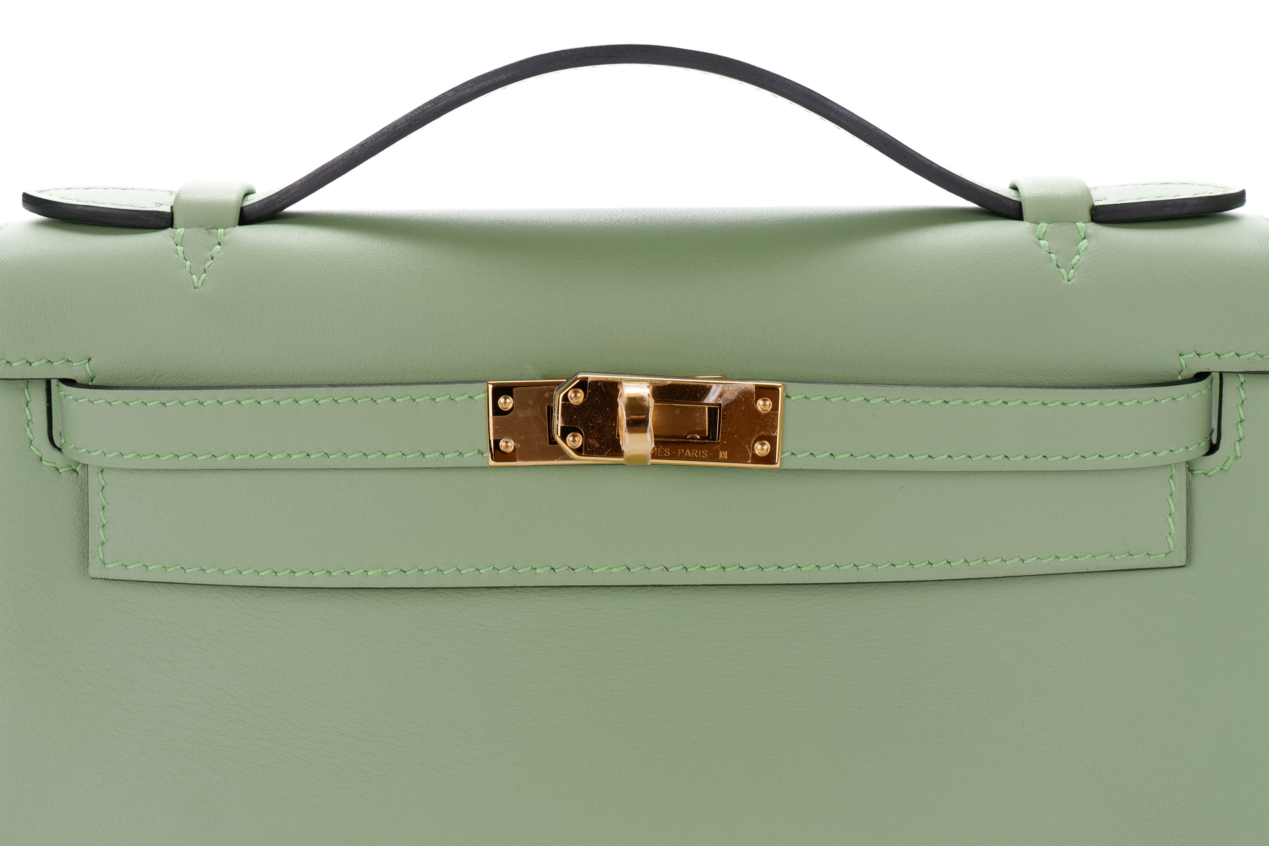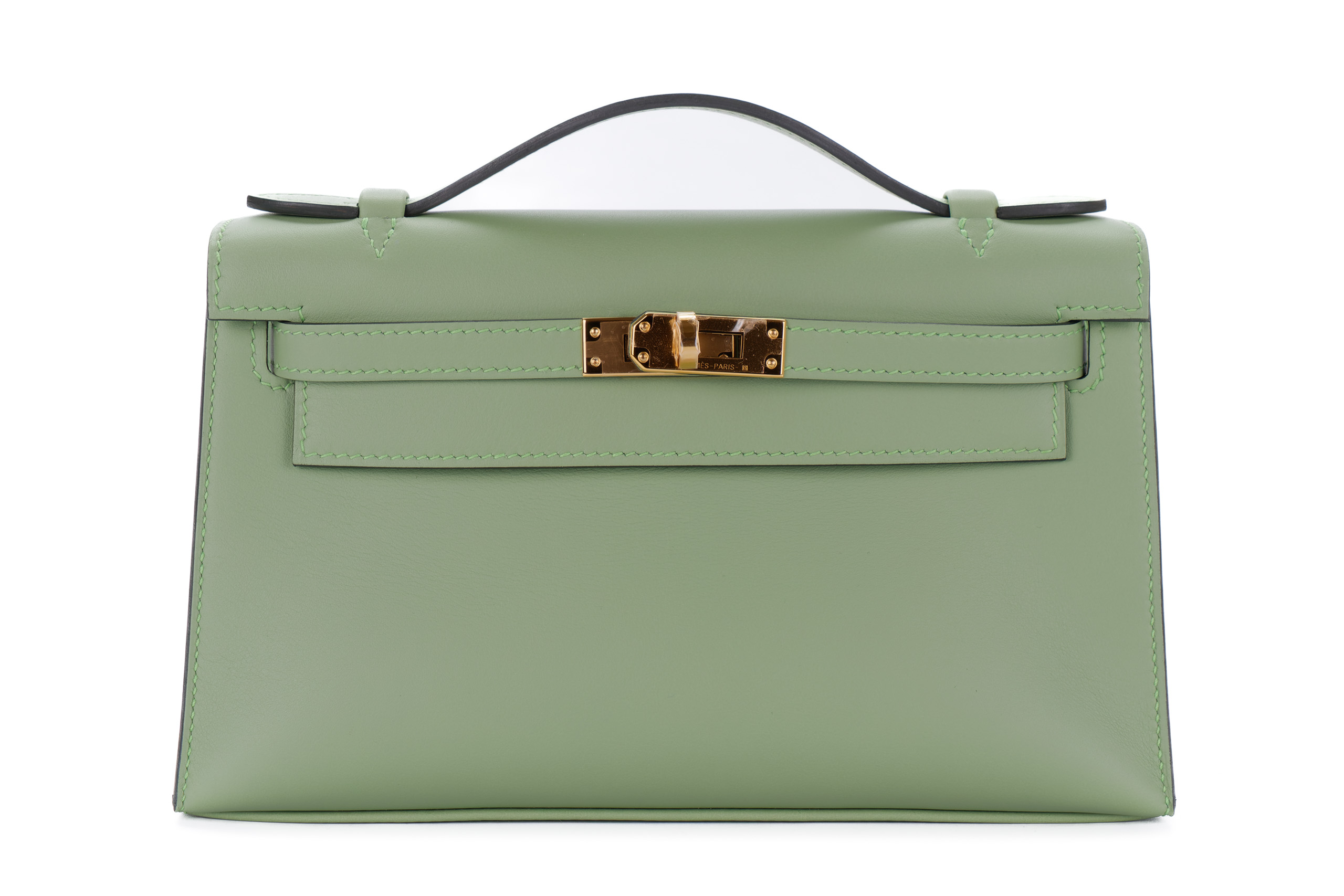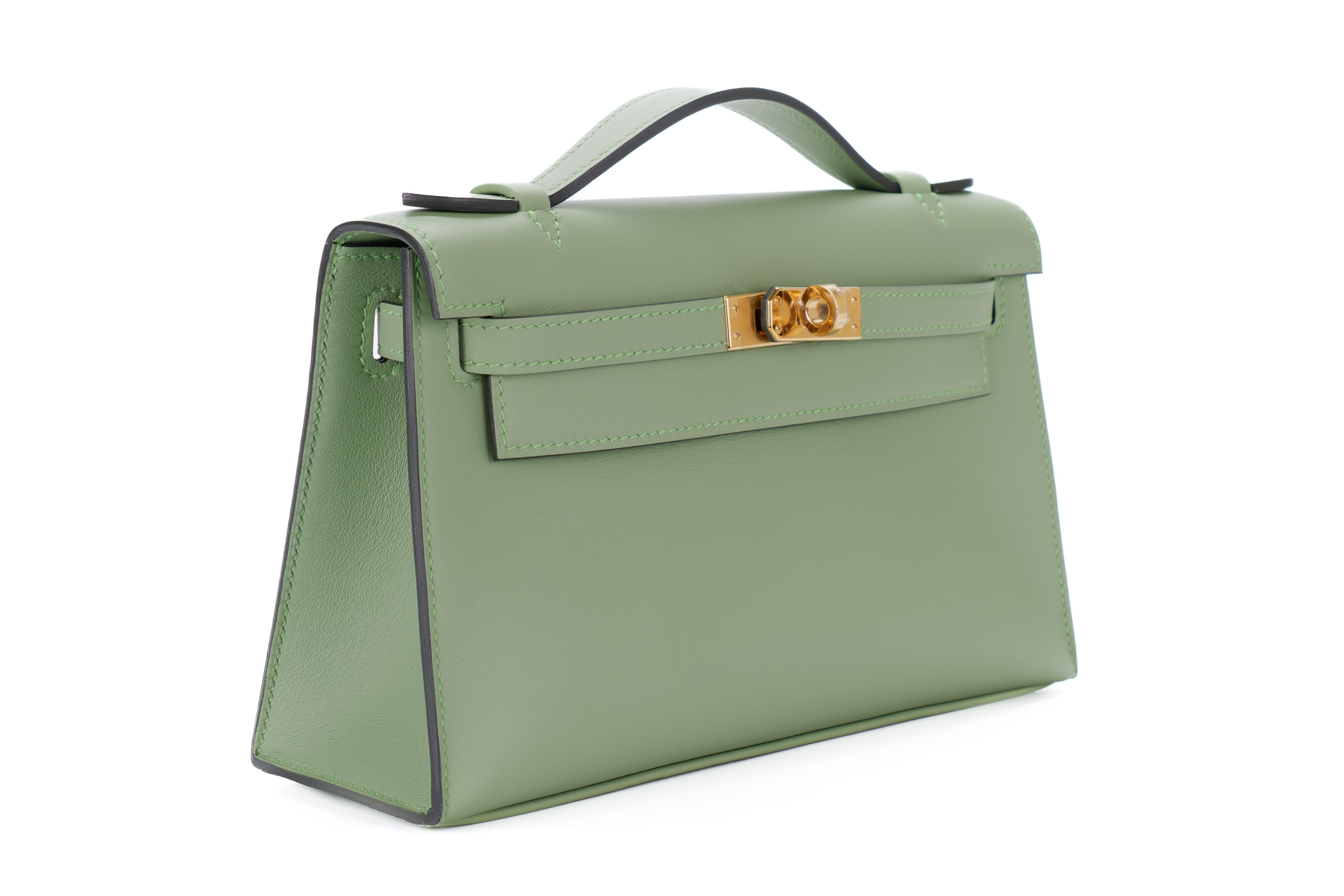 Hermès Kelly Pochette Vert Criquet Swift Gold Hardware / B Stamp 2024 Box Fresh