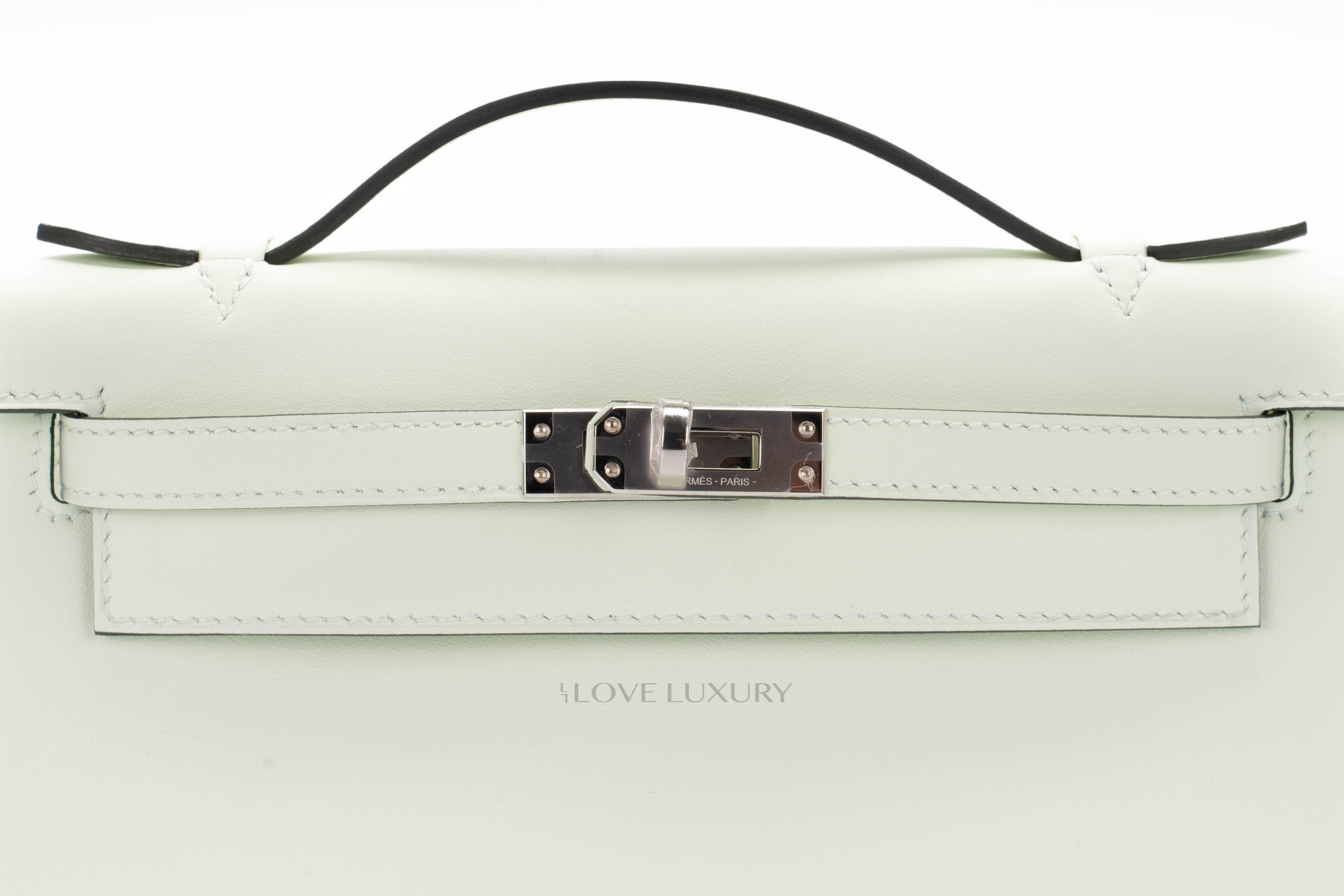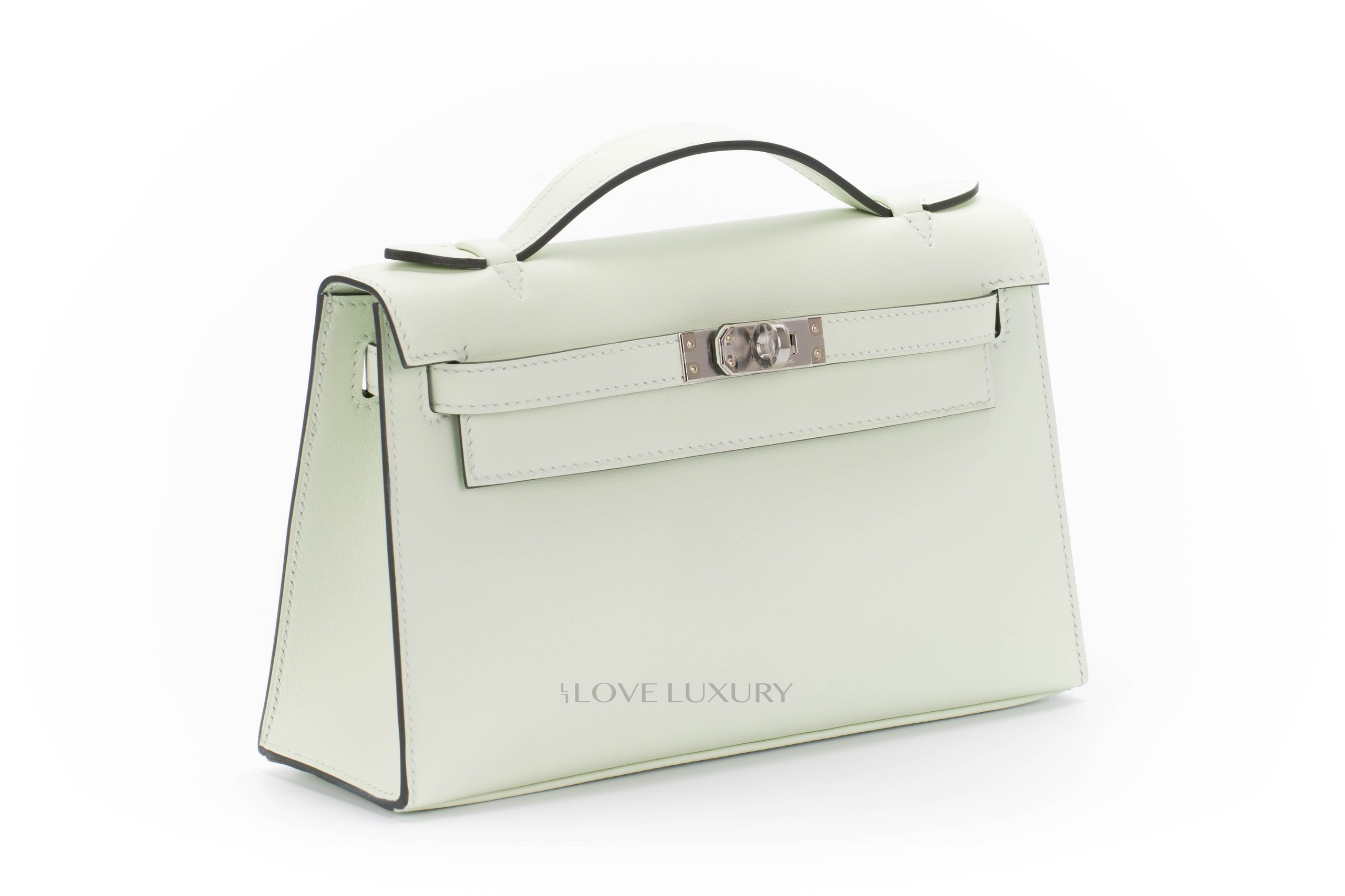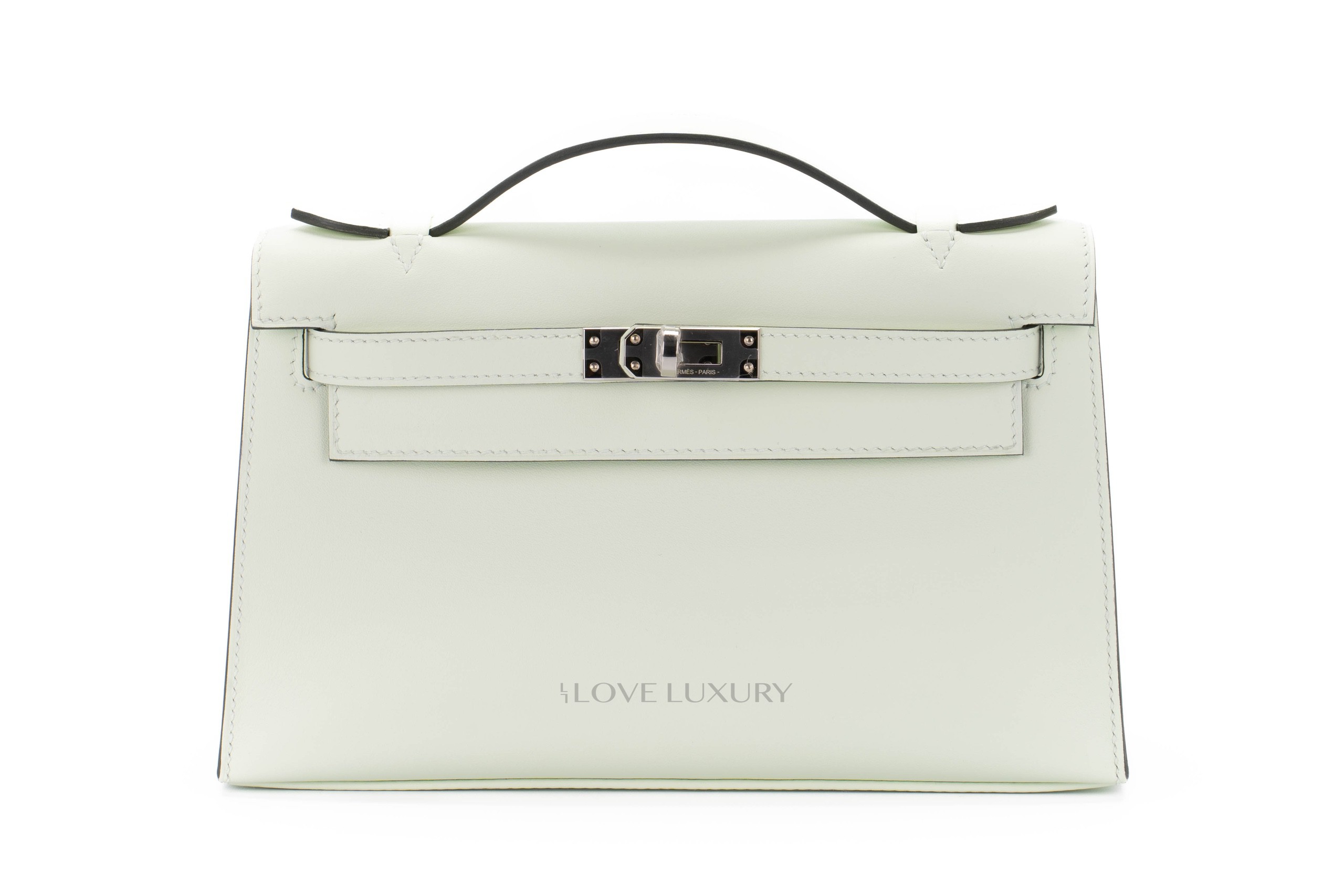 The Kelly pochette is probably the rarest Hermès bag we have come in here at Love Luxury. It is easy to understand ehy this bag is so popular, not only is it a practical bag that carries all of your daily essentials but it is also highly classy and elegant. The Pochette comes in many leathers however the most common we see here is swift. This particular Kelly Pochette is in a new colour for late 2022 named Vert Fizz, a light powdery green which in this instance is complimented by Palladium harware. This bag is box fresh and comes as a full set.