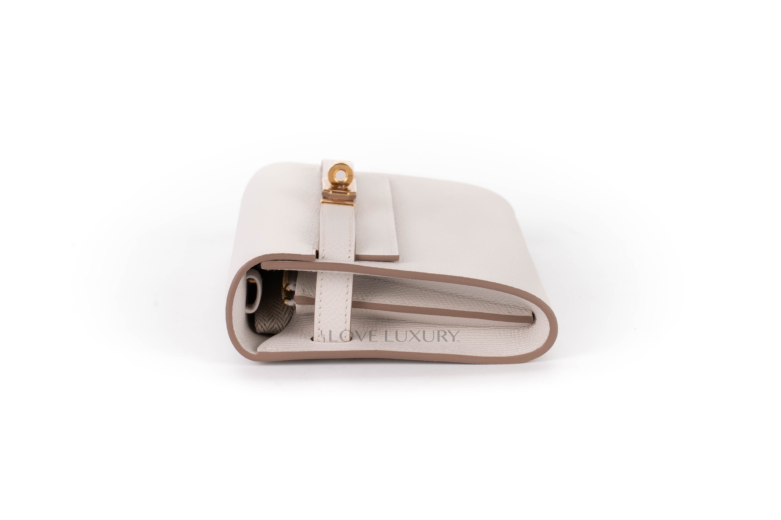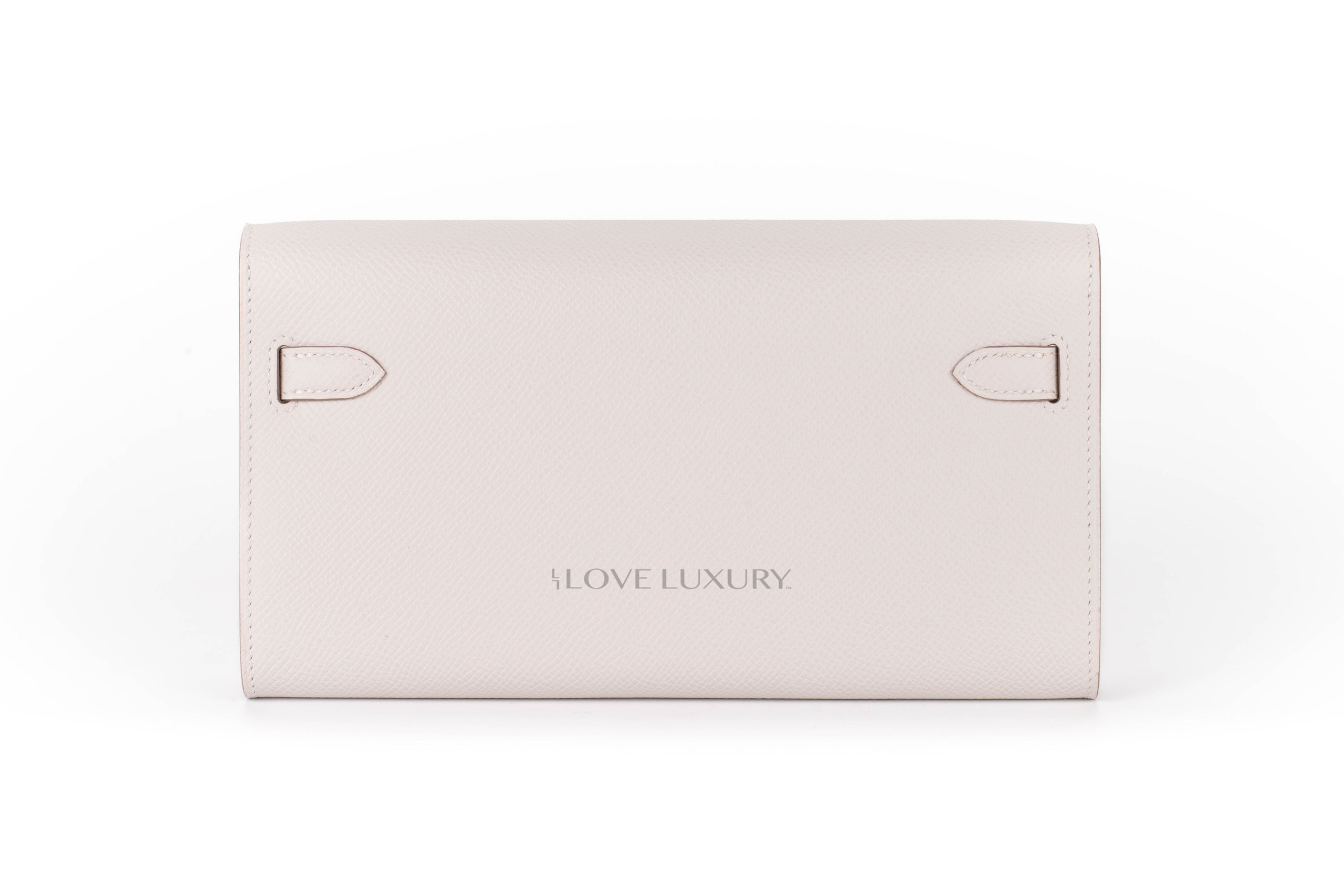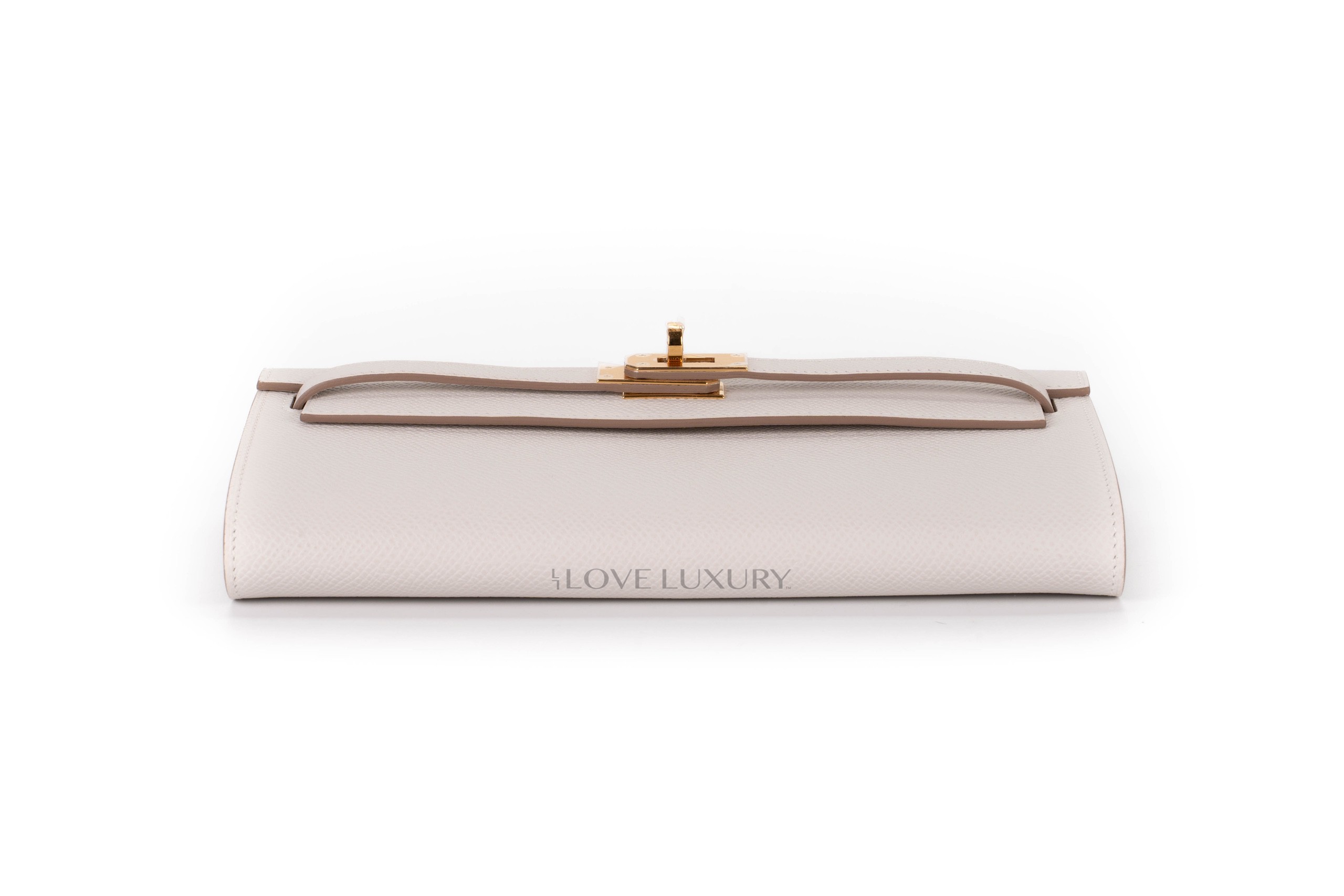 Hermès Kelly To Go is the perfect on the go bag. This is a versatile model that can be dressed down with jeans and T-Shirt and worn cross body. Alternatively it can be worn dressed up as a clutch with the strap removed for a dinner date or a night out. This particular colour is a gorgeous pale grey in the official colour called Gris Pale with gold hardware which is a perfect combination against the coolness of the leather colour. This bag is box fresh and comes as a full set.