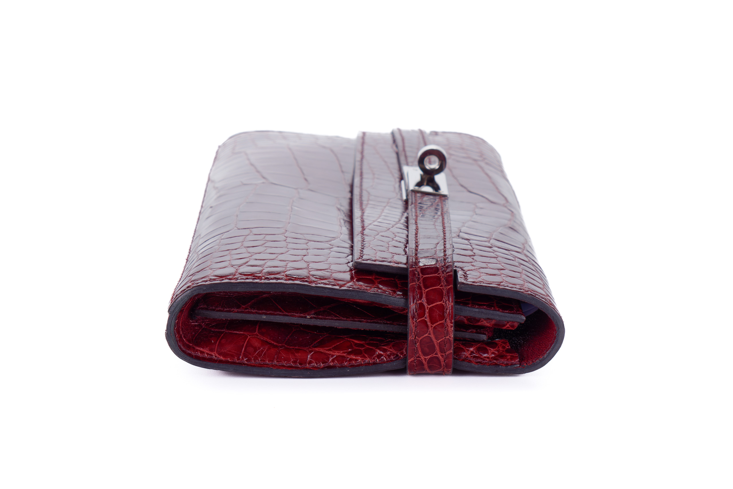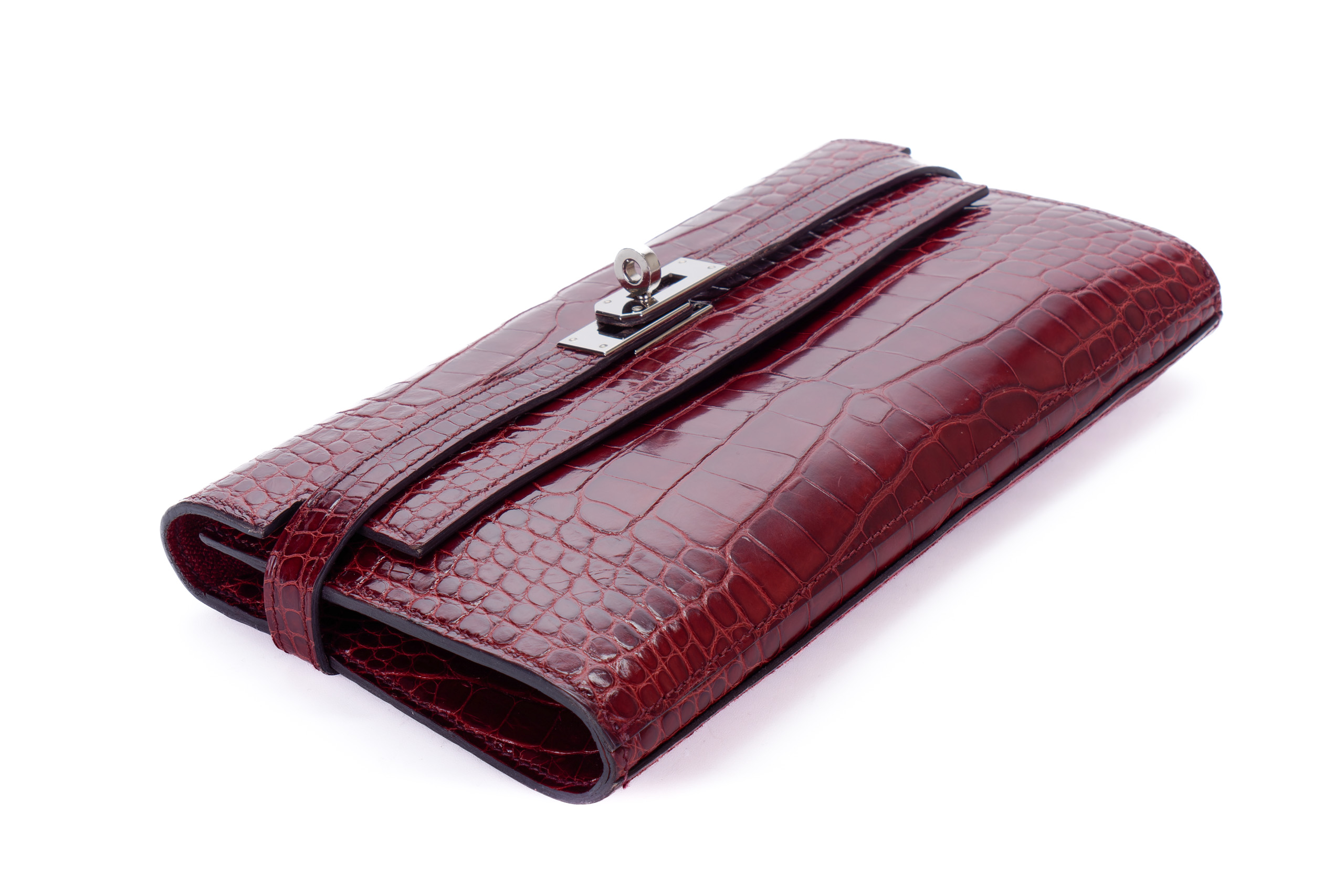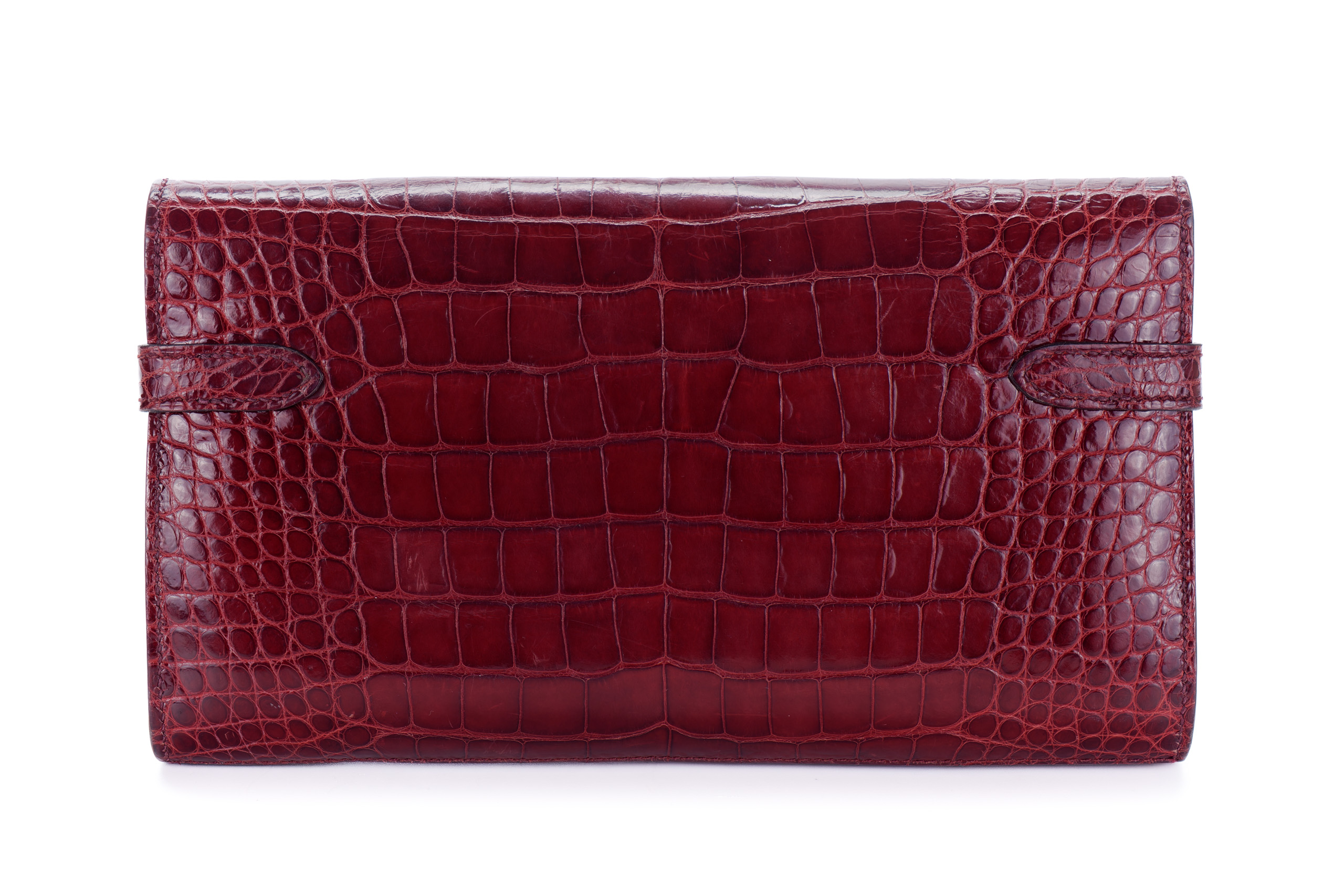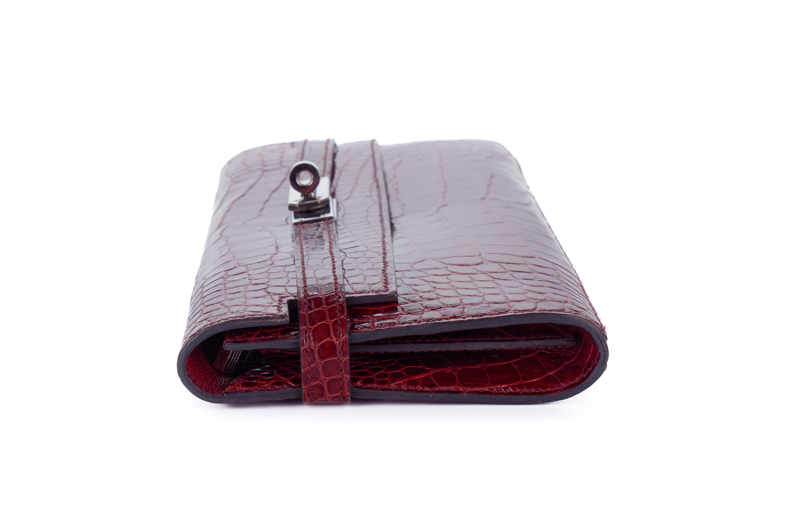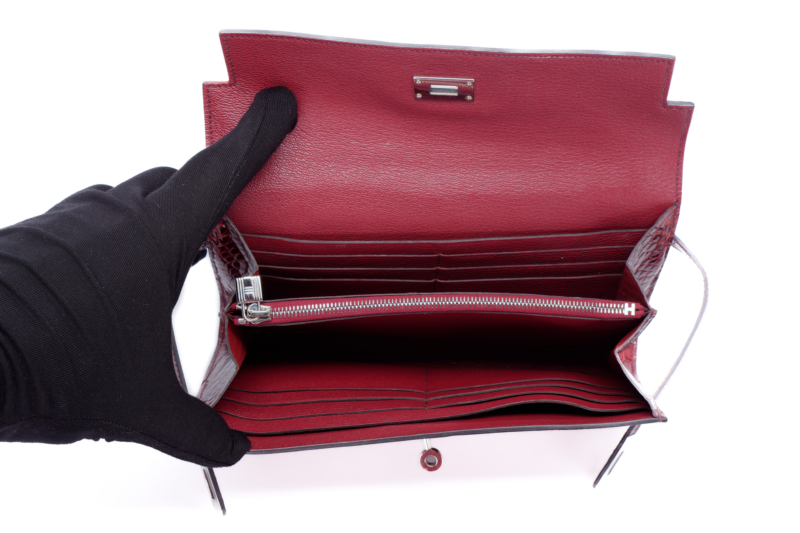Hermès Kelly Wallet Burgundy Crocodile leather Palladium Hardware Palladium Hardware