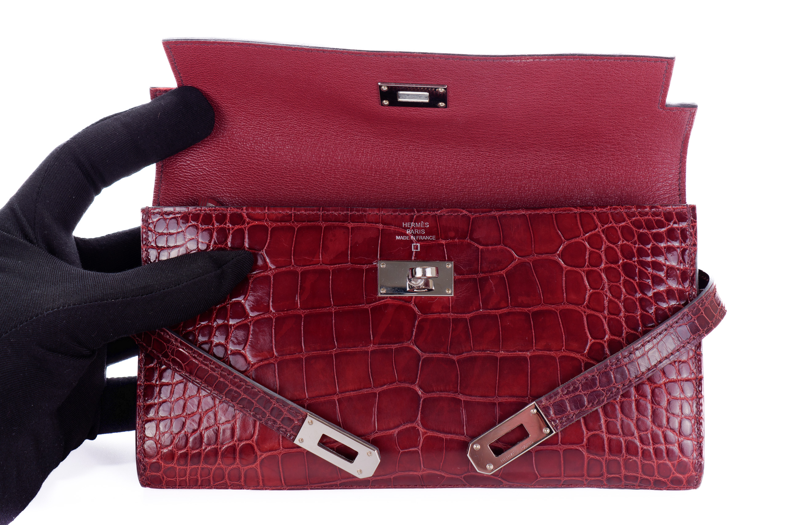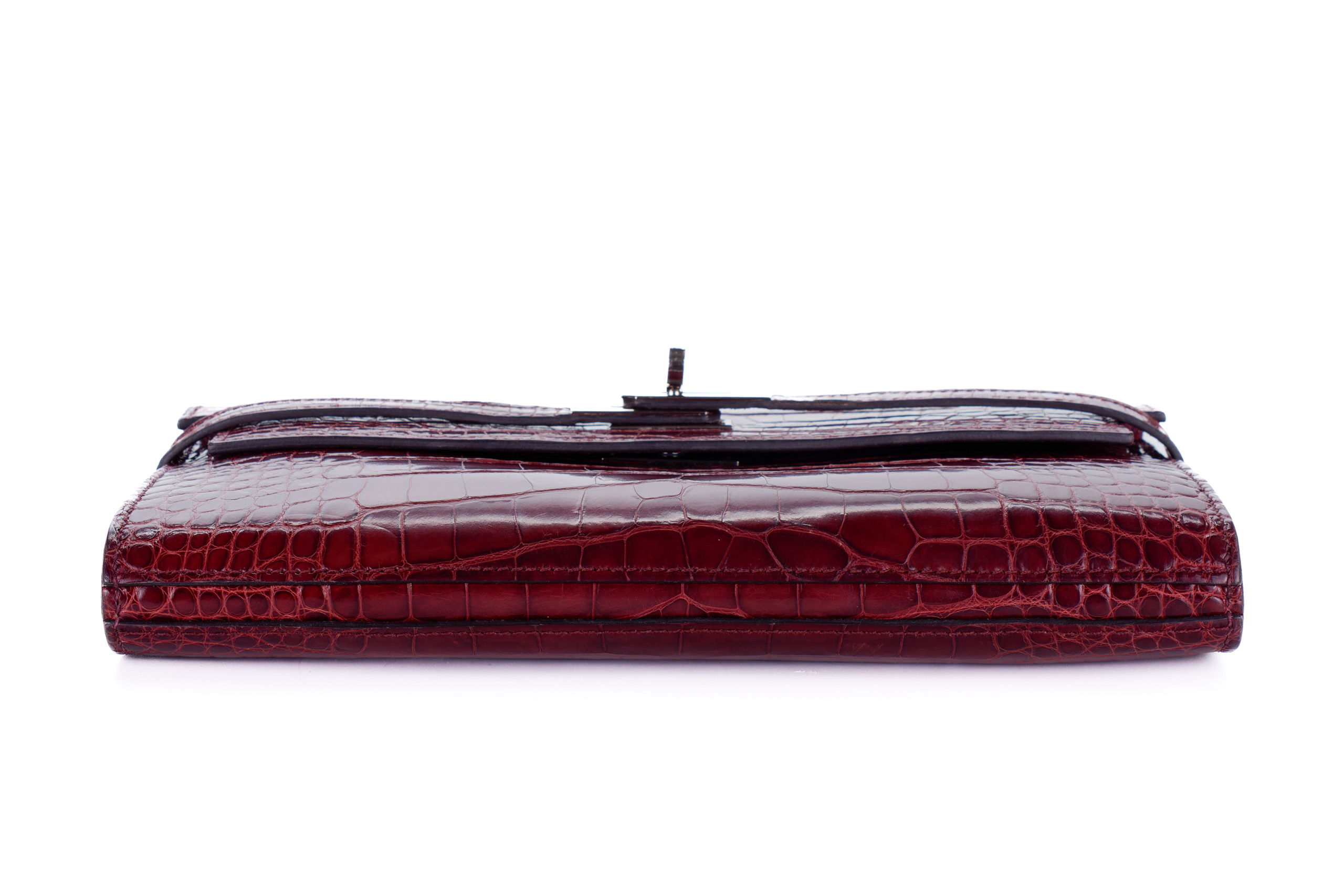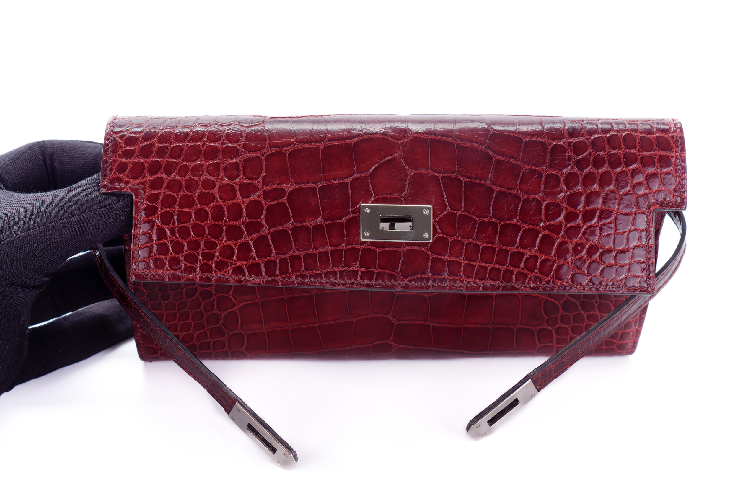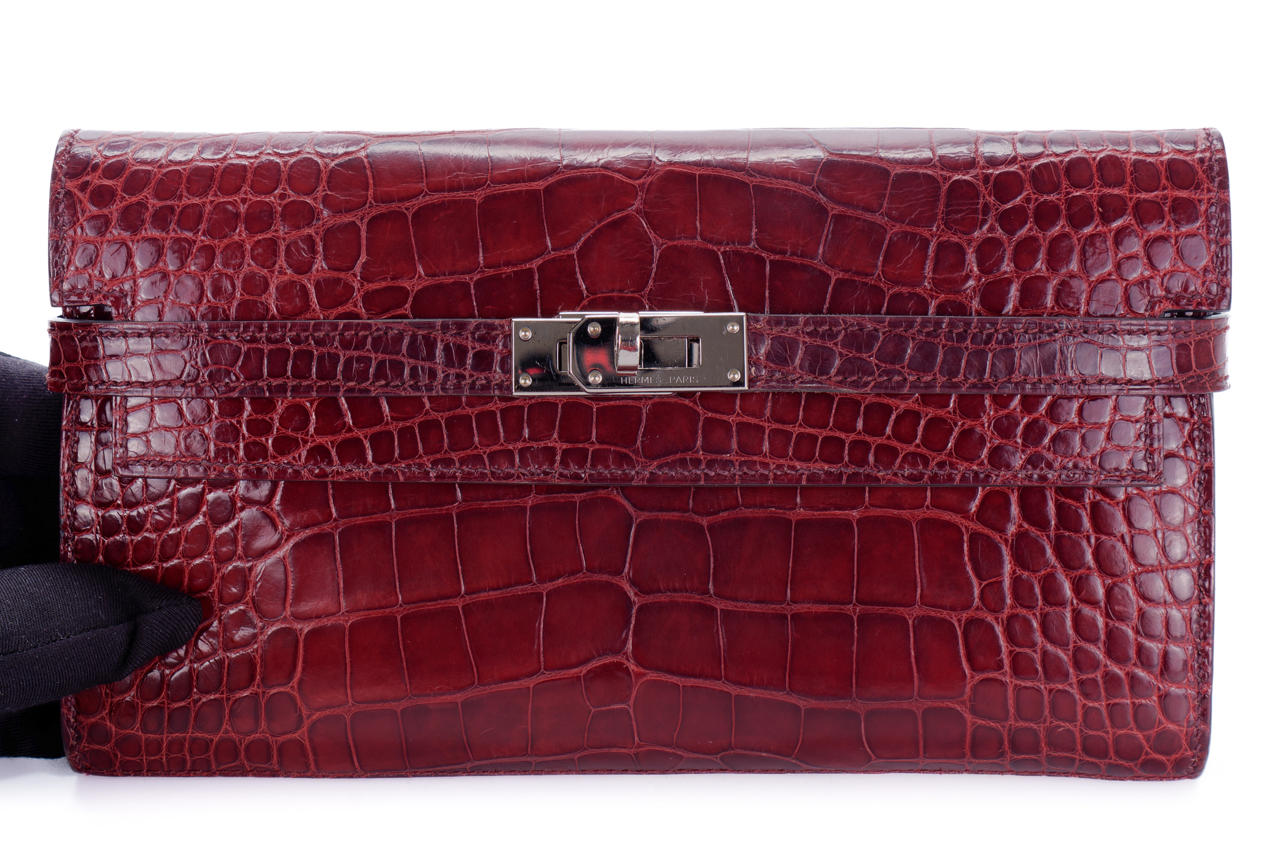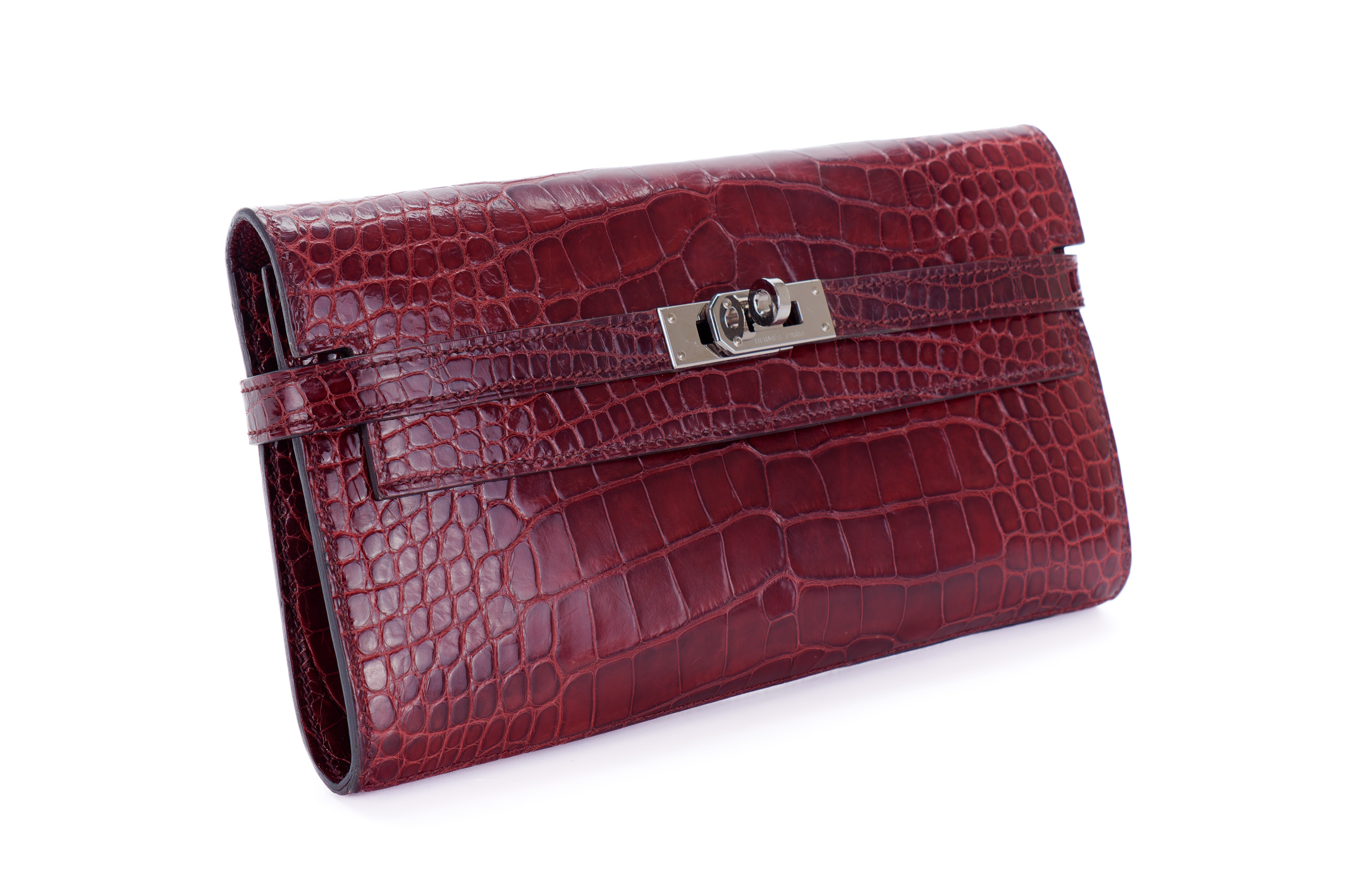 Hermès Kelly Wallet Burgundy Crocodile leather Palladium Hardware Palladium Hardware