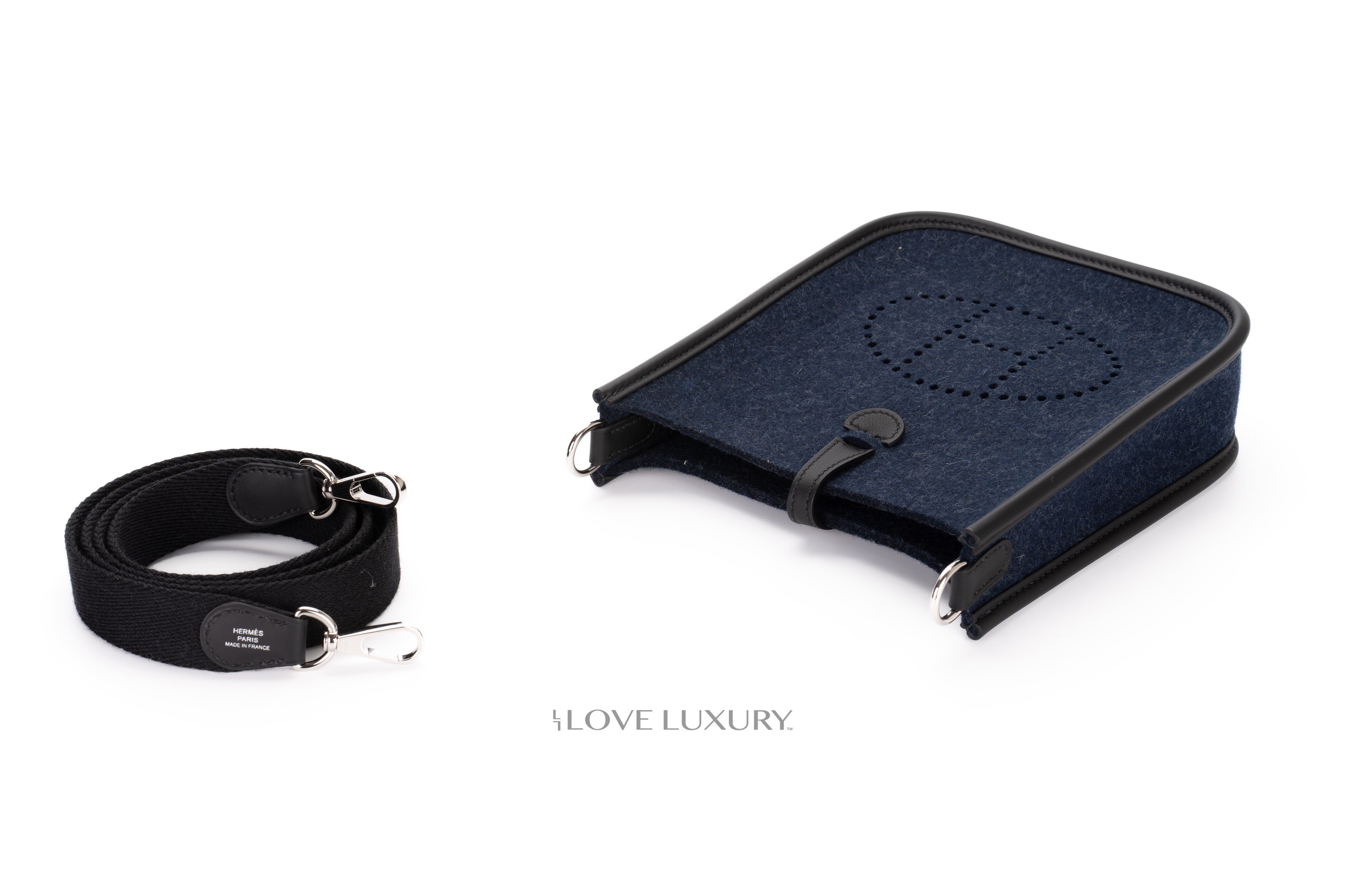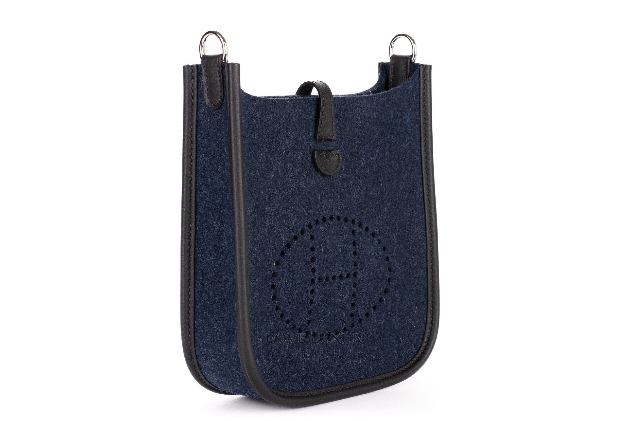 Hermès Mini Evelyne Bleu Nuit / Black Felt & Swift Phw / U stamp 2023 Box Fresh