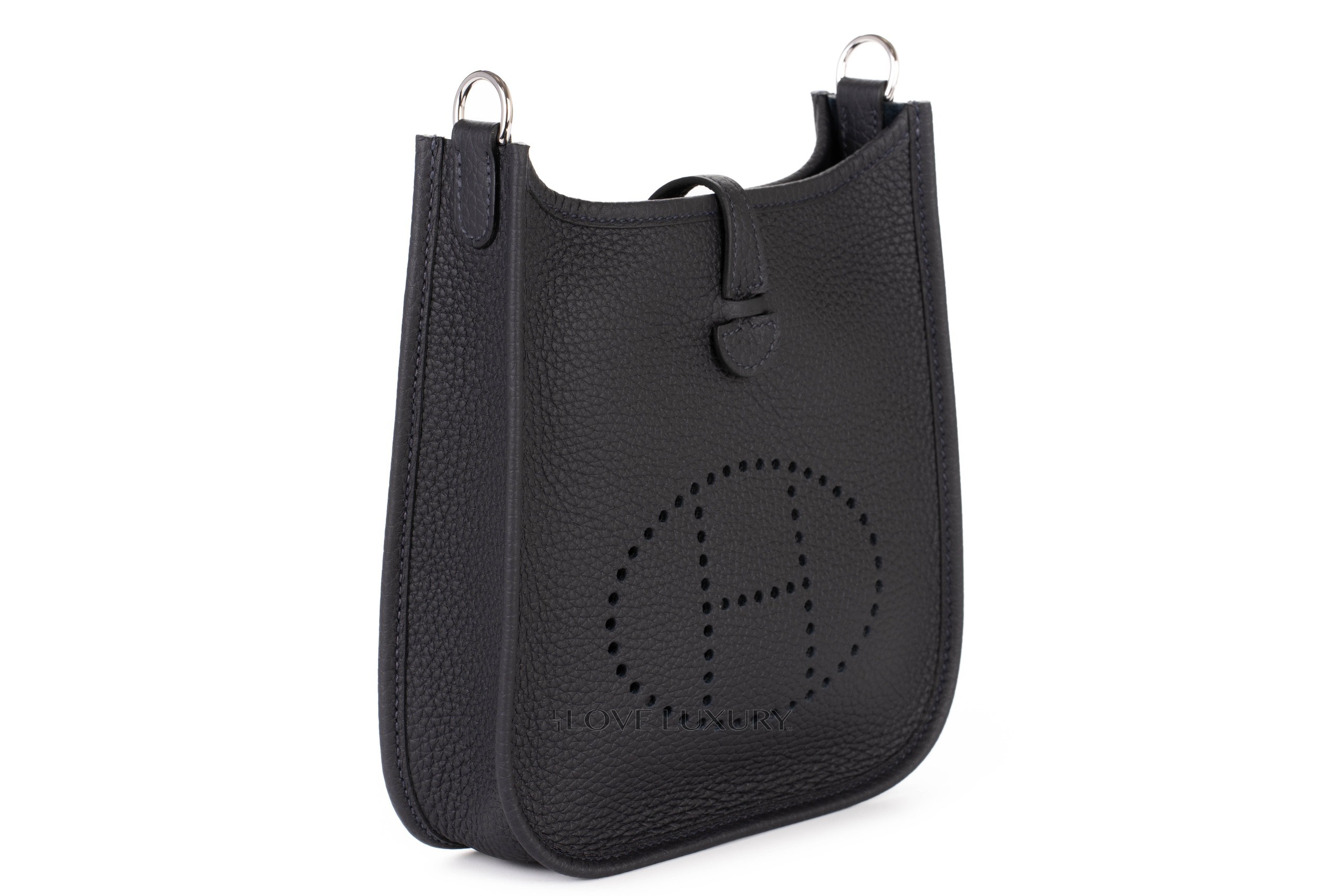 Hermès Mini Evelyne Bleu Nuit Clemence Palladium Hardware / B stamp 2023 Box Fresh