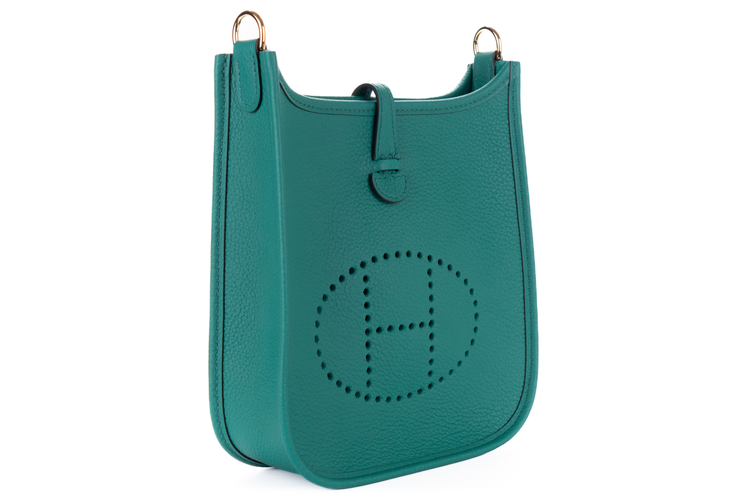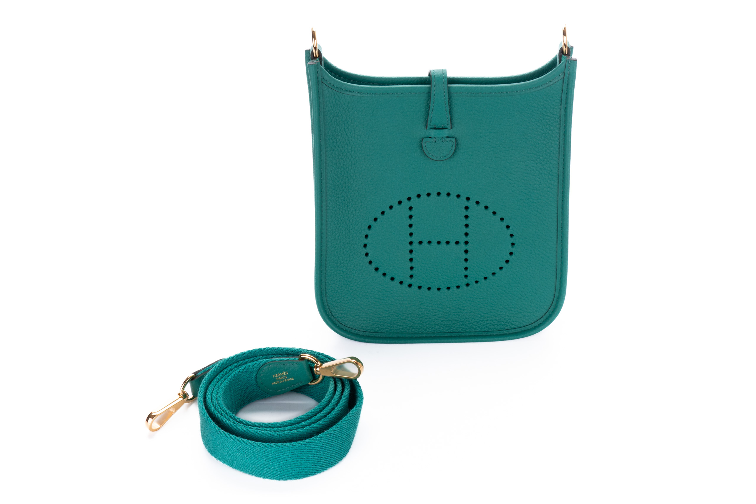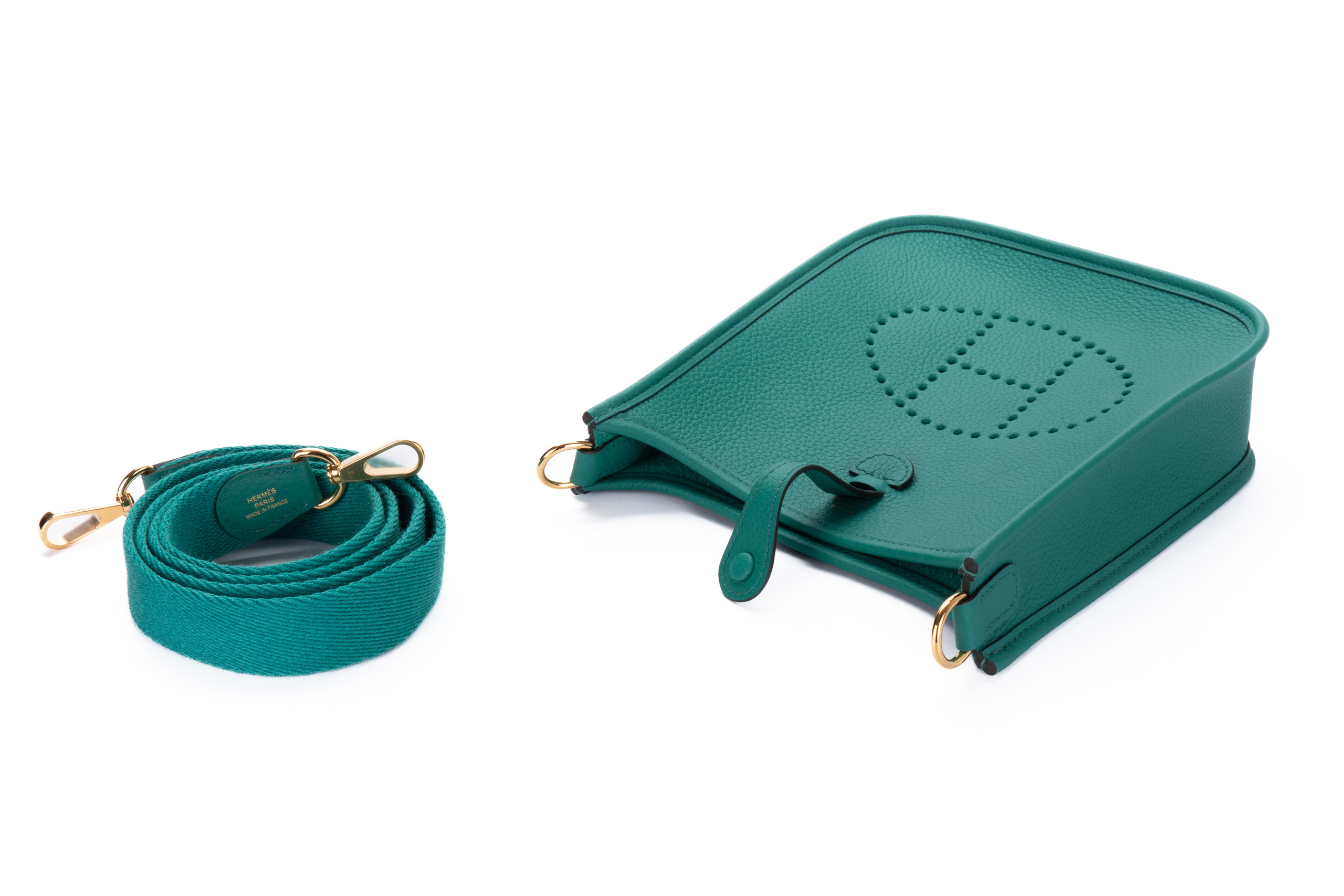 Hermès Mini Evelyne Emerald Clemence Gold Hardware/ U Stamp 2022 Brand New