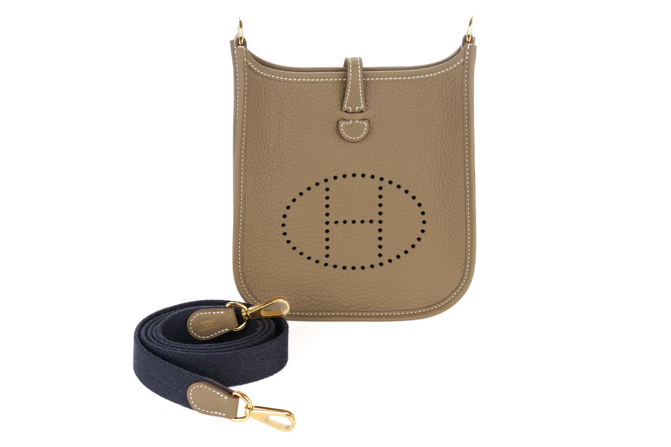 Hermès Mini Evelyne Etoupe Clemence Gold Hardware / W Stamp 2024, Brand New