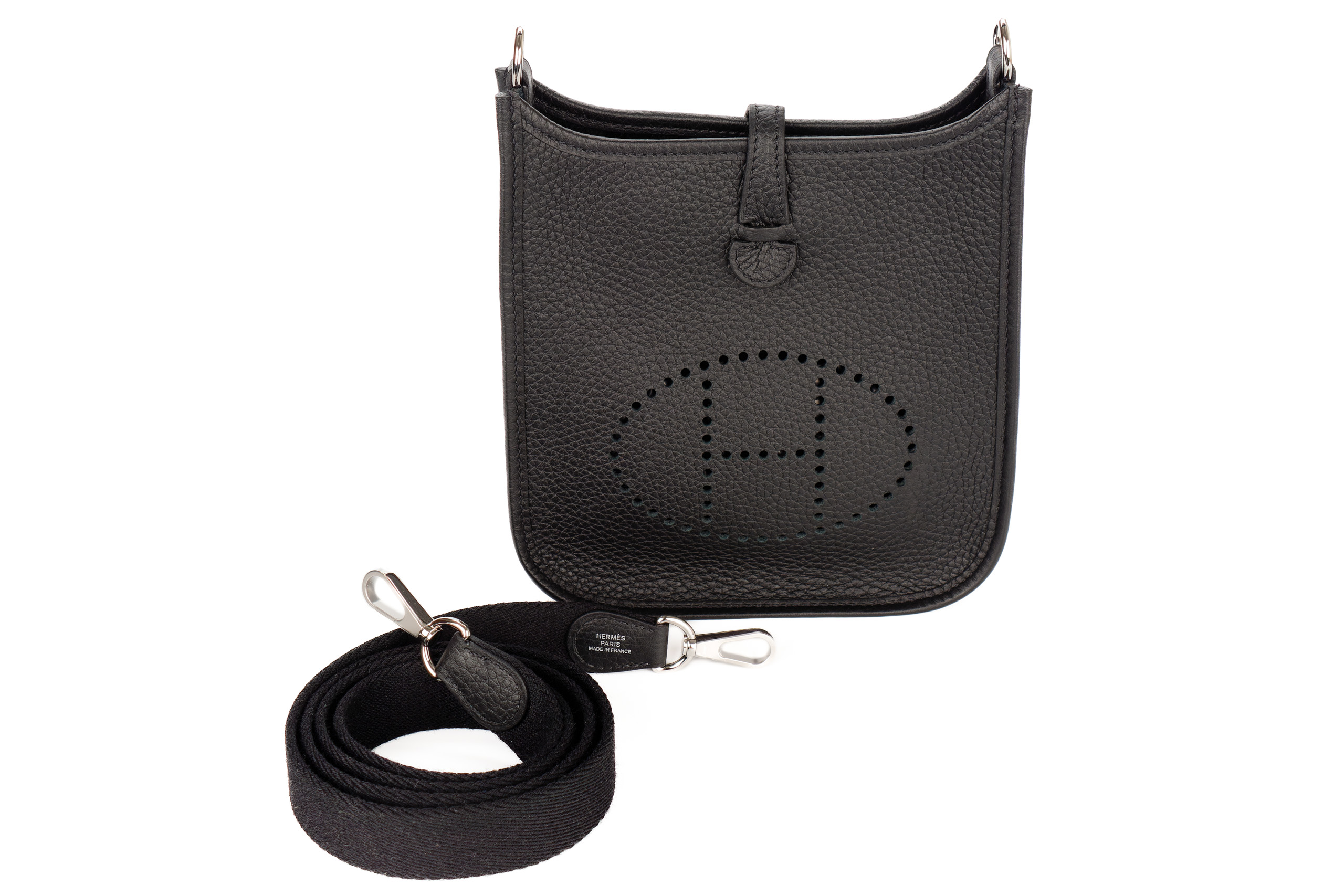 Hermès Mini Evelyne Noir Clemence Palladium Hardware/ W stamp 2024, brand new