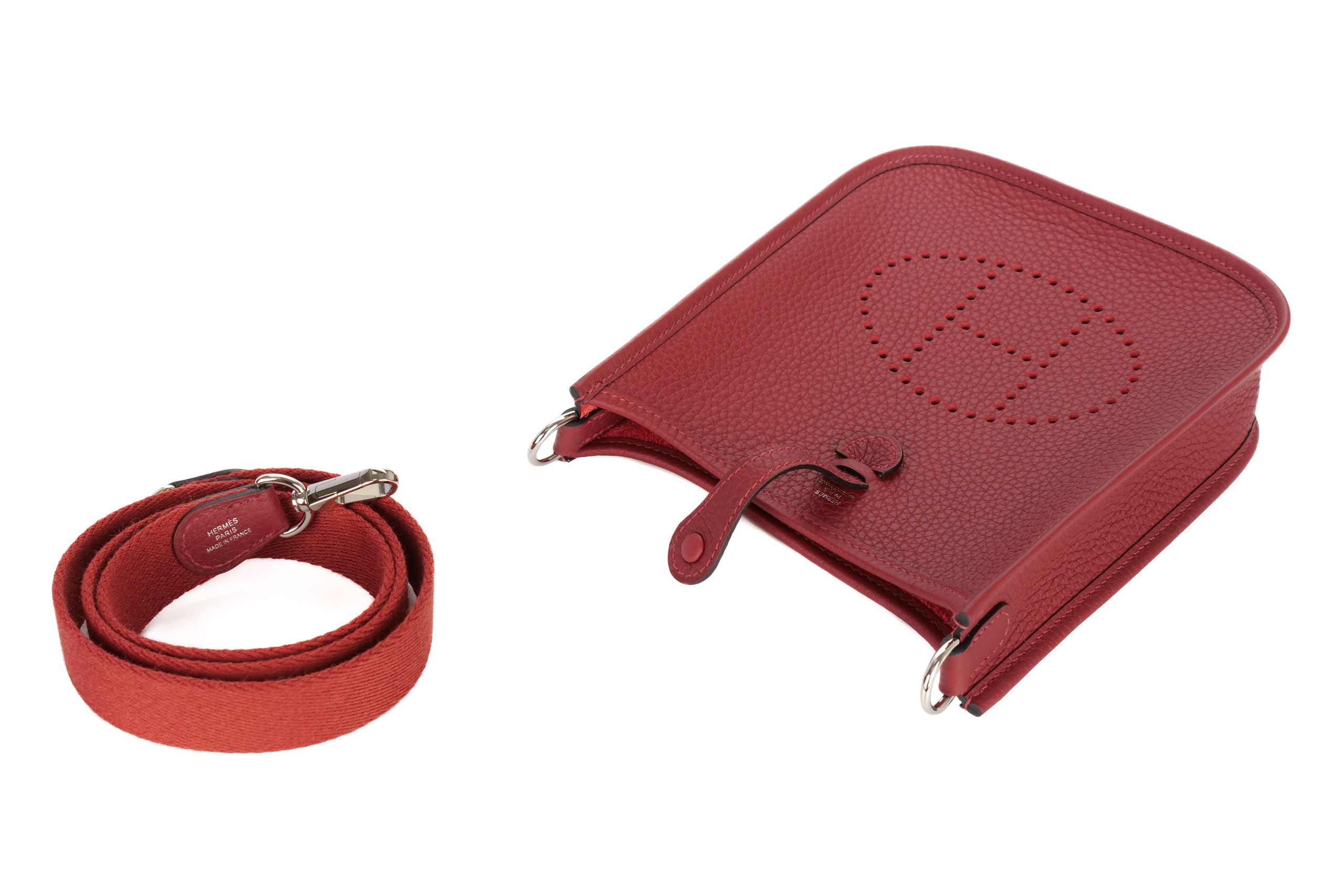 Hermès Mini Evelyne Rouge H Clemence Palladium Hardware