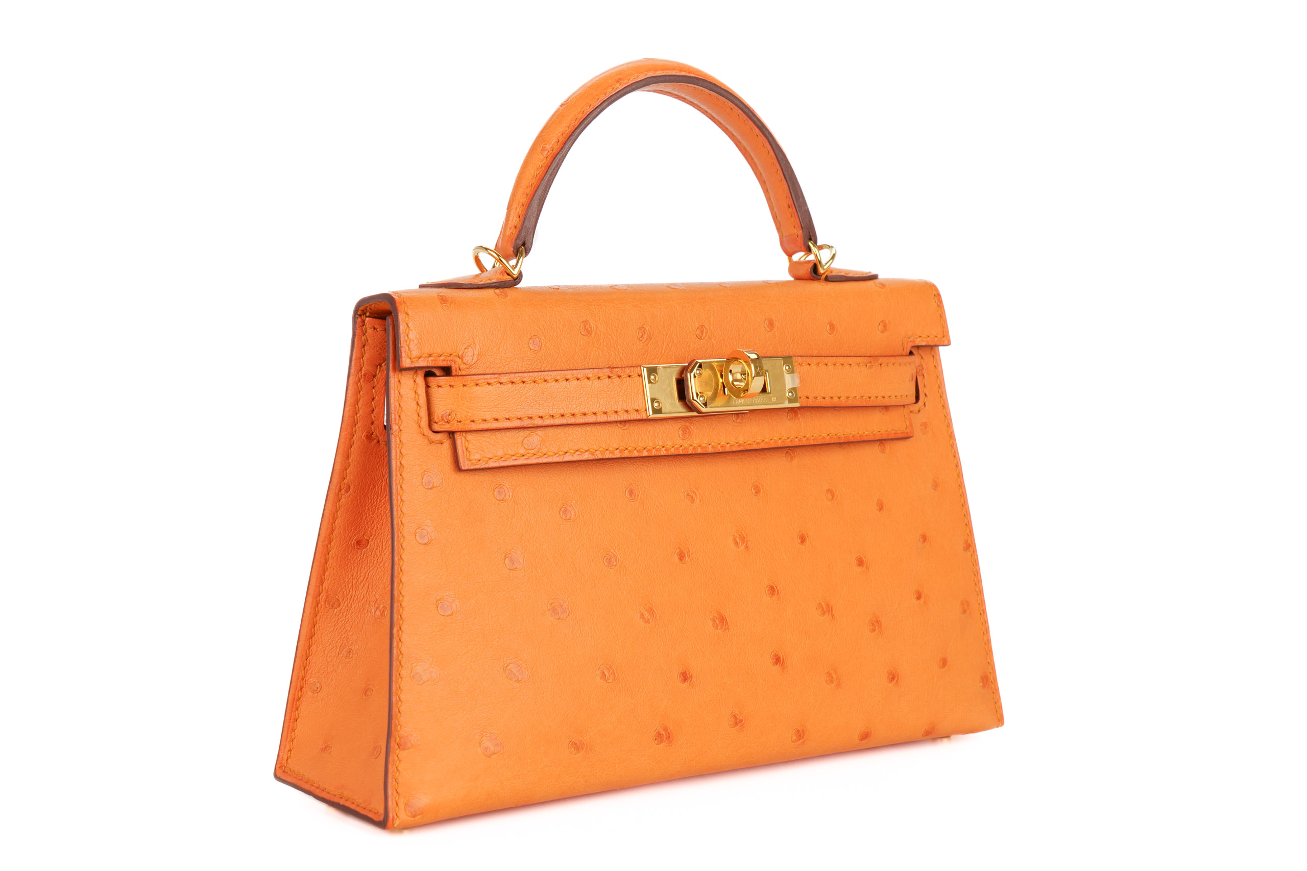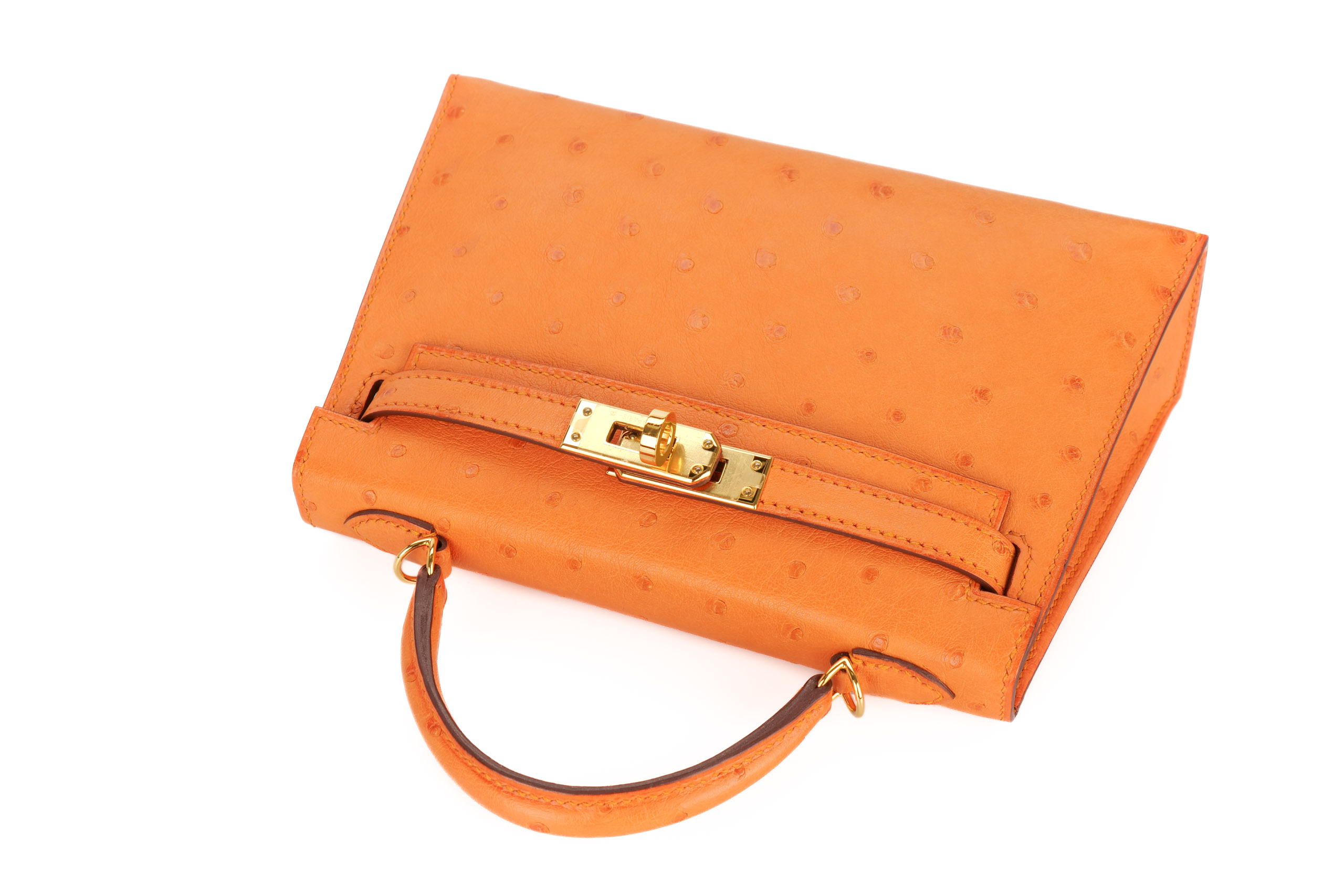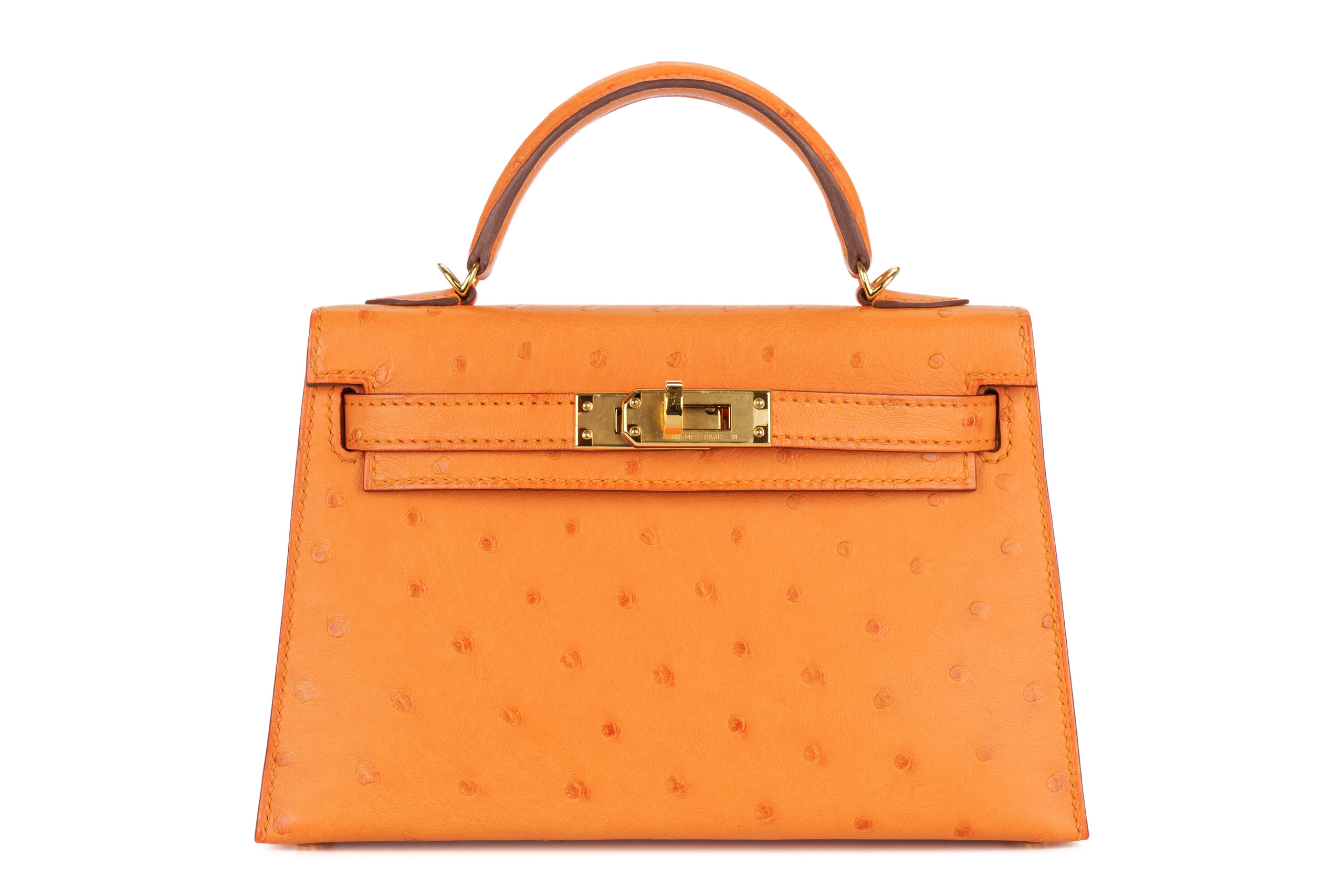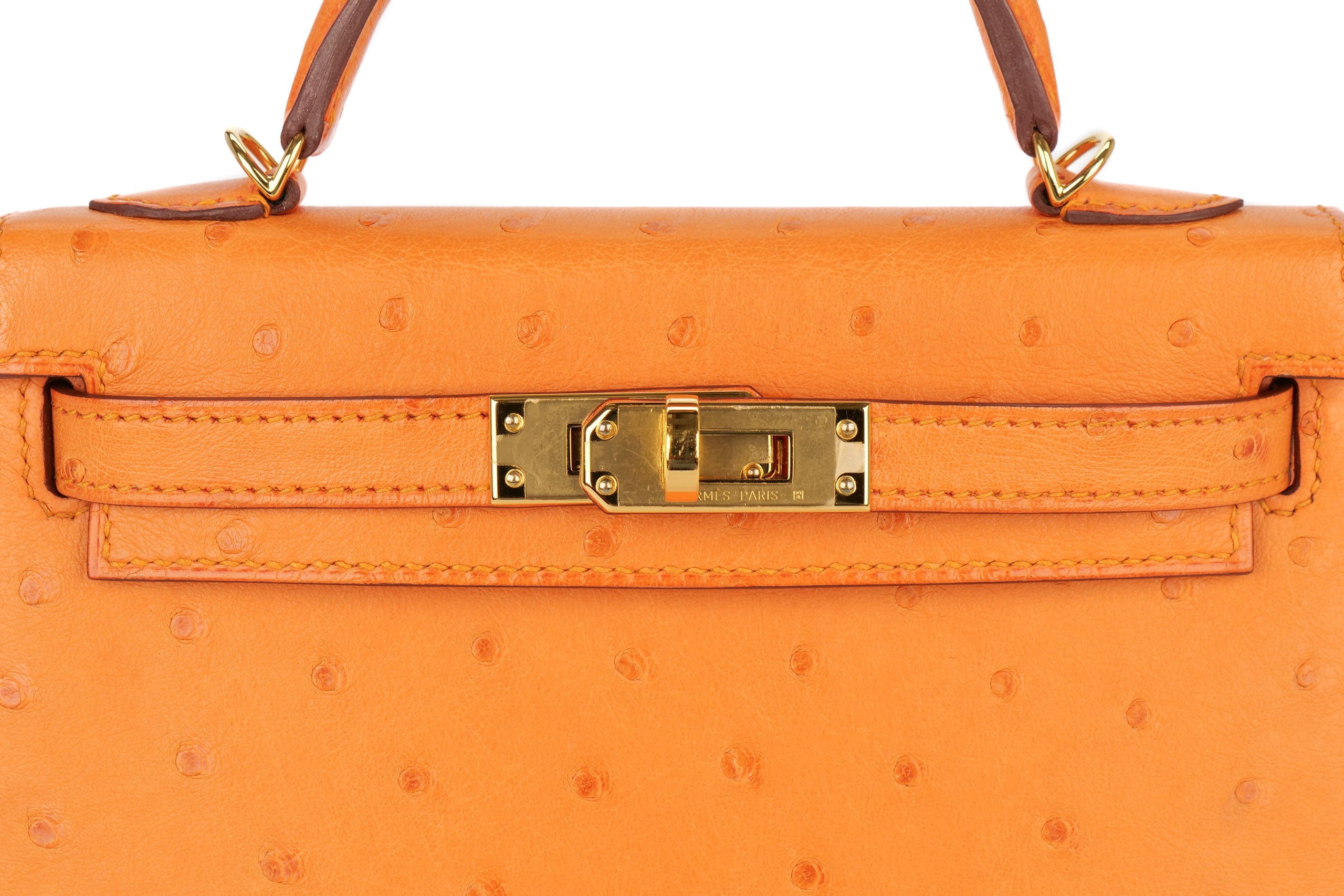 Hermès Mini Kelly Apricot Ostrich Gold Hardware / D Stamp 2020, Brand New