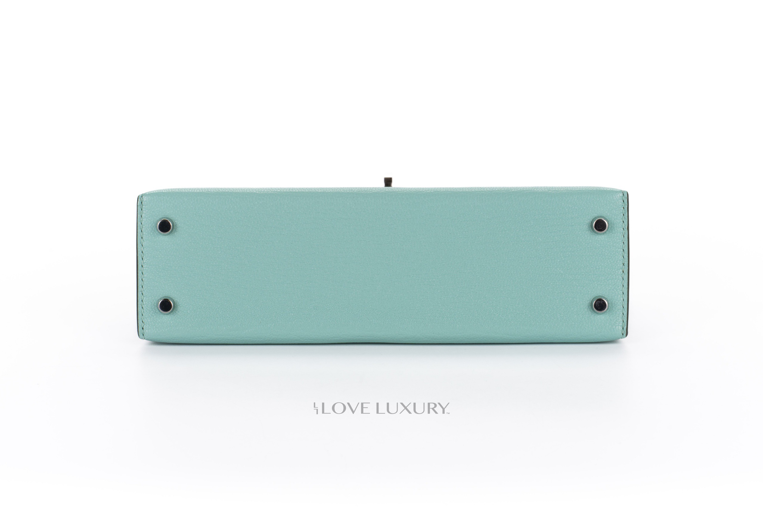 Hermès Mini Kelly Aqua Chèvre Mysore Verso Cobalt Swift Palladium Hardware / U stamp 2022 Box Fresh