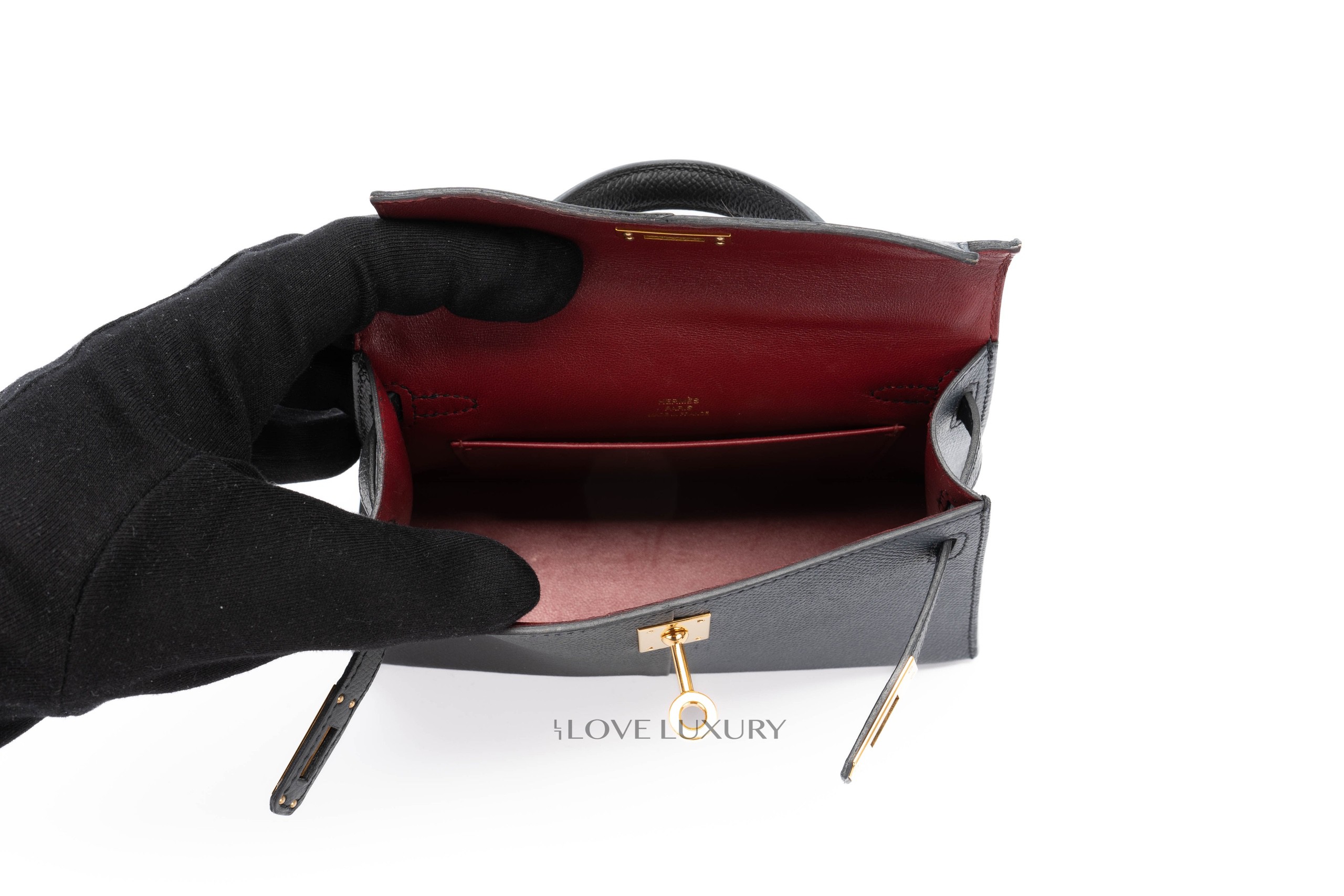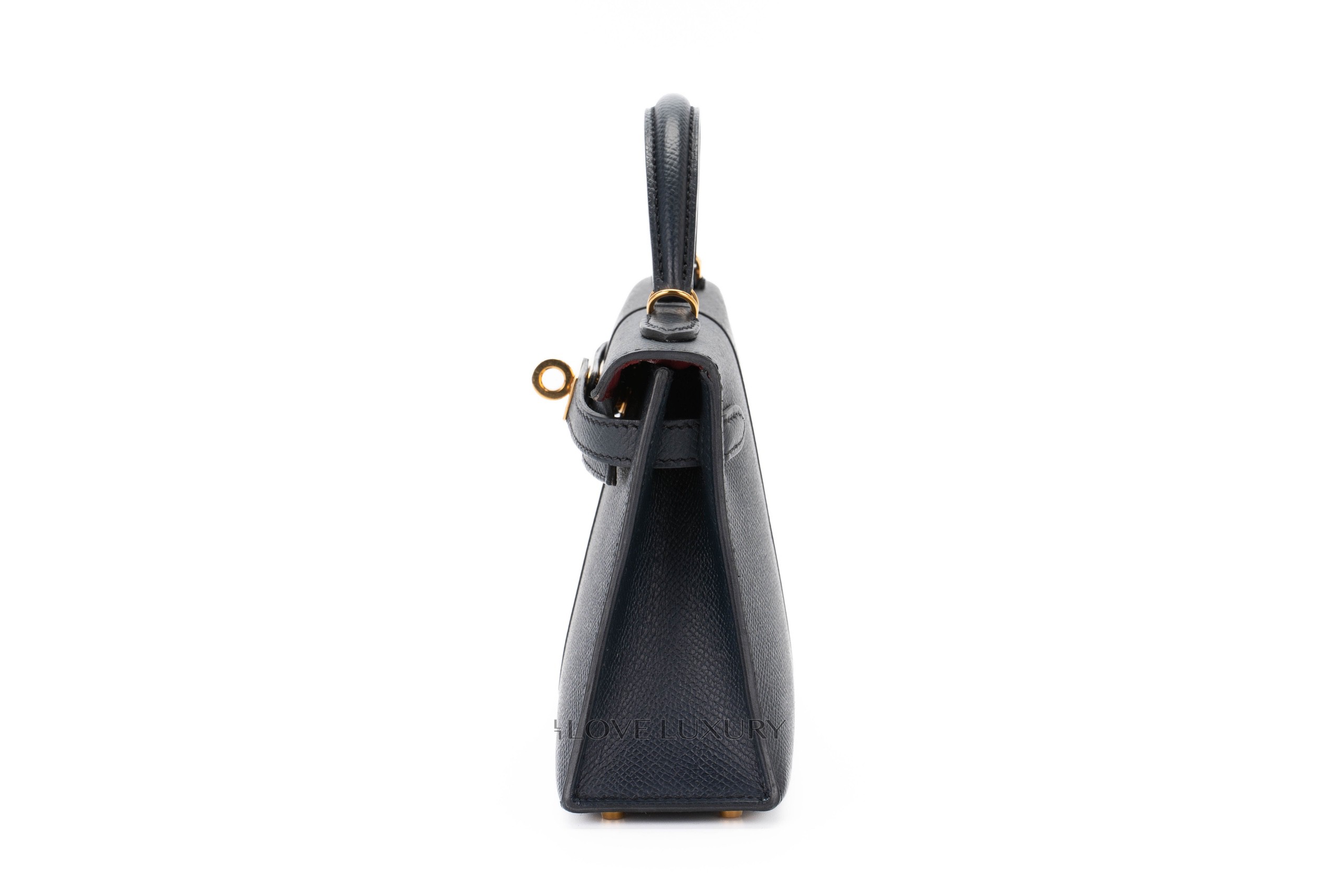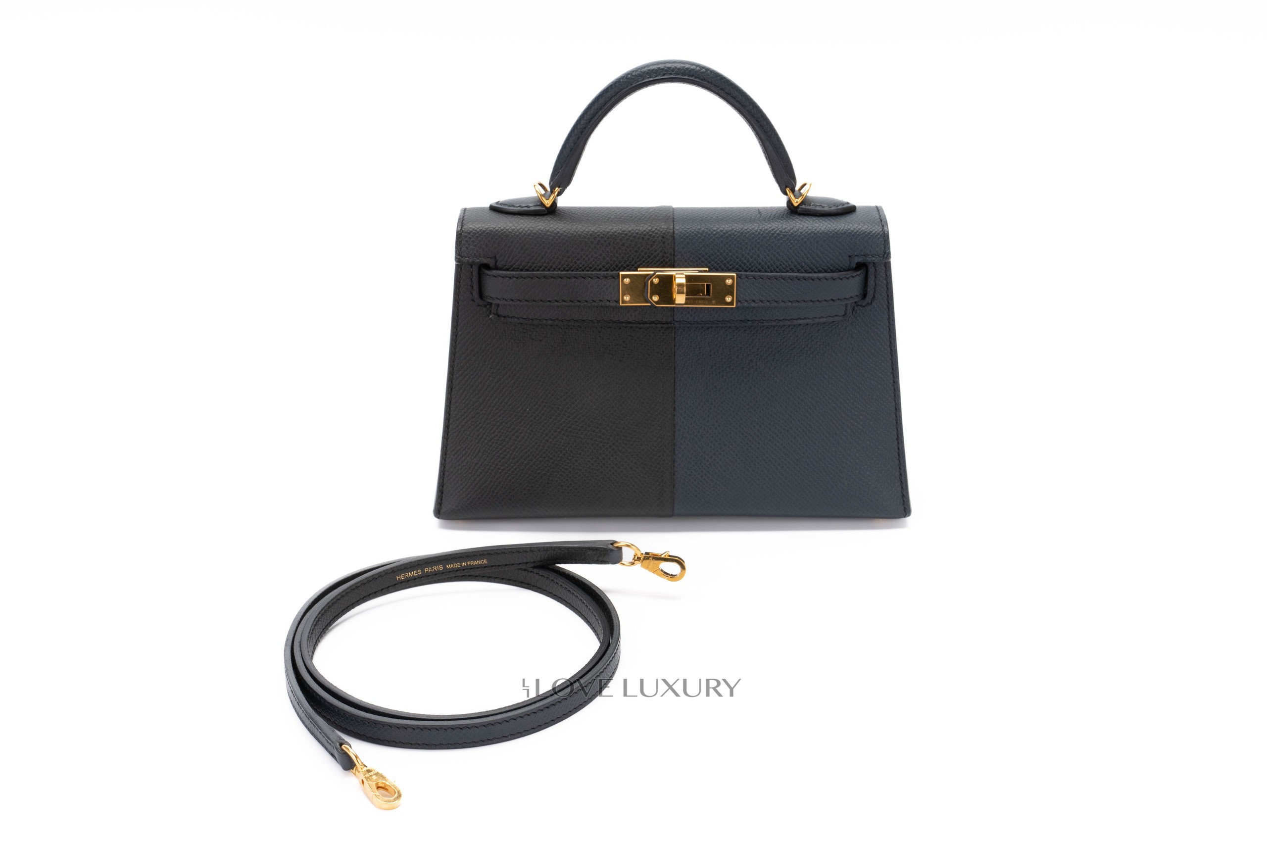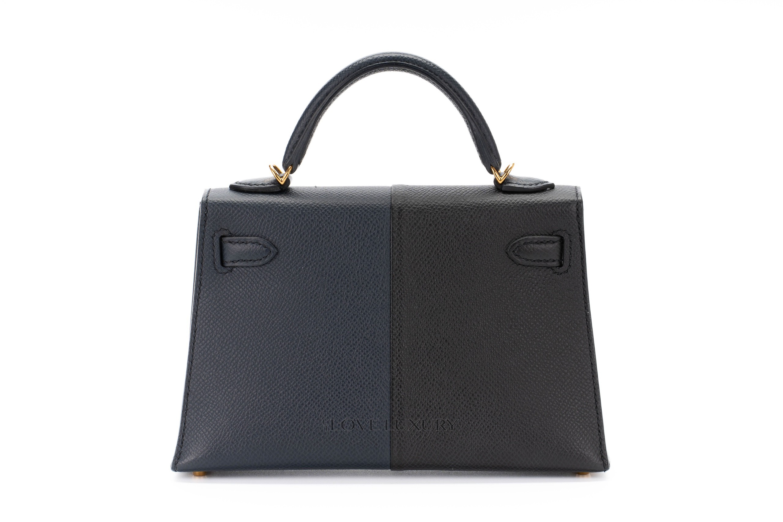 Hermès Mini Kelly Casaque Epsom Blue Indigo / Black Verso Rouge Grenat Gold Hardware / Z stamp 2021 Excellent Pre-Loved condition.