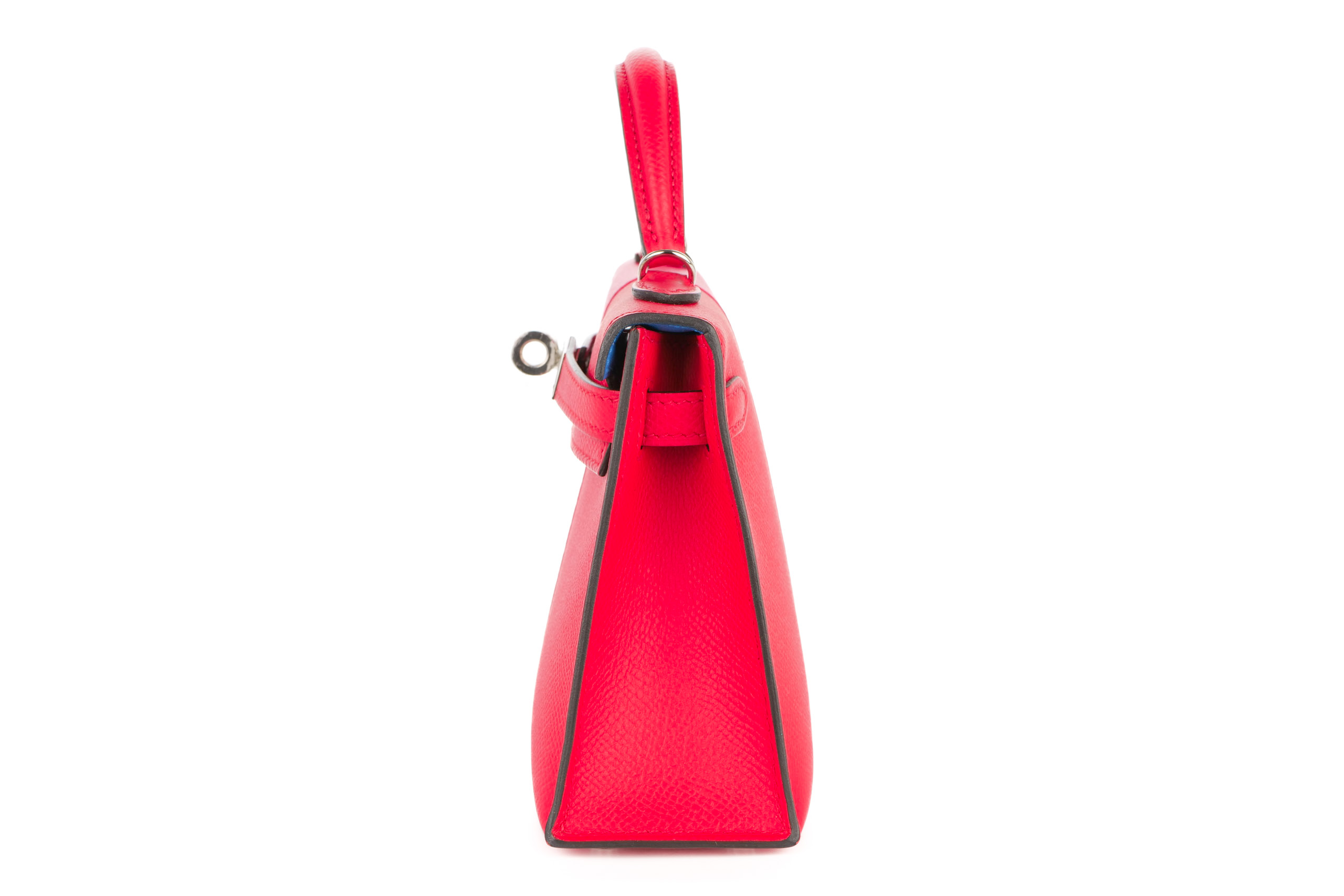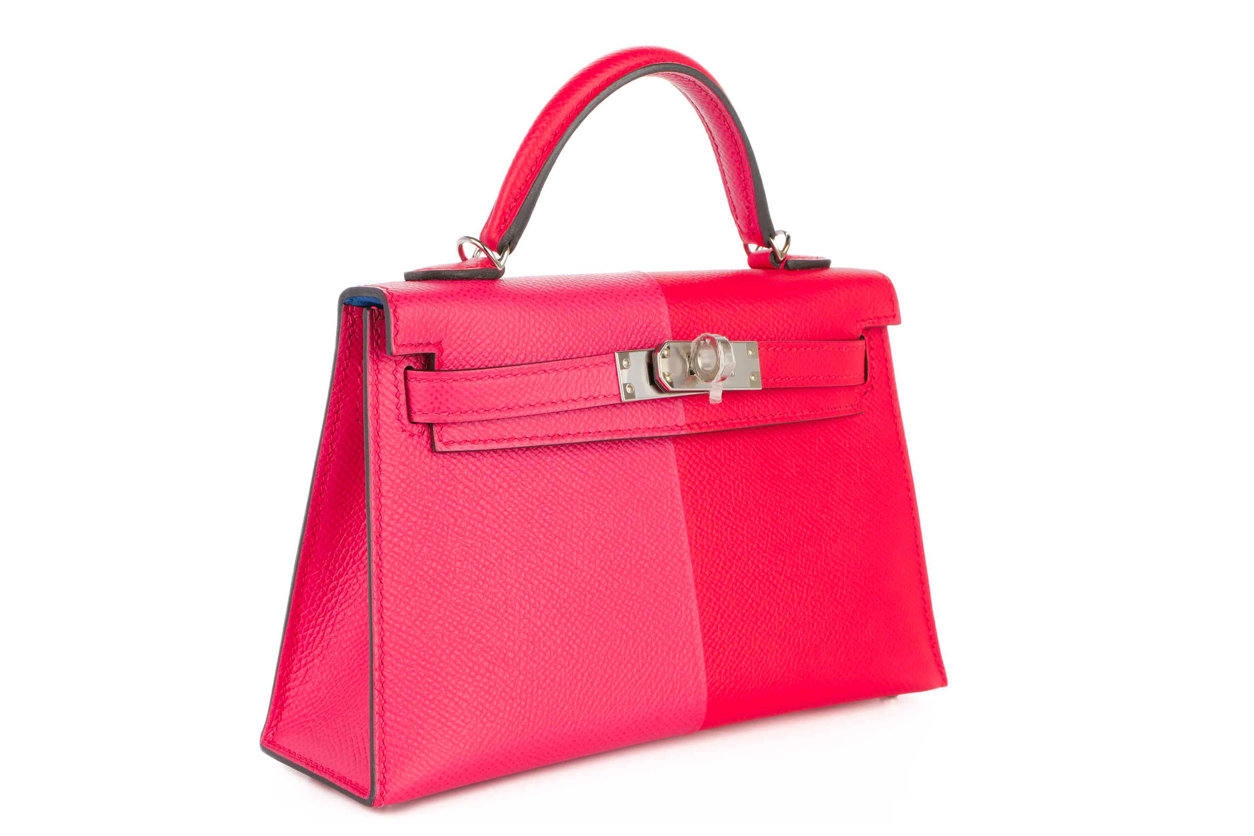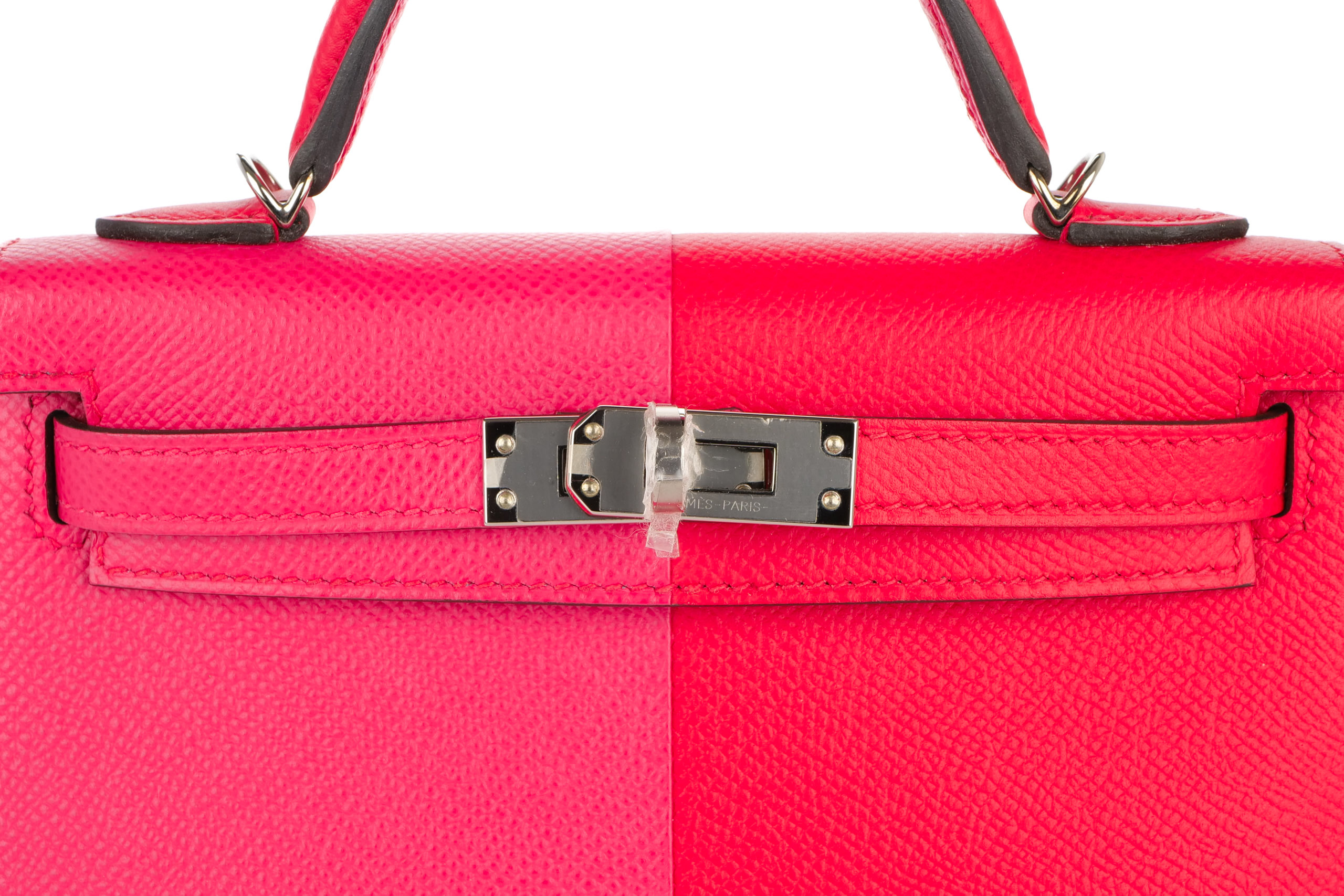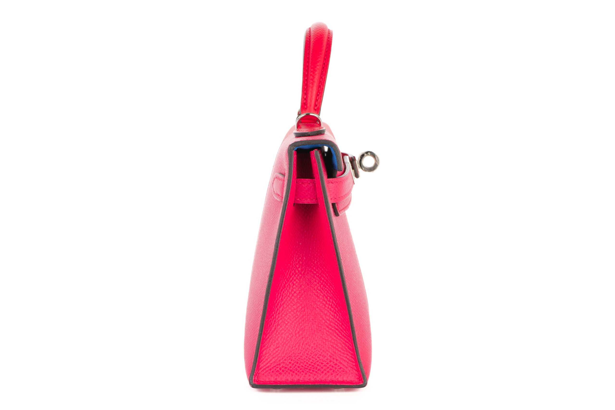 Hermès Mini Kelly Casaque Rouge de Coeur / Rose Extreme Epsom Palladium Hardware 2021, Excellent Preloved