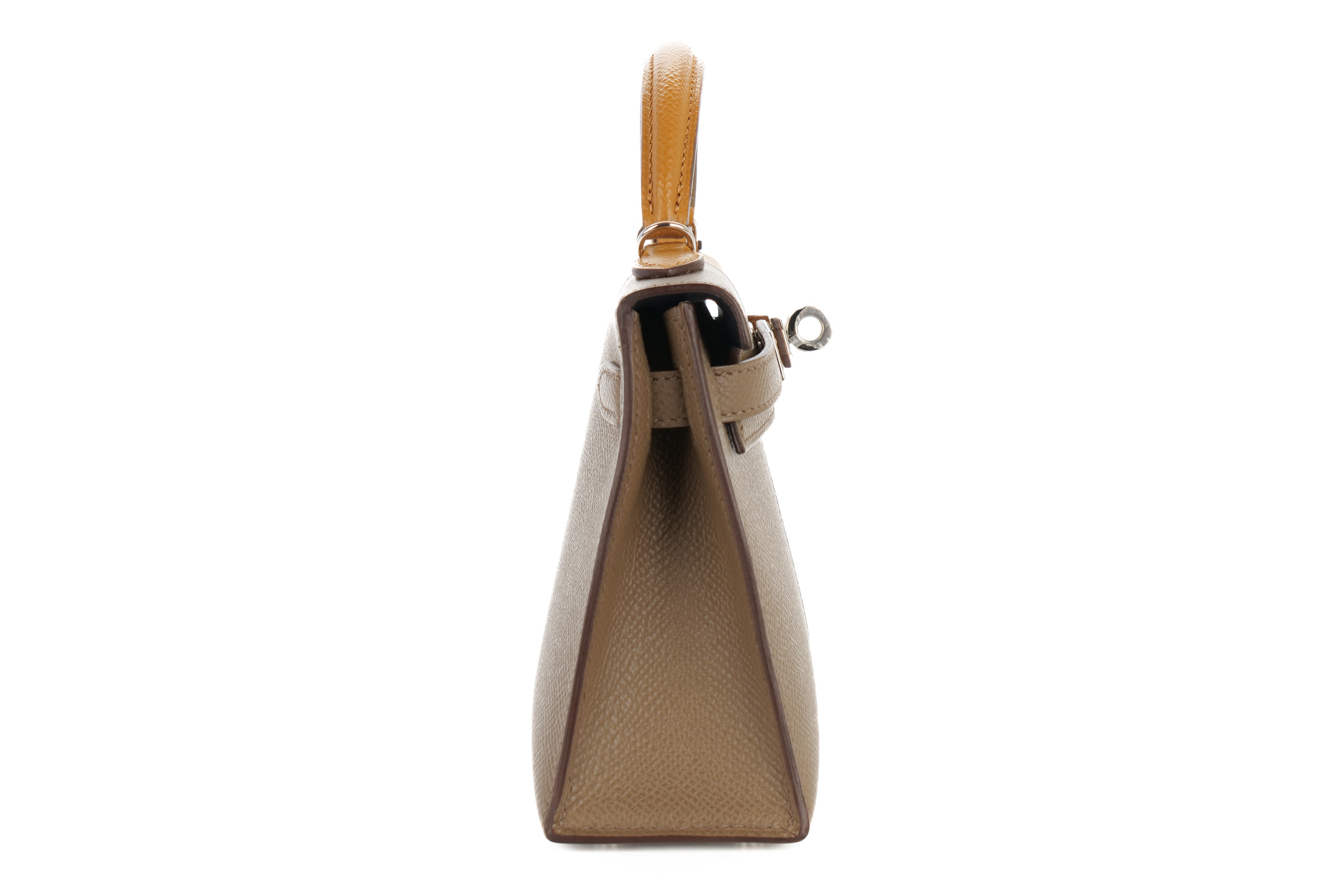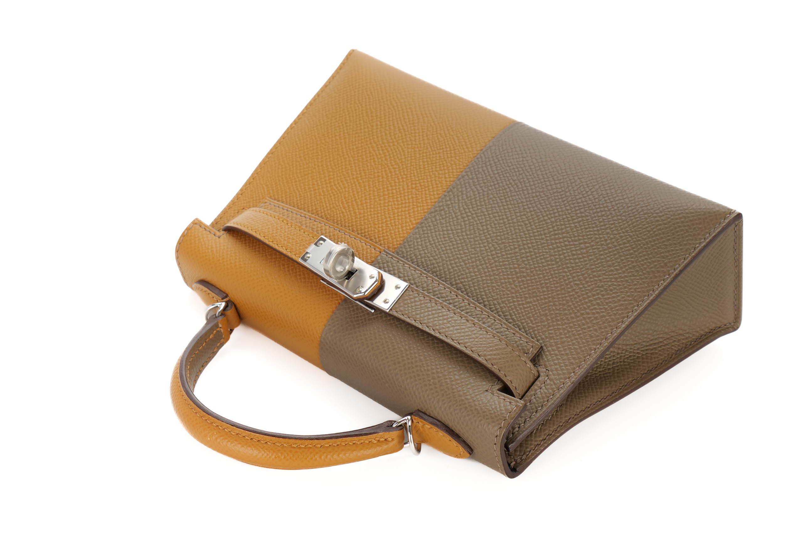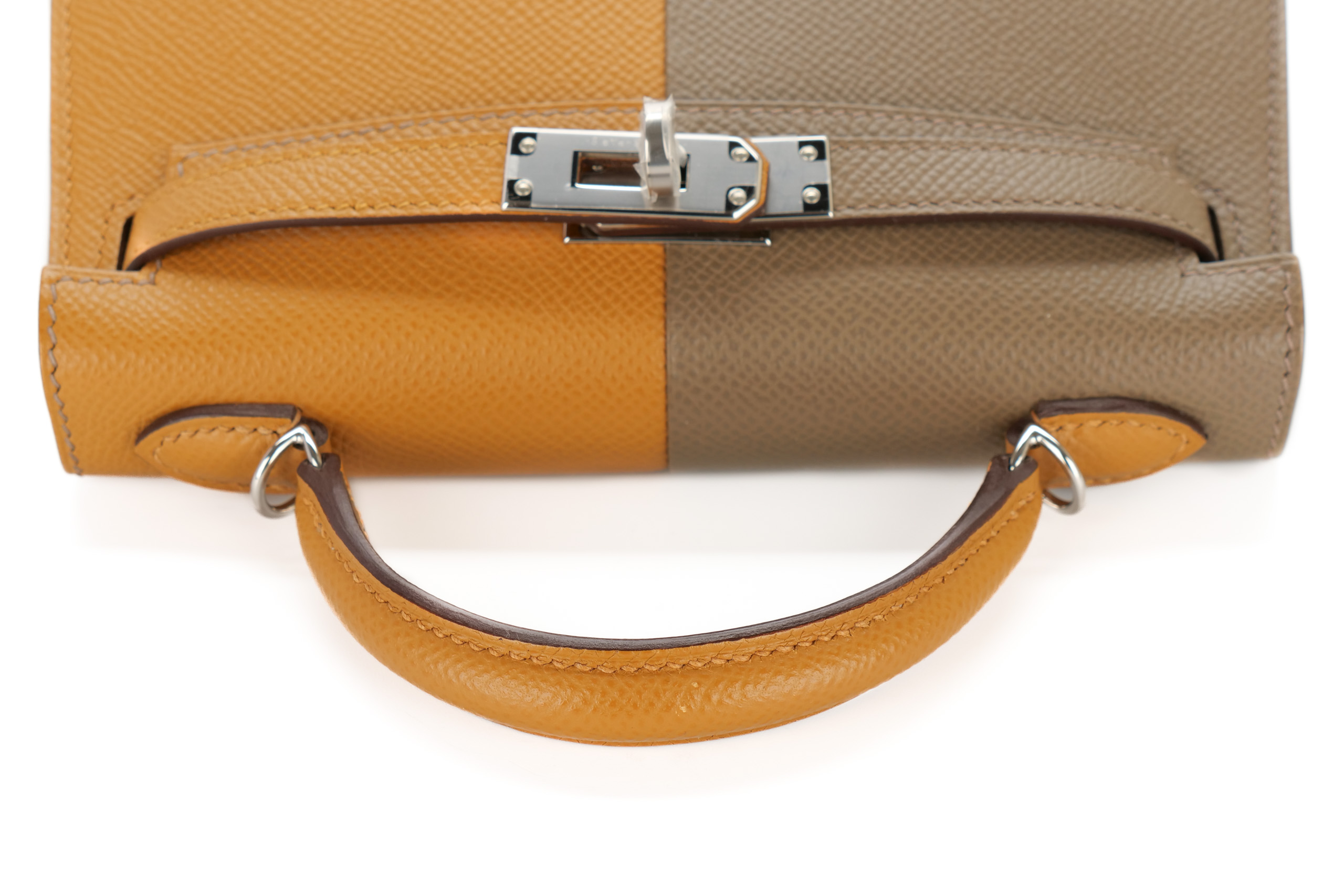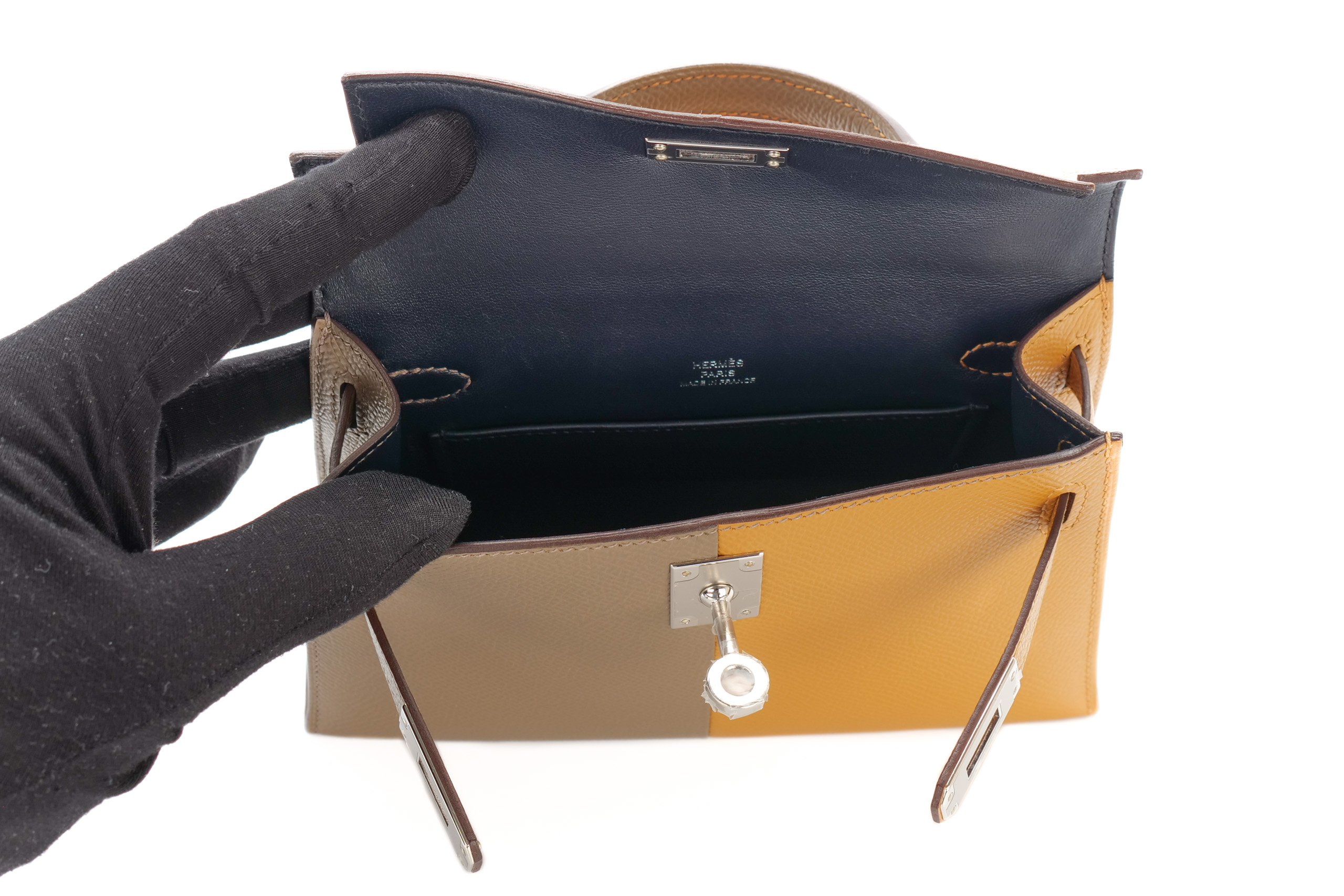 Hermès Mini Kelly Casaque Sesame/Etoupe Verso Bleu Indigo Epsom Palladium Hardware / Z stamp 2021, Brand New