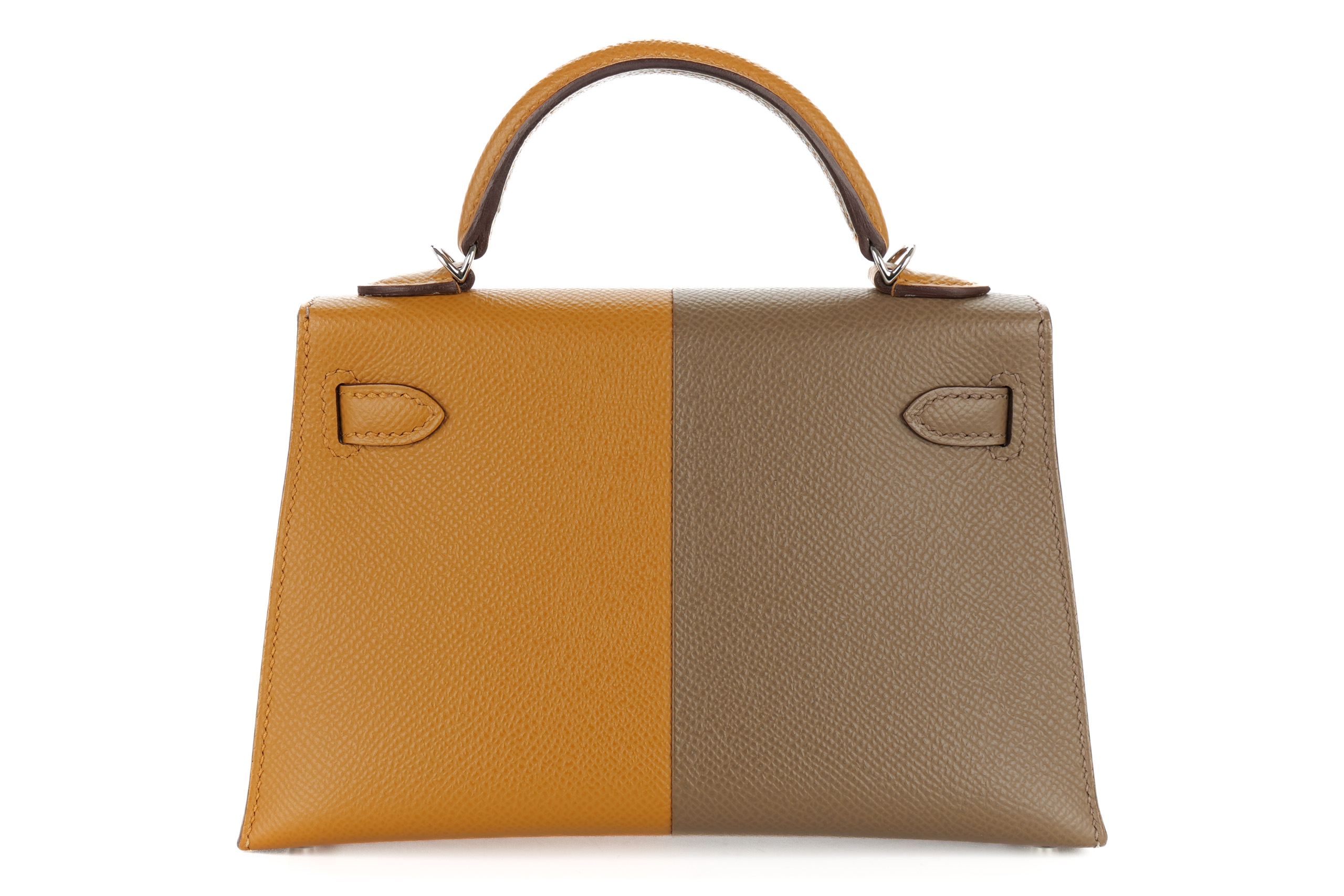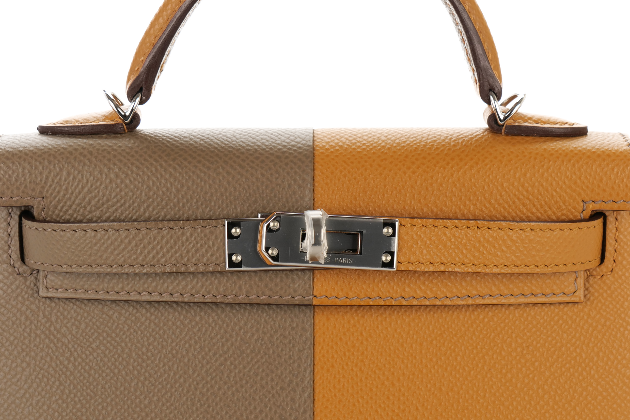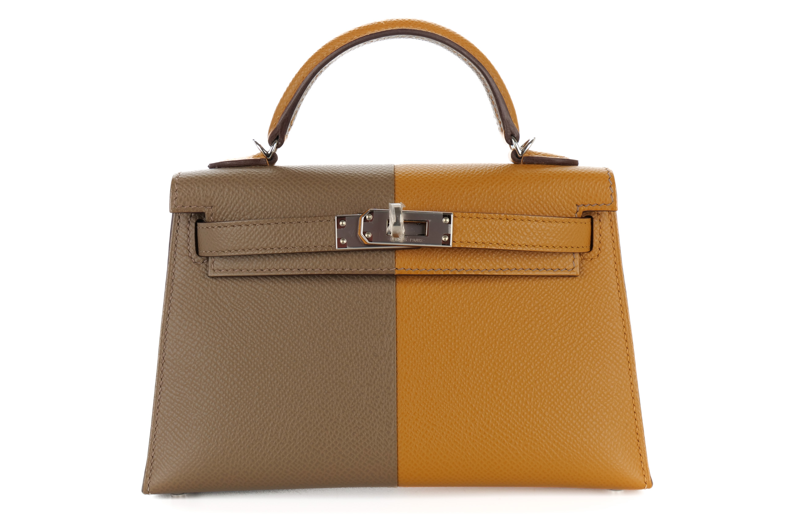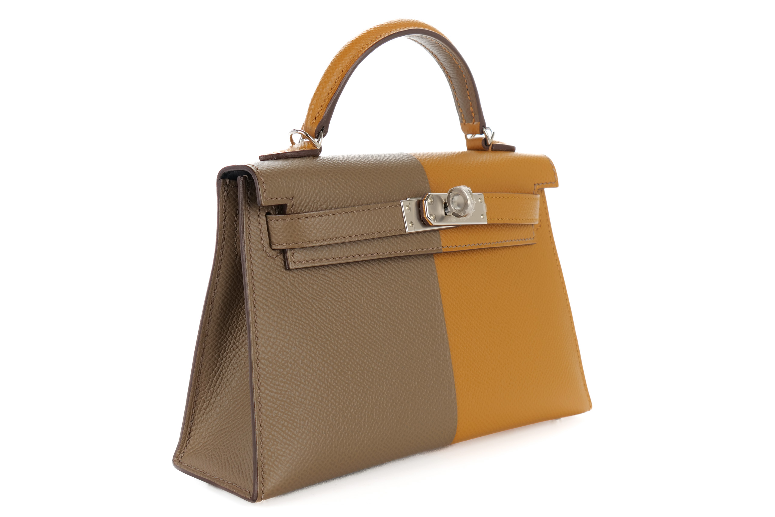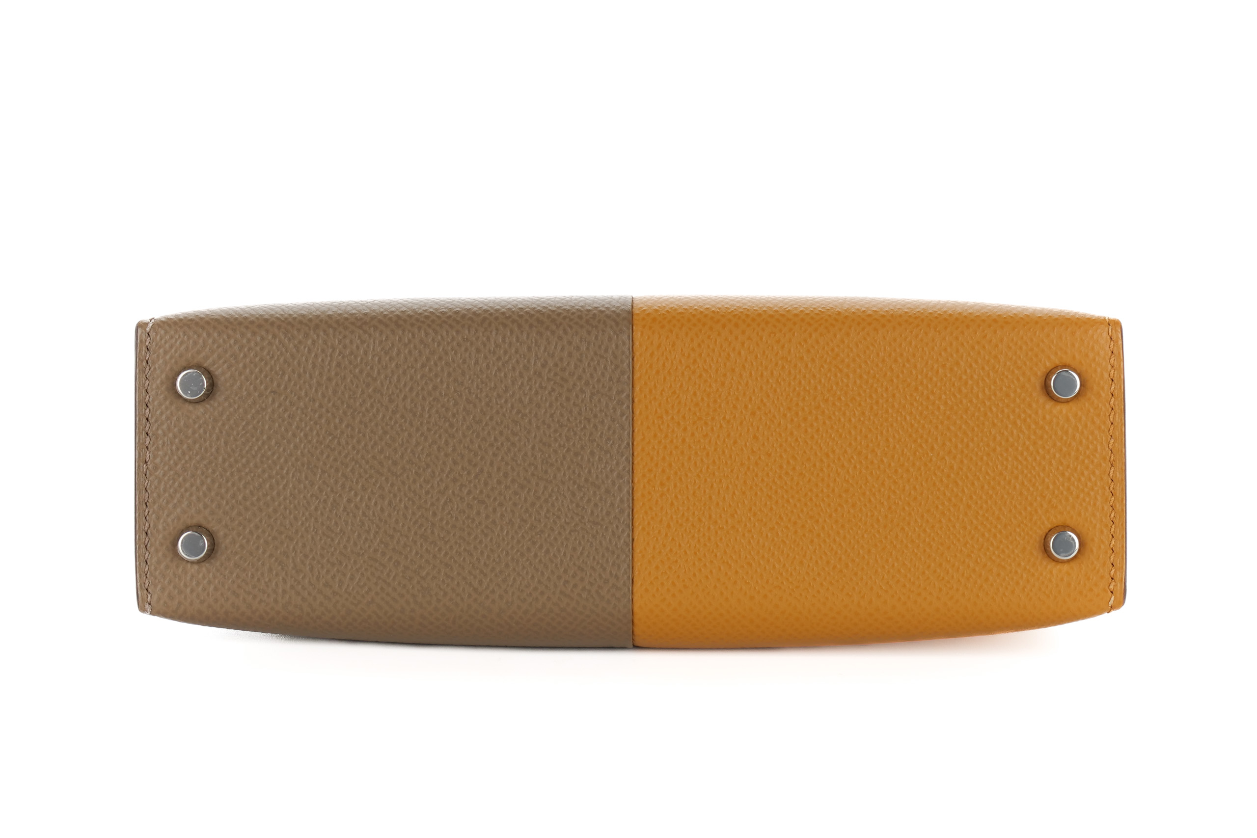 Hermès Mini Kelly Casaque Sesame/Etoupe Verso Bleu Indigo Epsom Palladium Hardware / Z stamp 2021, Brand New