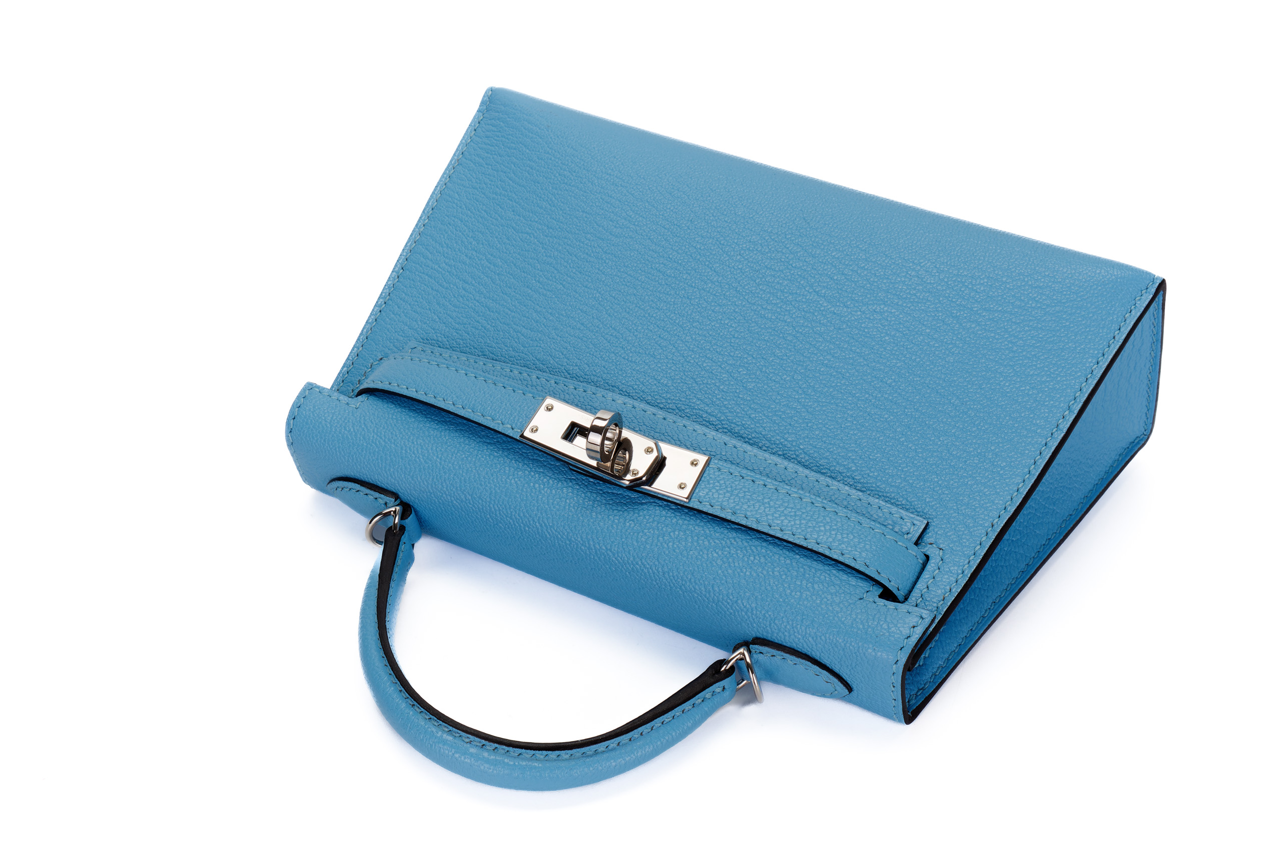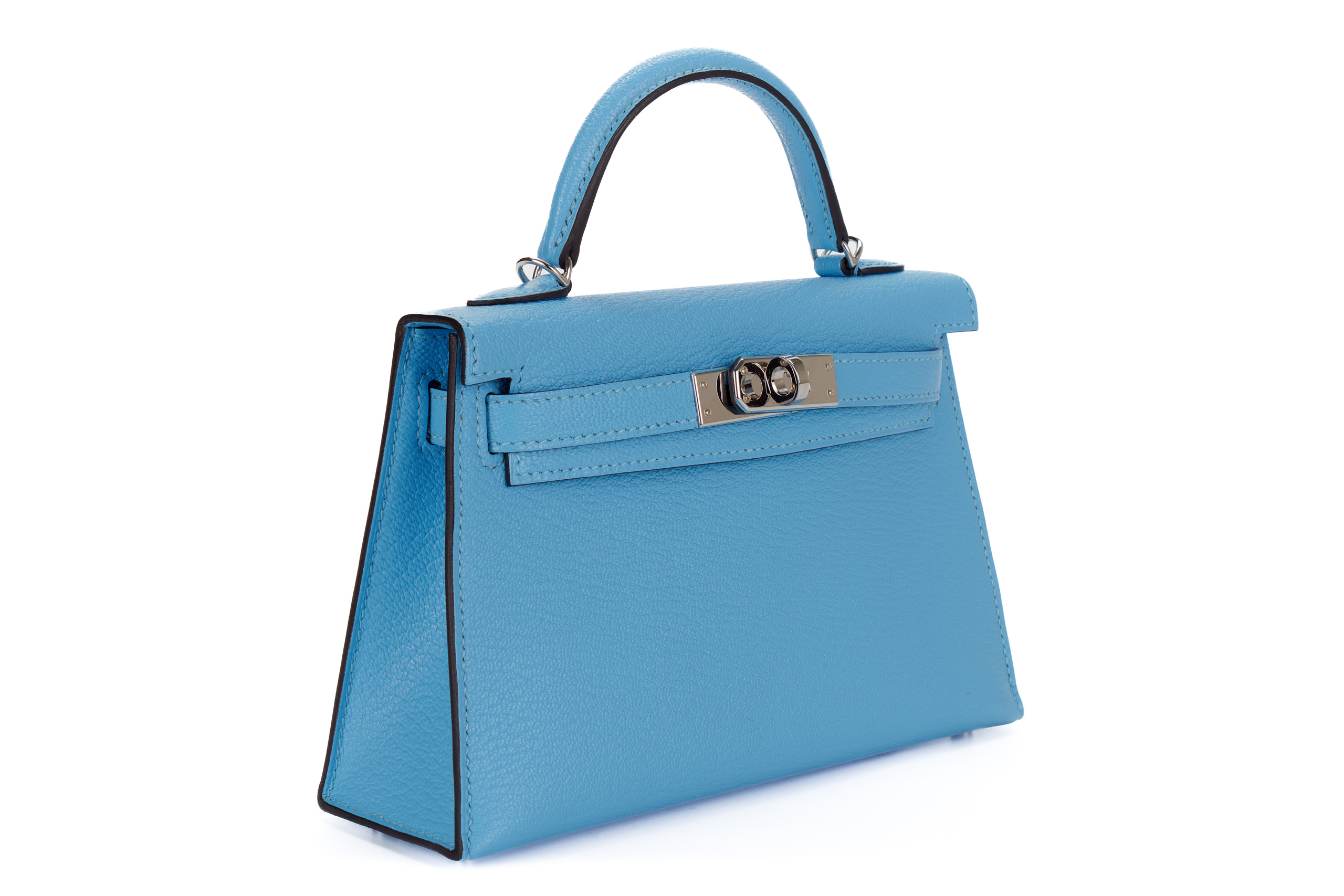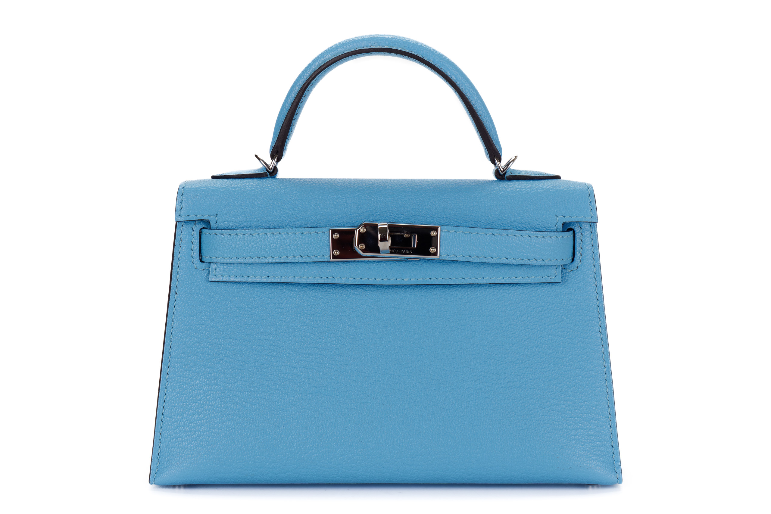 Hermès Mini Kelly Celeste Chevre Palladium Hardware / C stamp 2018 Excellent Pre-Loved condition