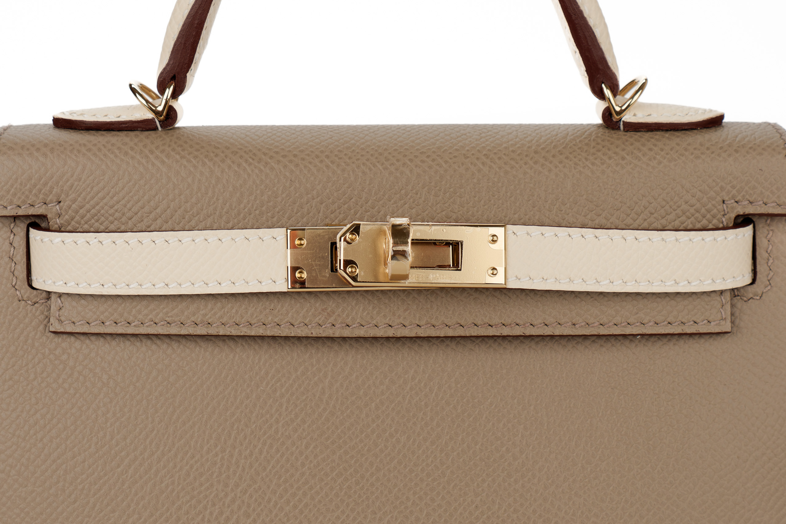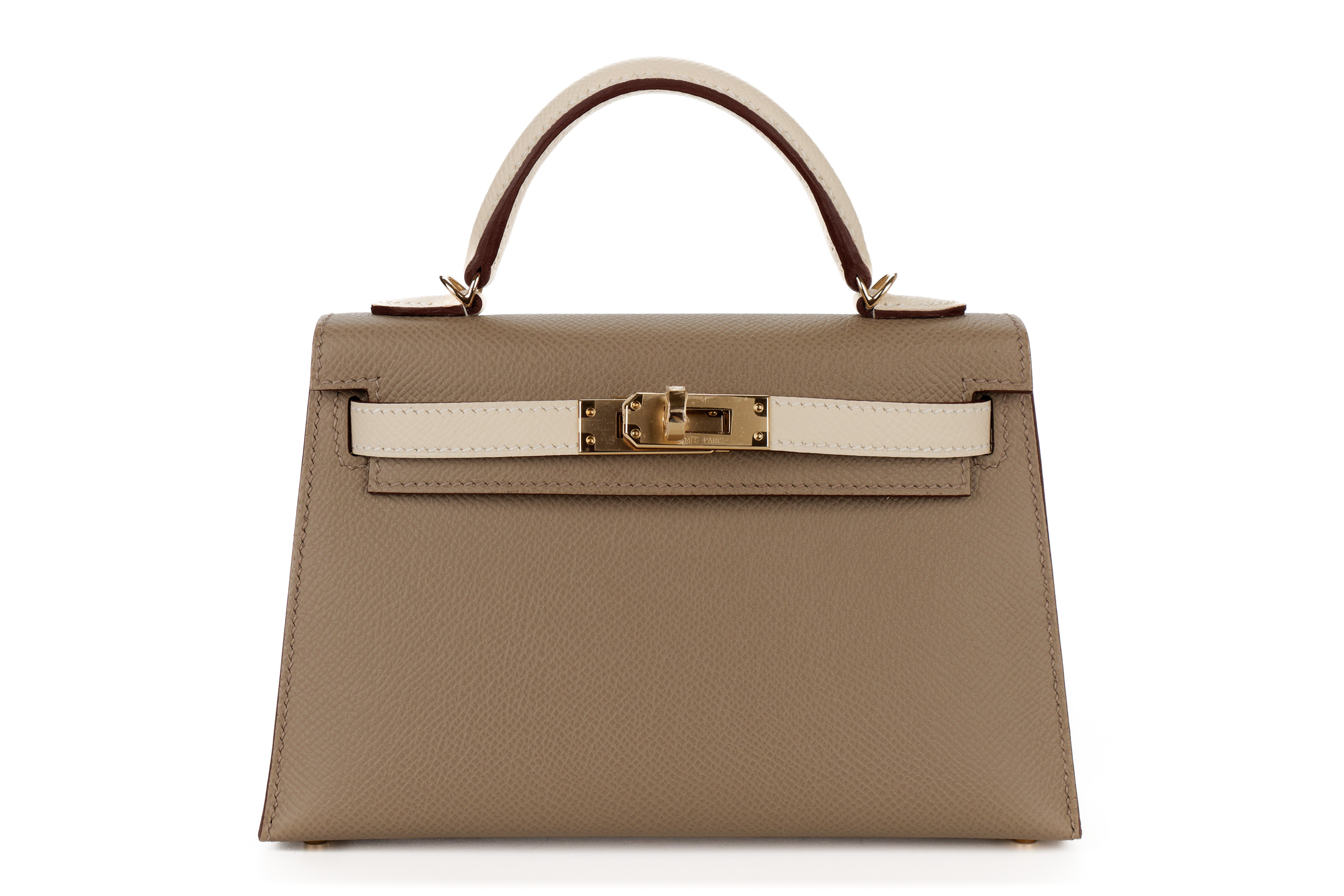 Hermès Mini Kelly Bi Color Gris Asphalte/Craie Epsom Gold Hardware/ W stamp 2024, brand new