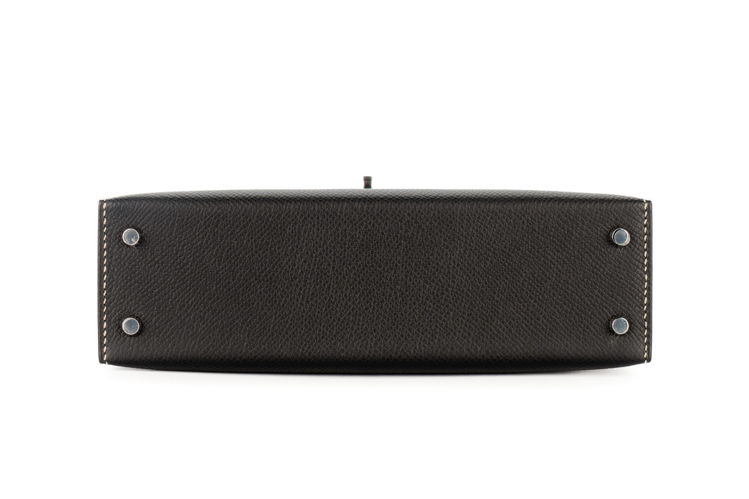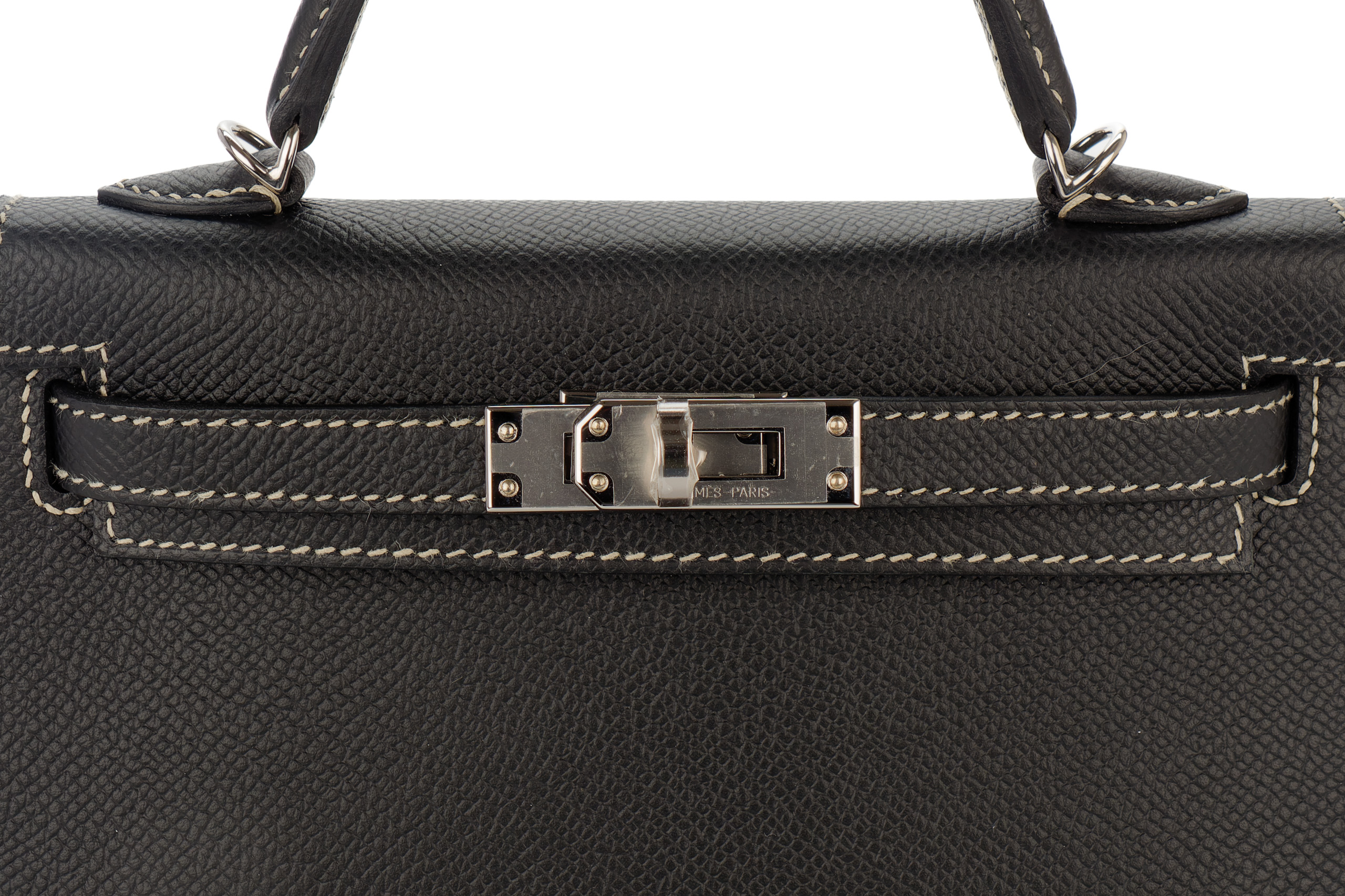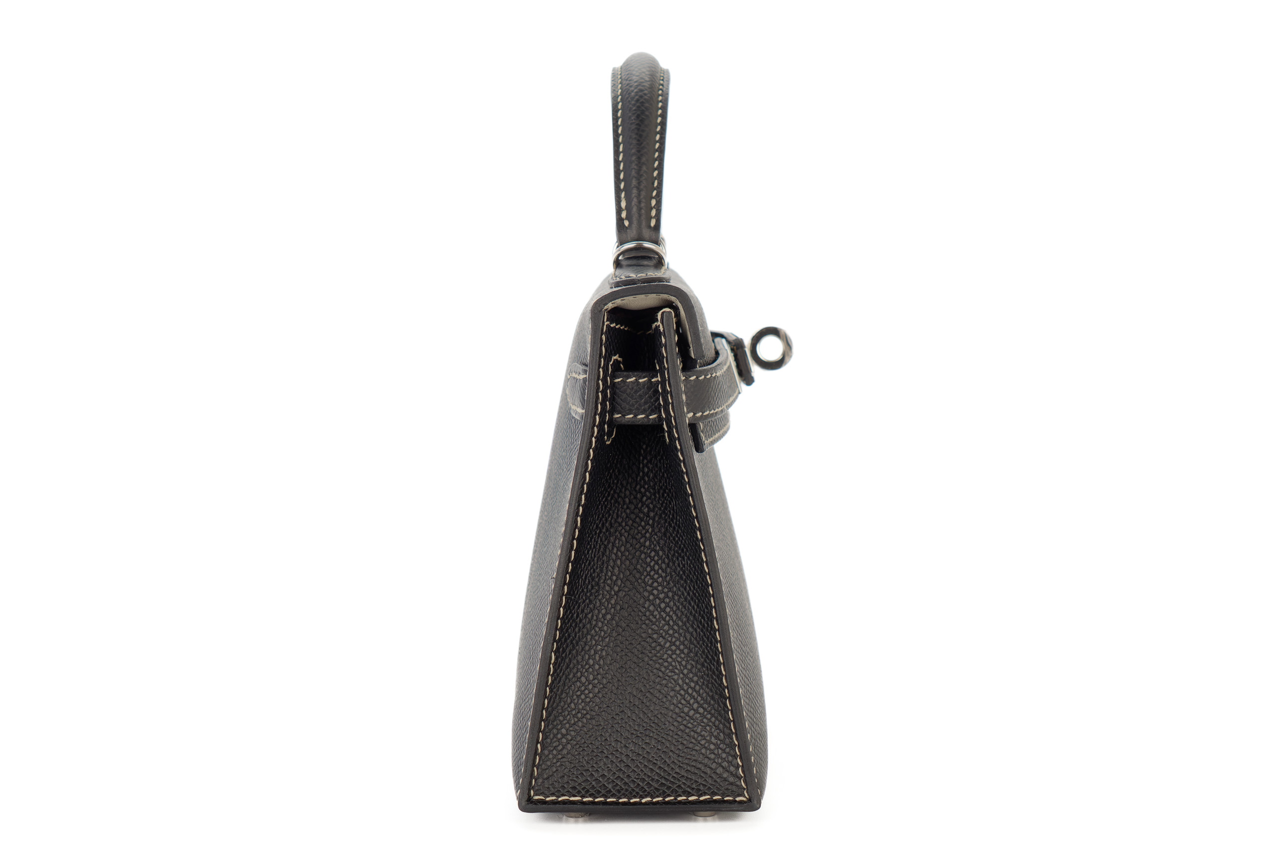 Hermès Mini Kelly Noir / Black / Gris Pale Epsom Palladium Hardware / W Stamp 2024, Brand New