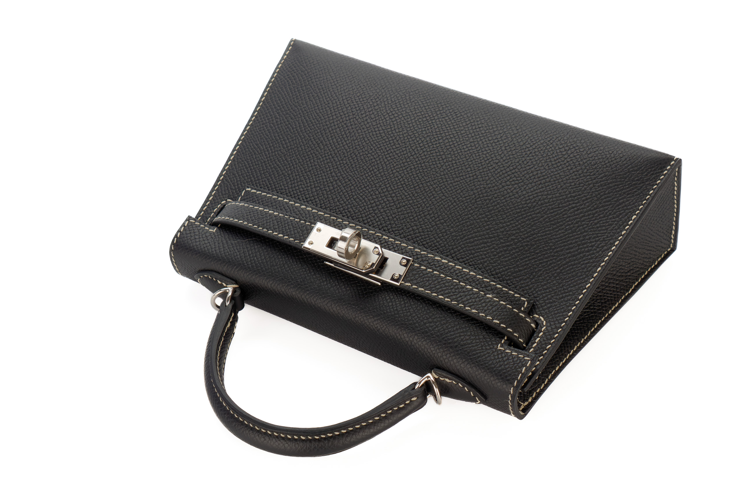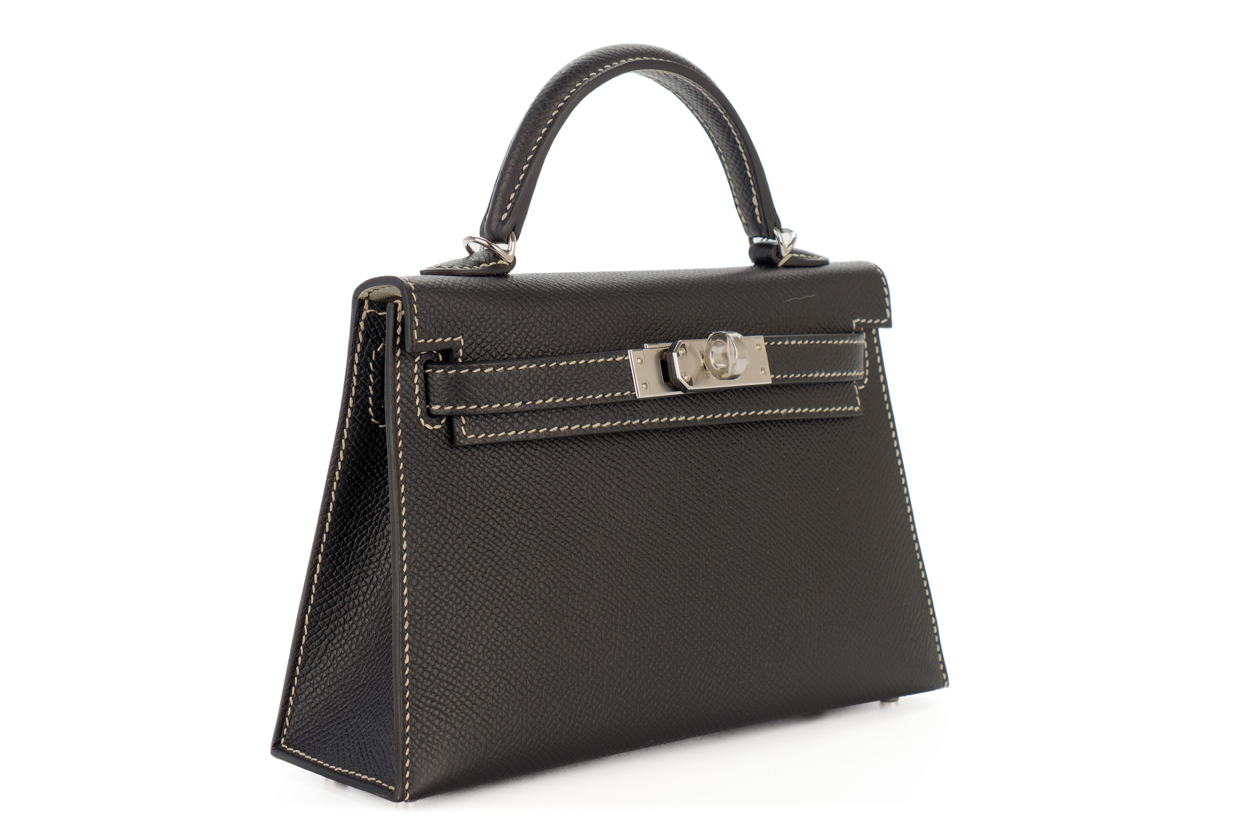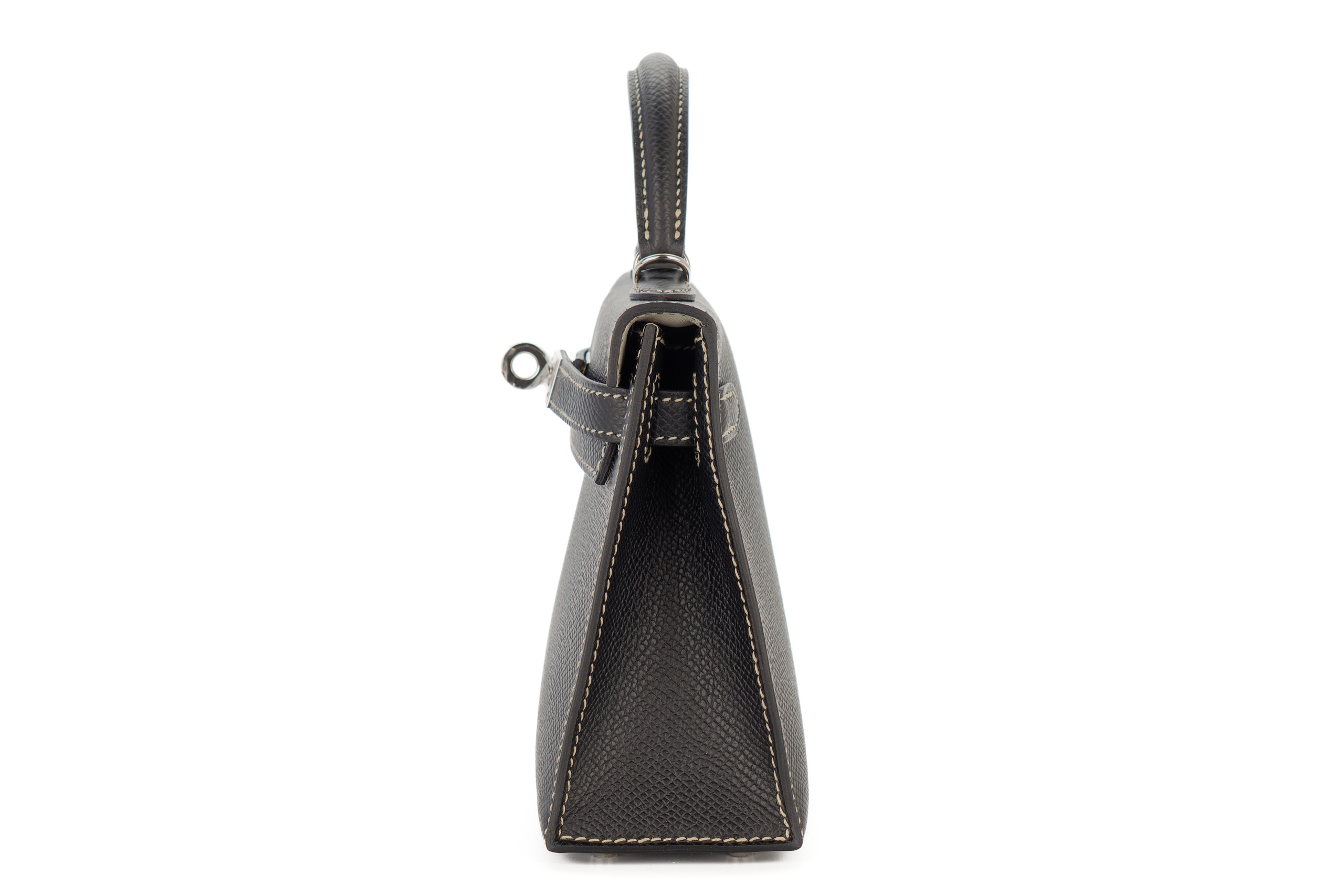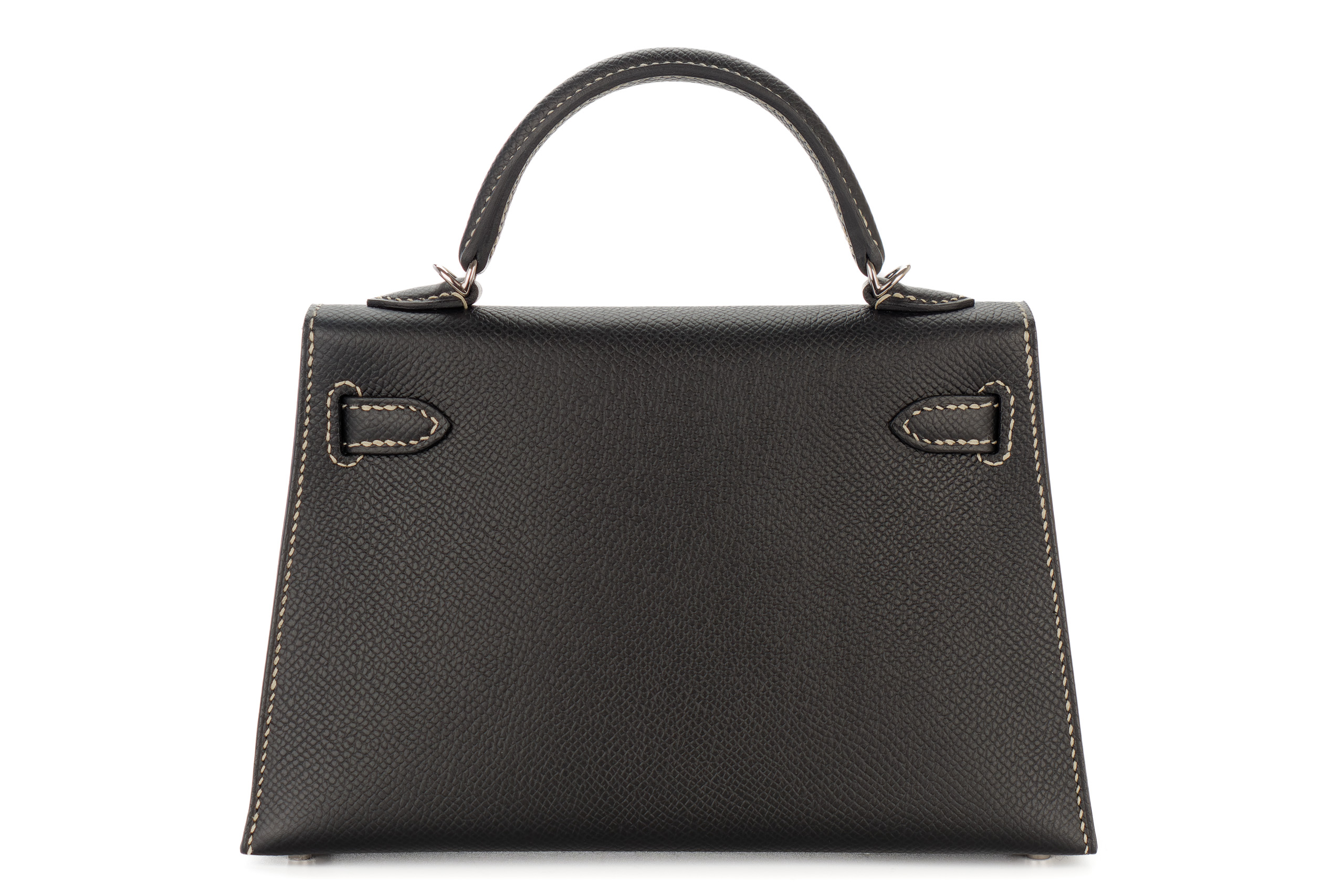 Hermès Mini Kelly Noir / Black / Gris Pale Epsom Palladium Hardware / W Stamp 2024, Brand New
