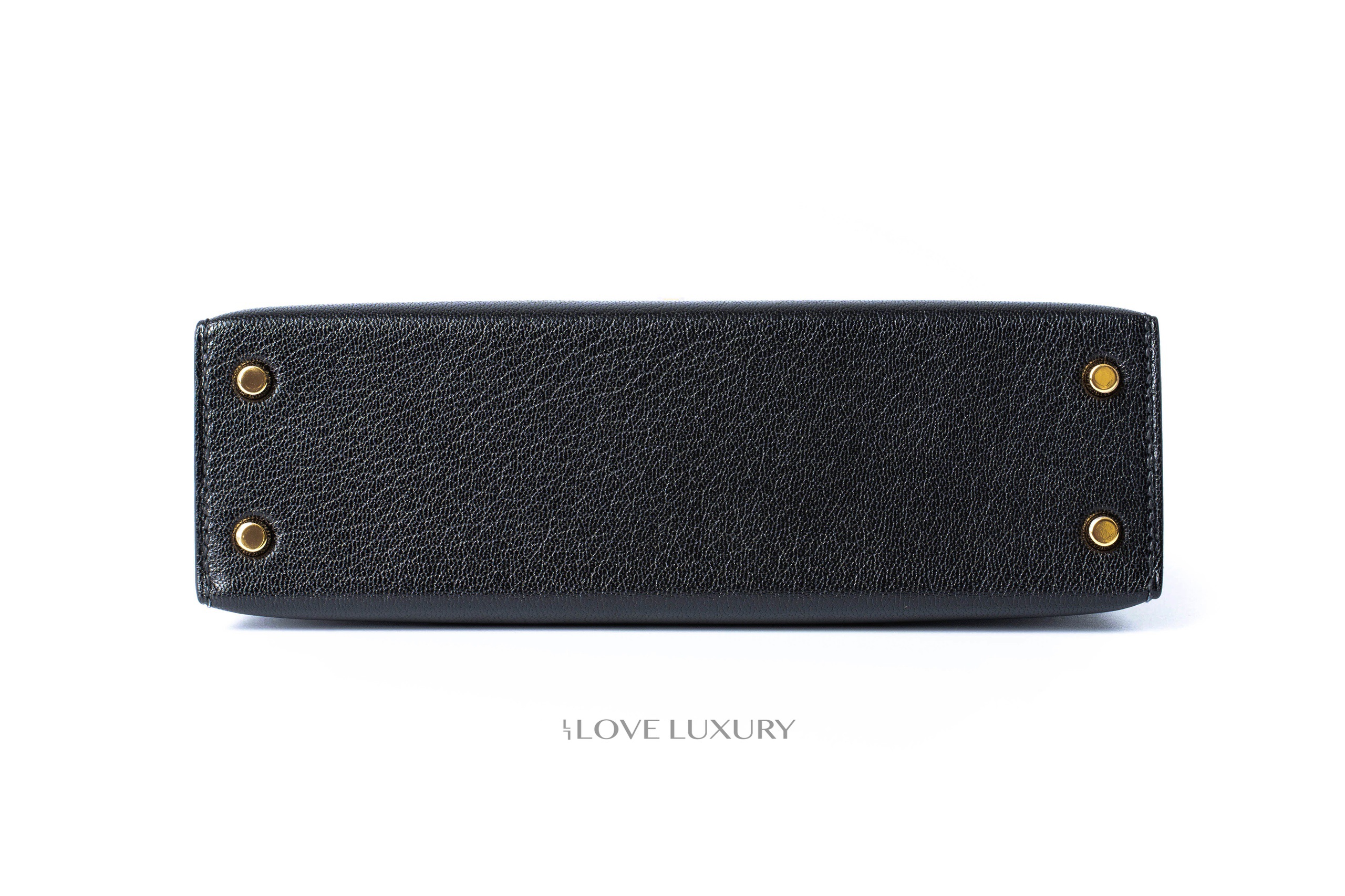 This Mini Kelly ii is one of the most sought-after Kelly models from Hermès. Its compact design is easily carried from day to night by removing the shoulder strap to become an evening bag. This bag is made from Chamkila Chevre leather which is a shiny durable goat leather. The bag is finished with gold hardware making this Mini Kelly ii a classic colour combination and highly sought after.