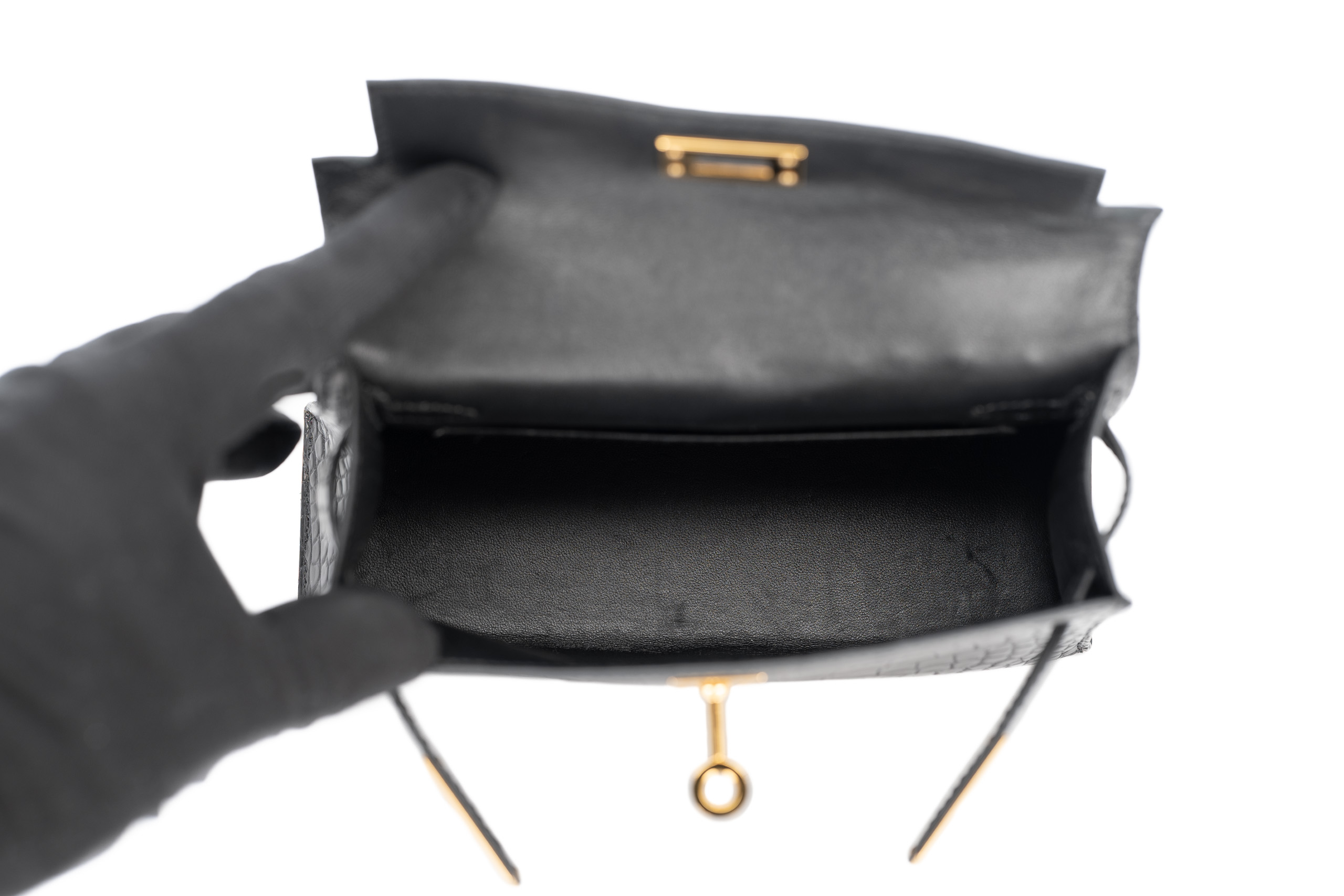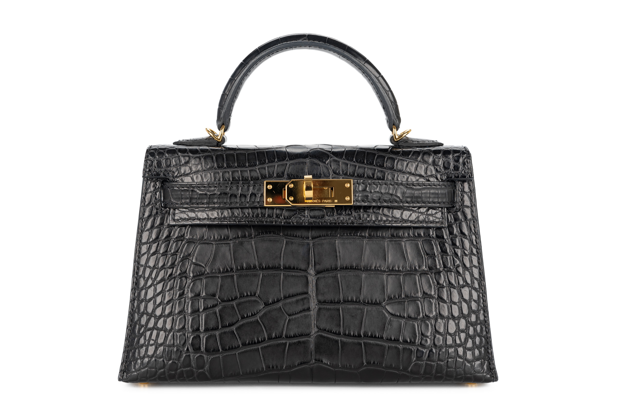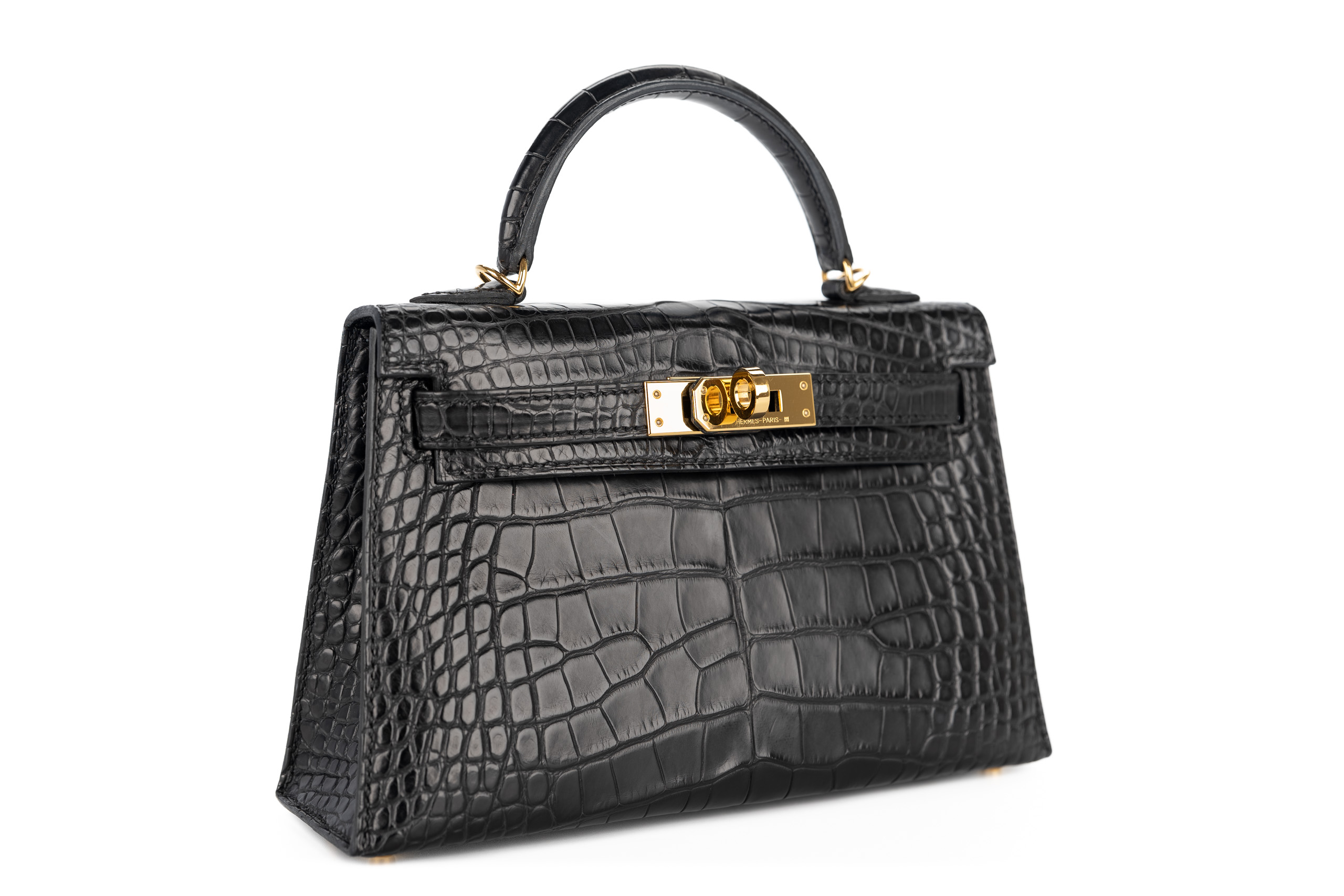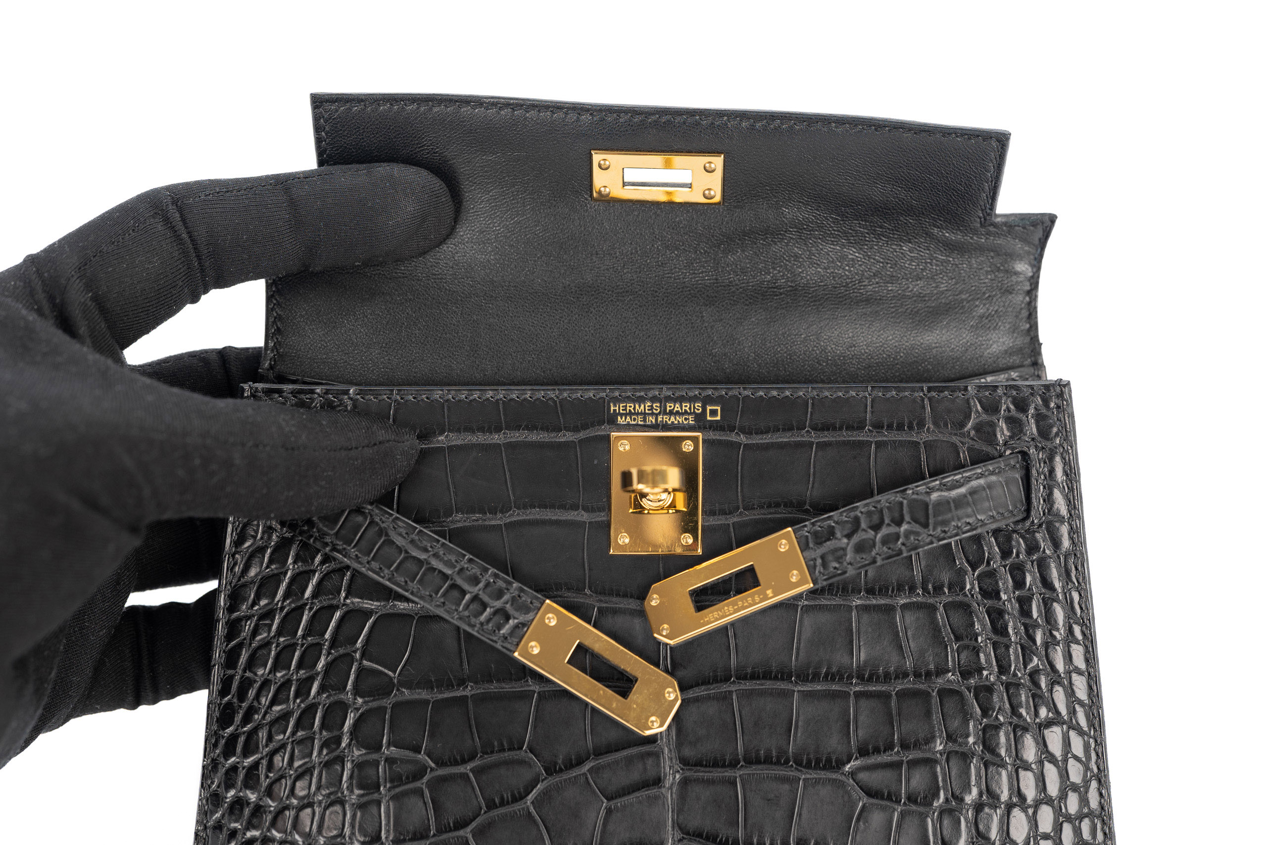 Hermès Mini Kelly Noir / Black Matte Alligator Gold Hardware / U Stamp 2022, Pre Loved