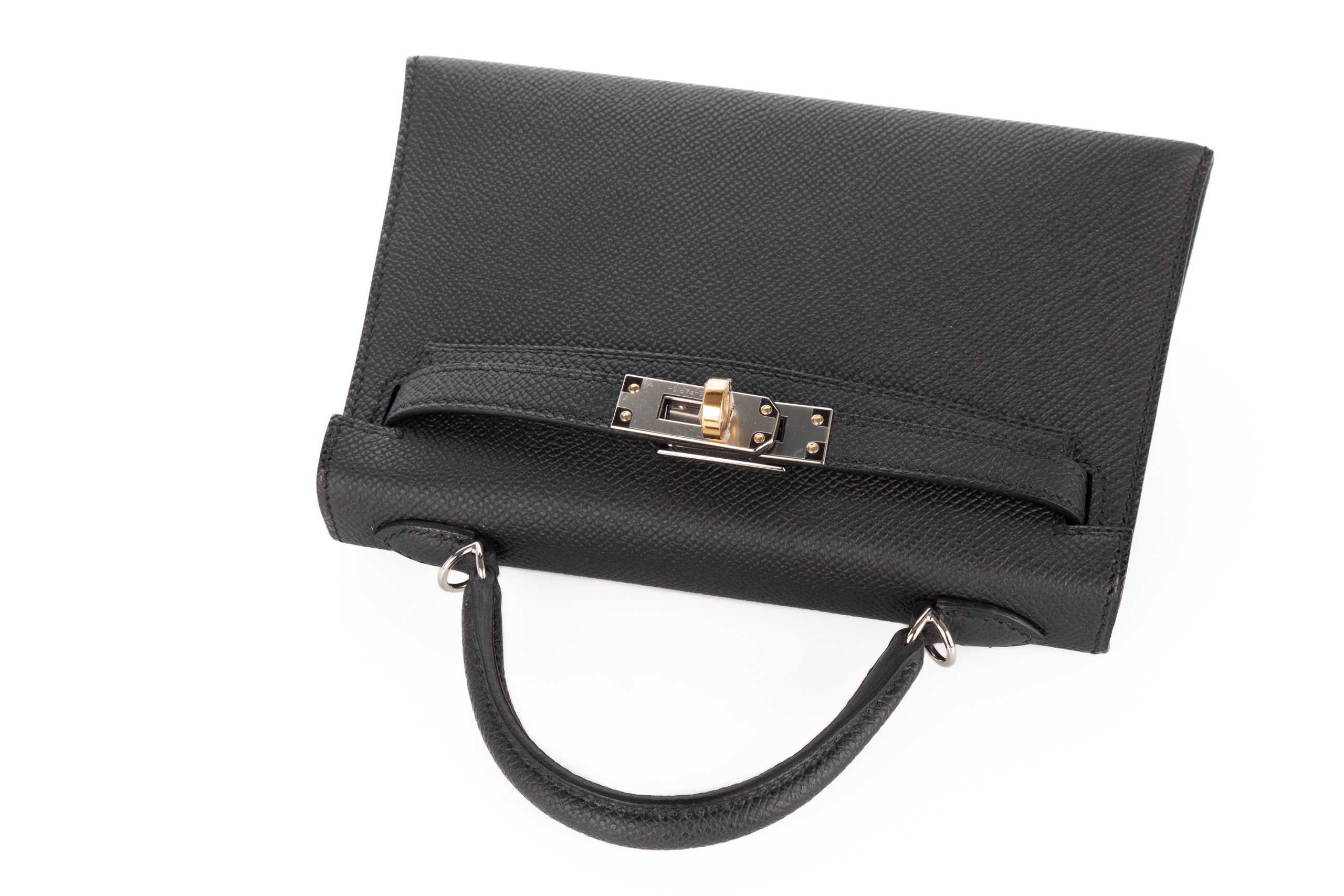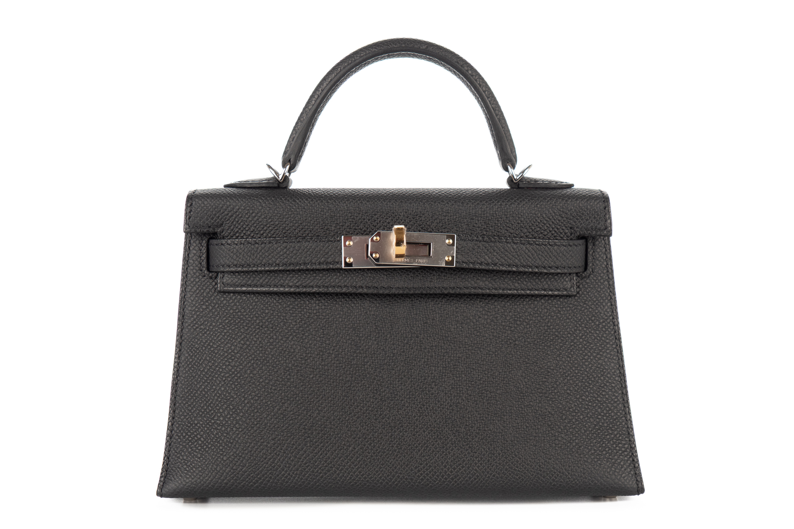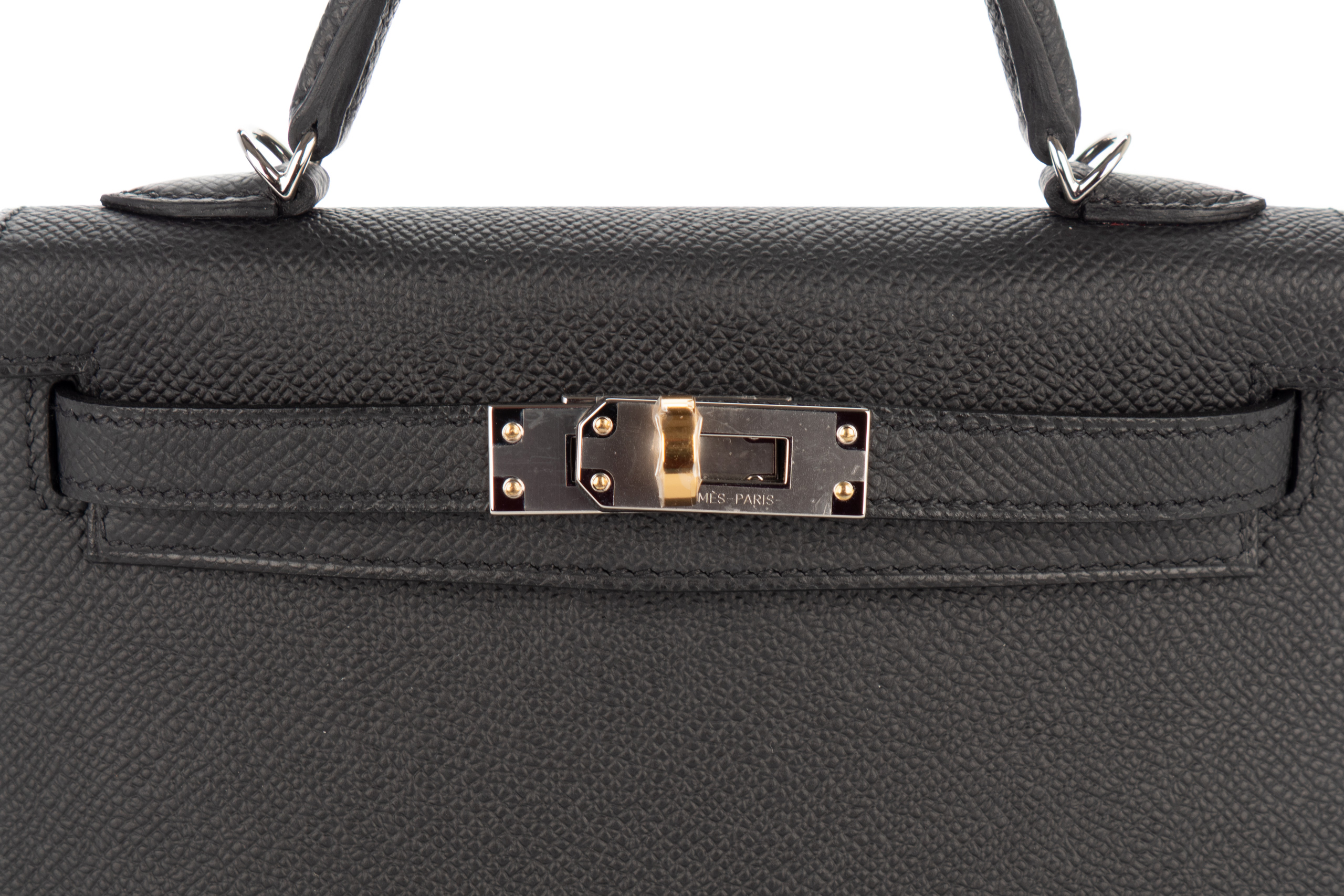 Hermès Mini Kelly Noir Epsom Electrum Hardware / K Stamp 2025, Brand New