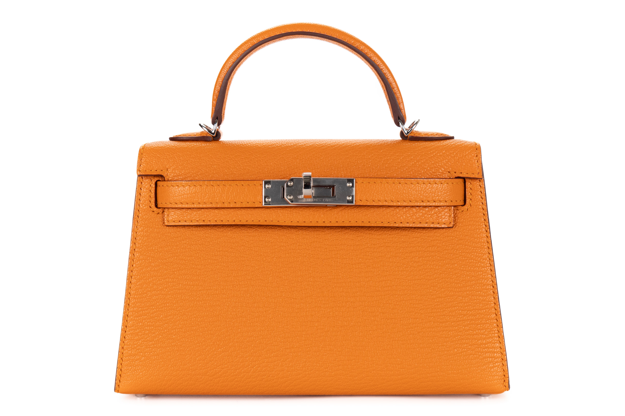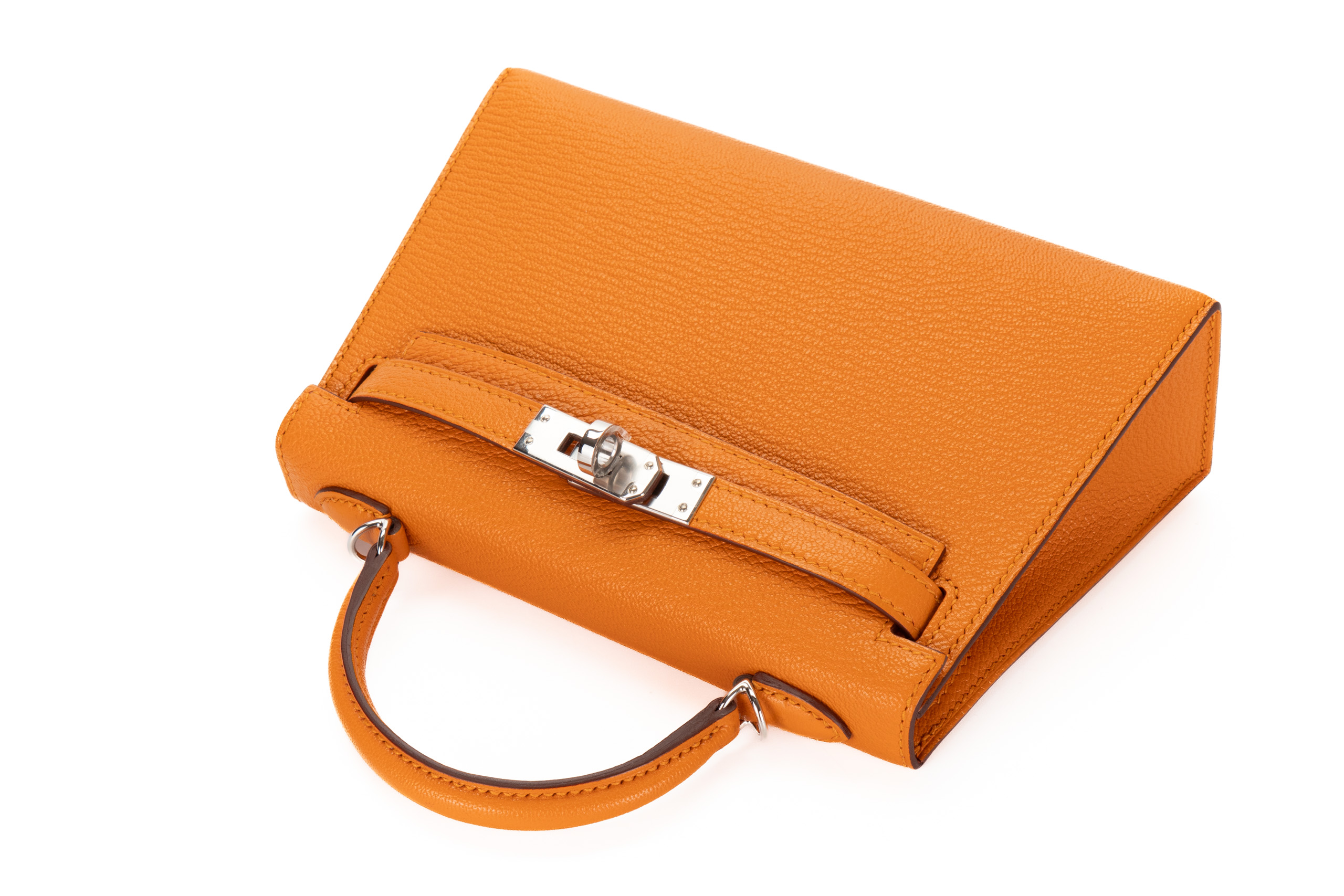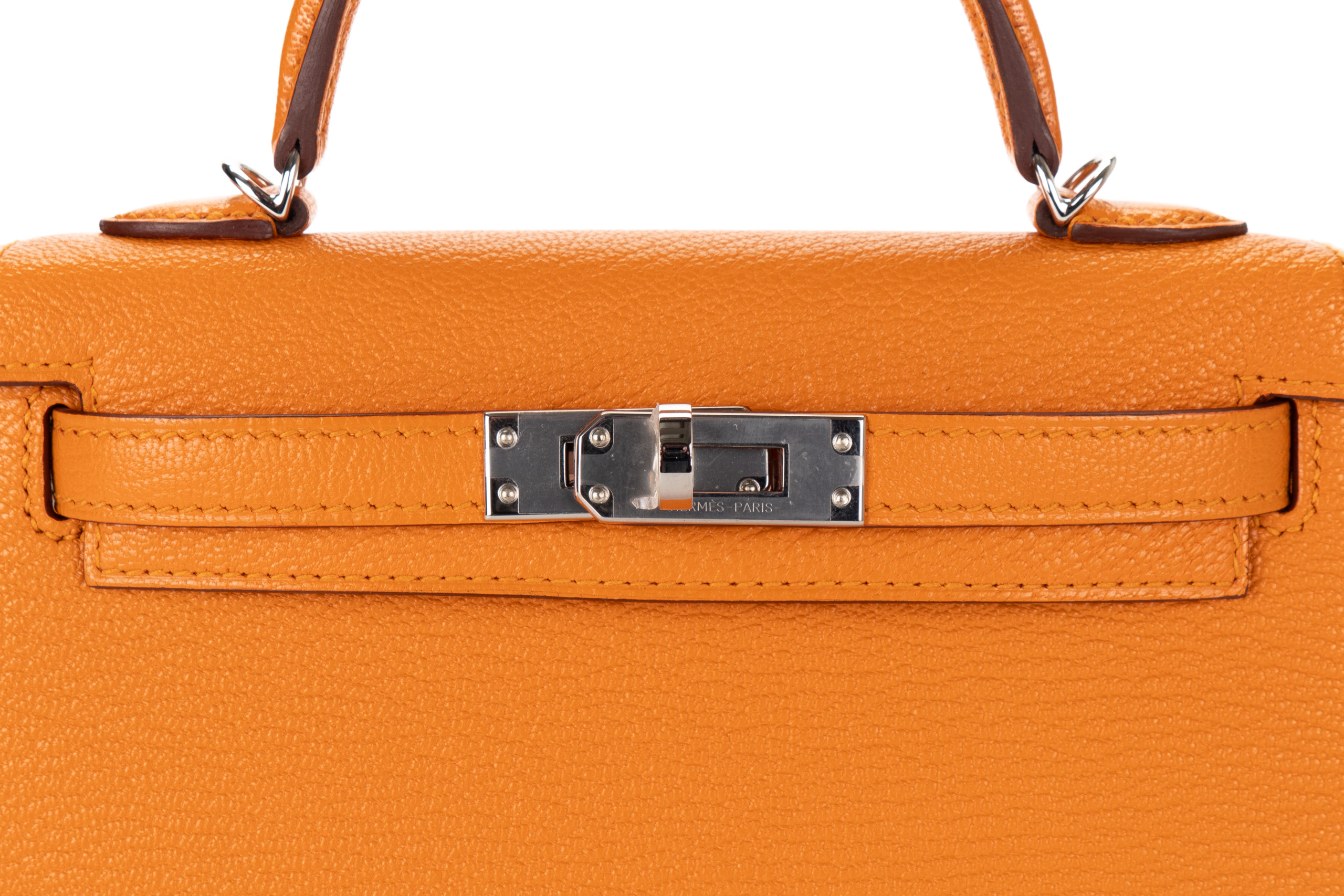 Hermès Mini Kelly Orange Chevre Palladium Hardware / Stamp B 2024 Box Fresh