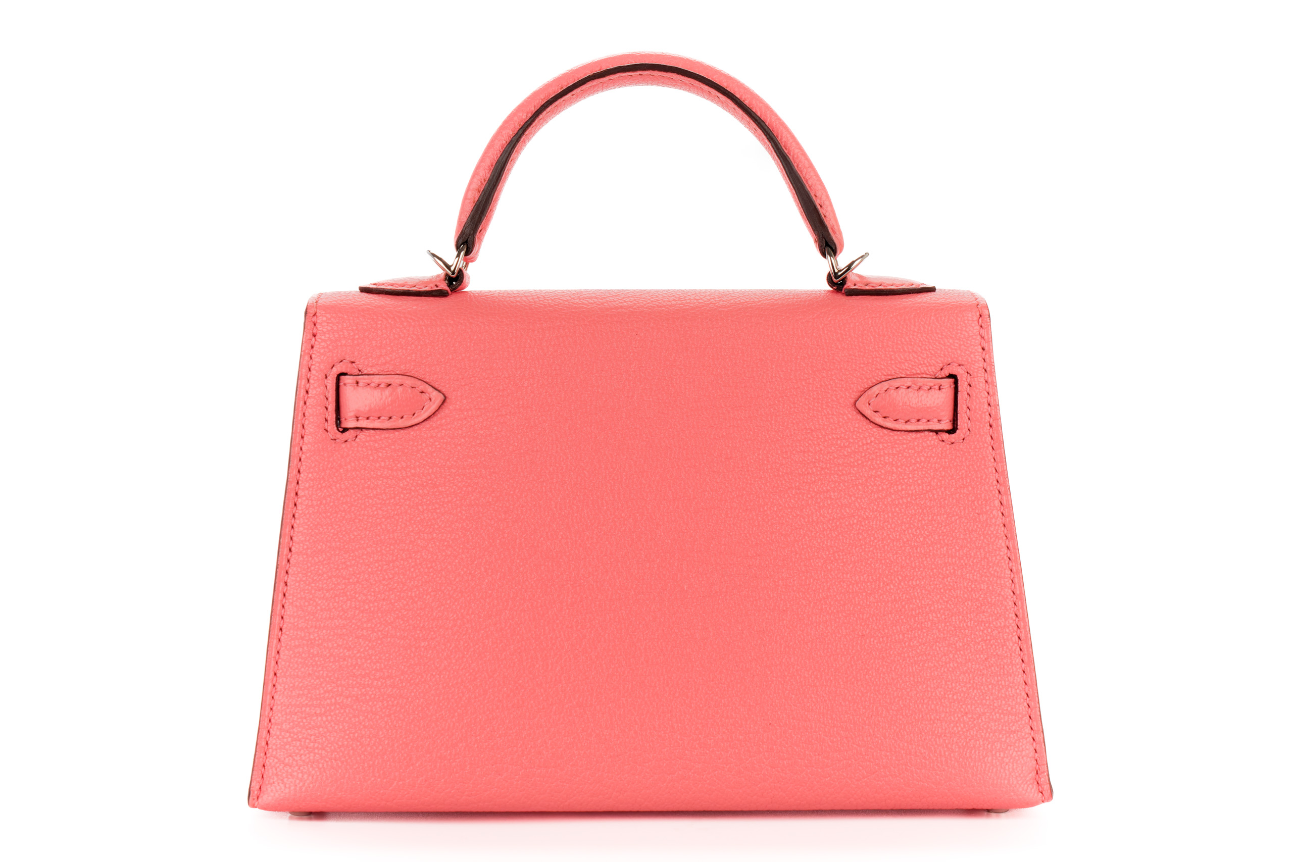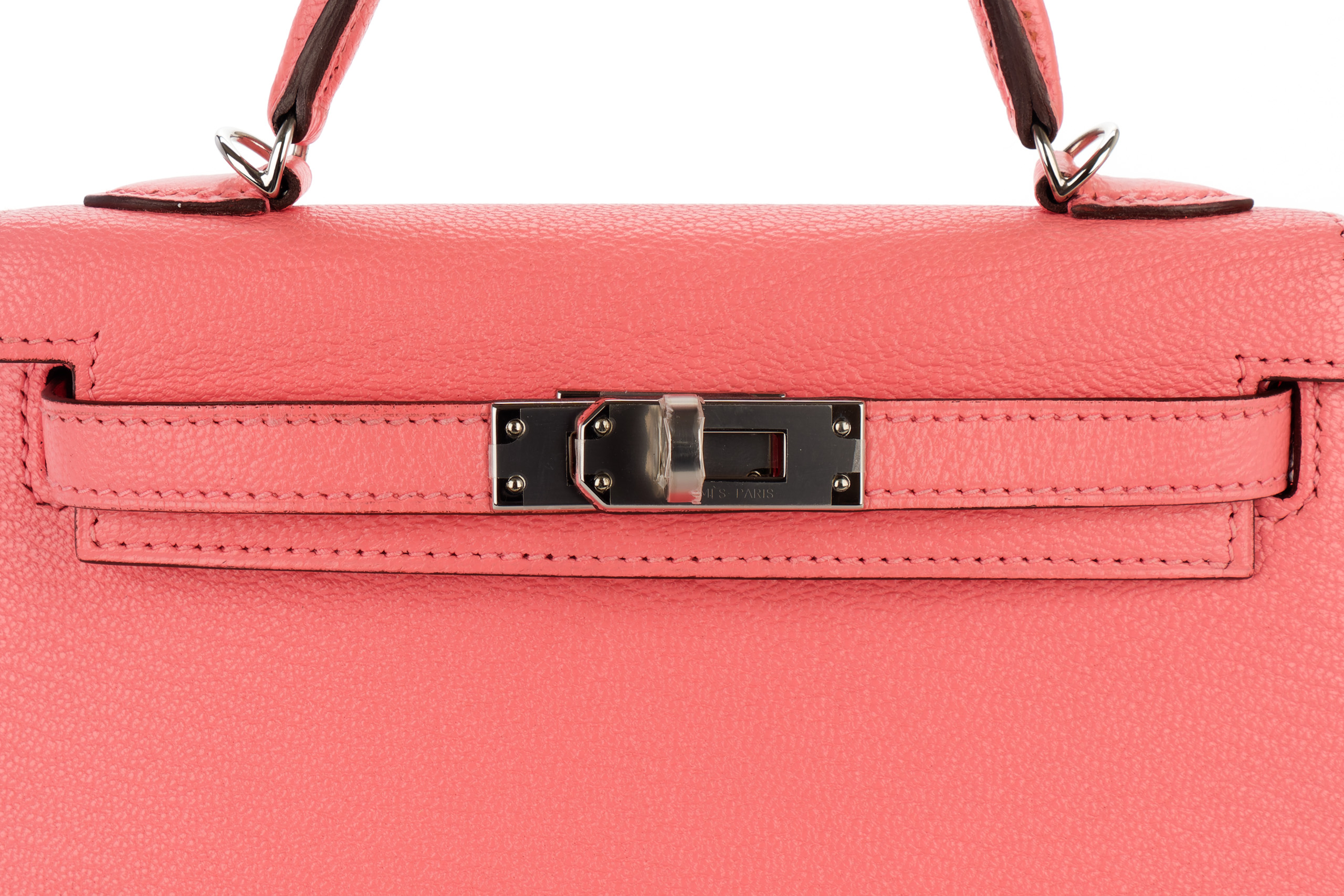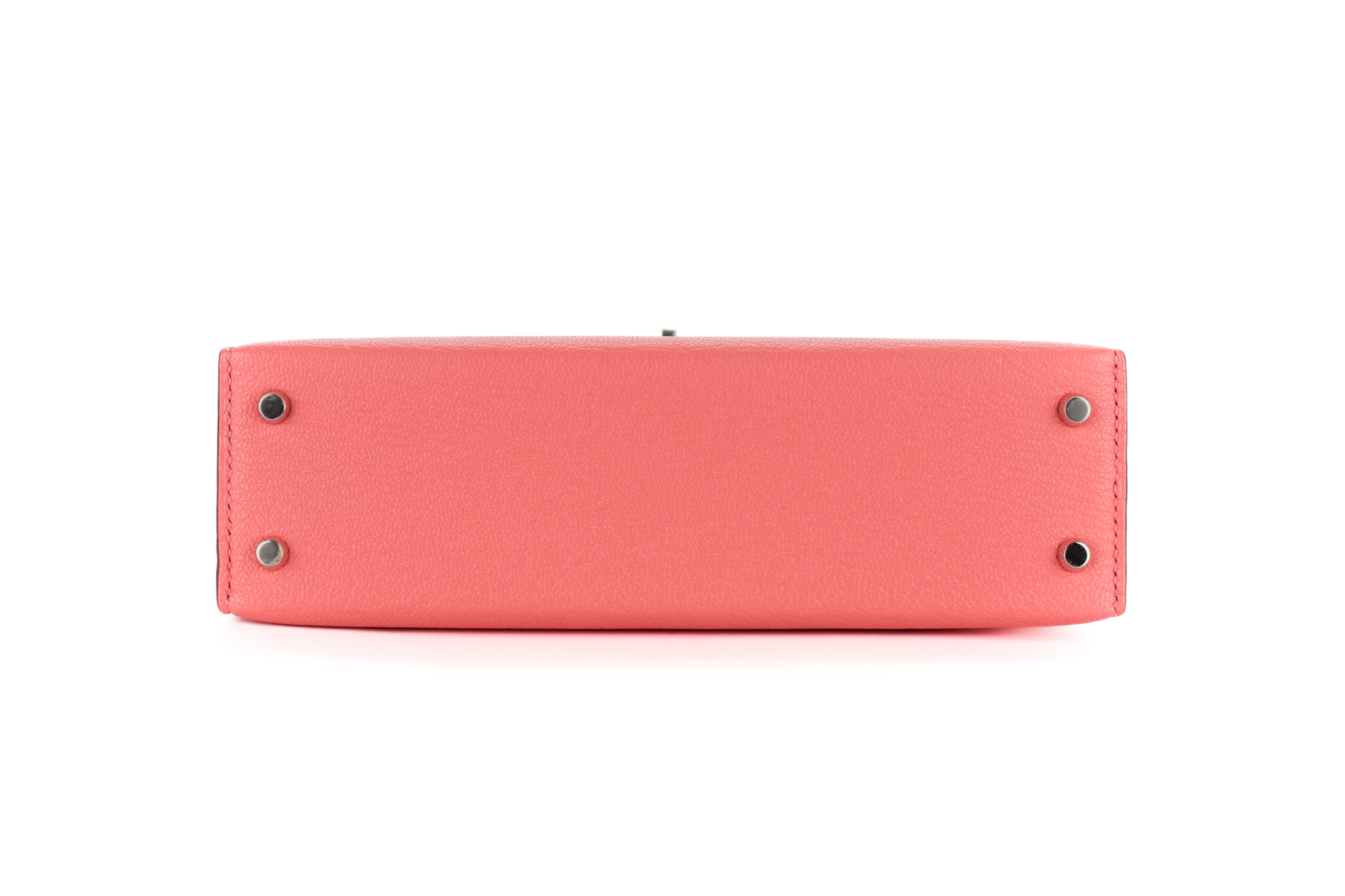 Hermès Mini Kelly Rose D’Été Chevre Palladium Hardware / D Stamp 2020, Brand New