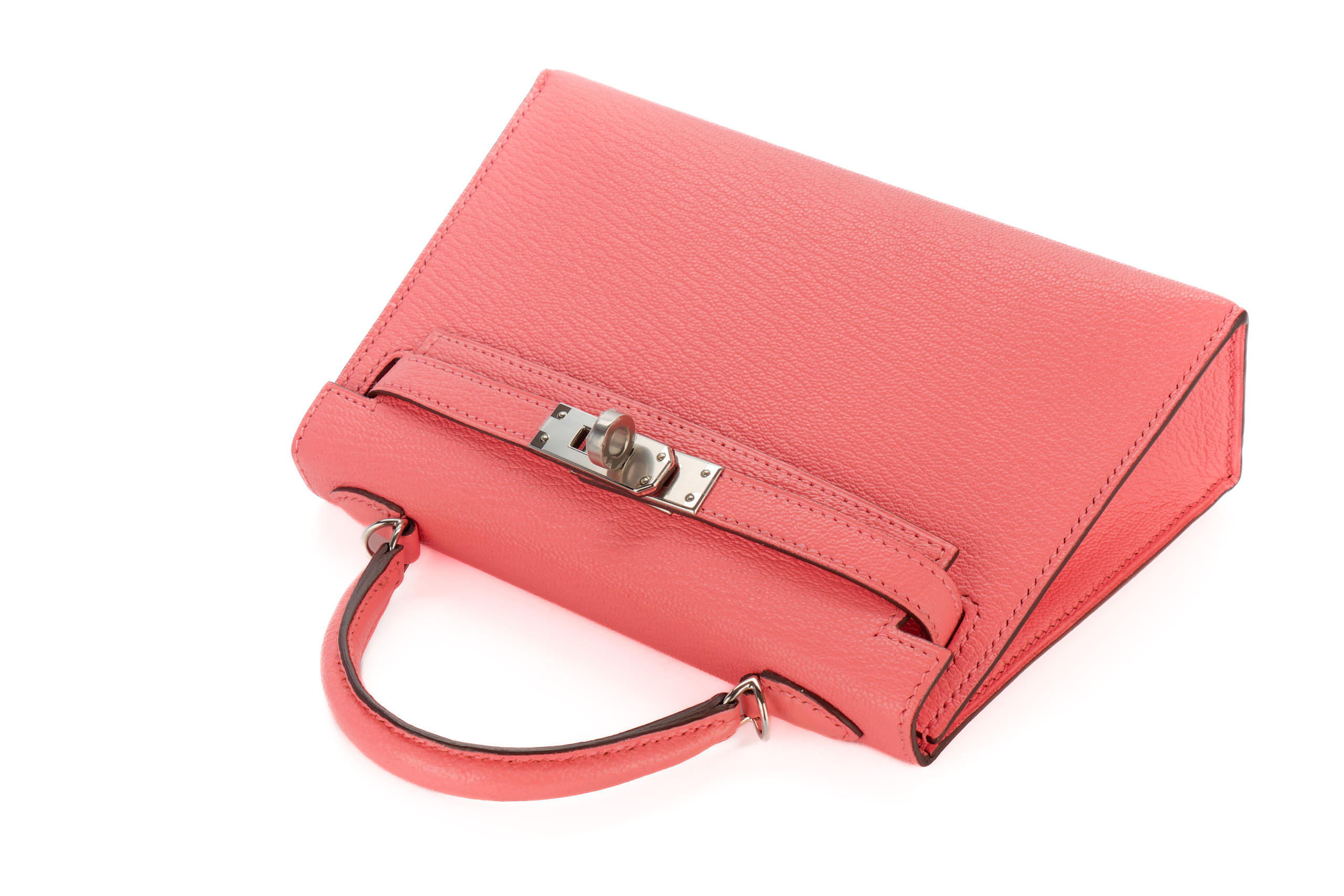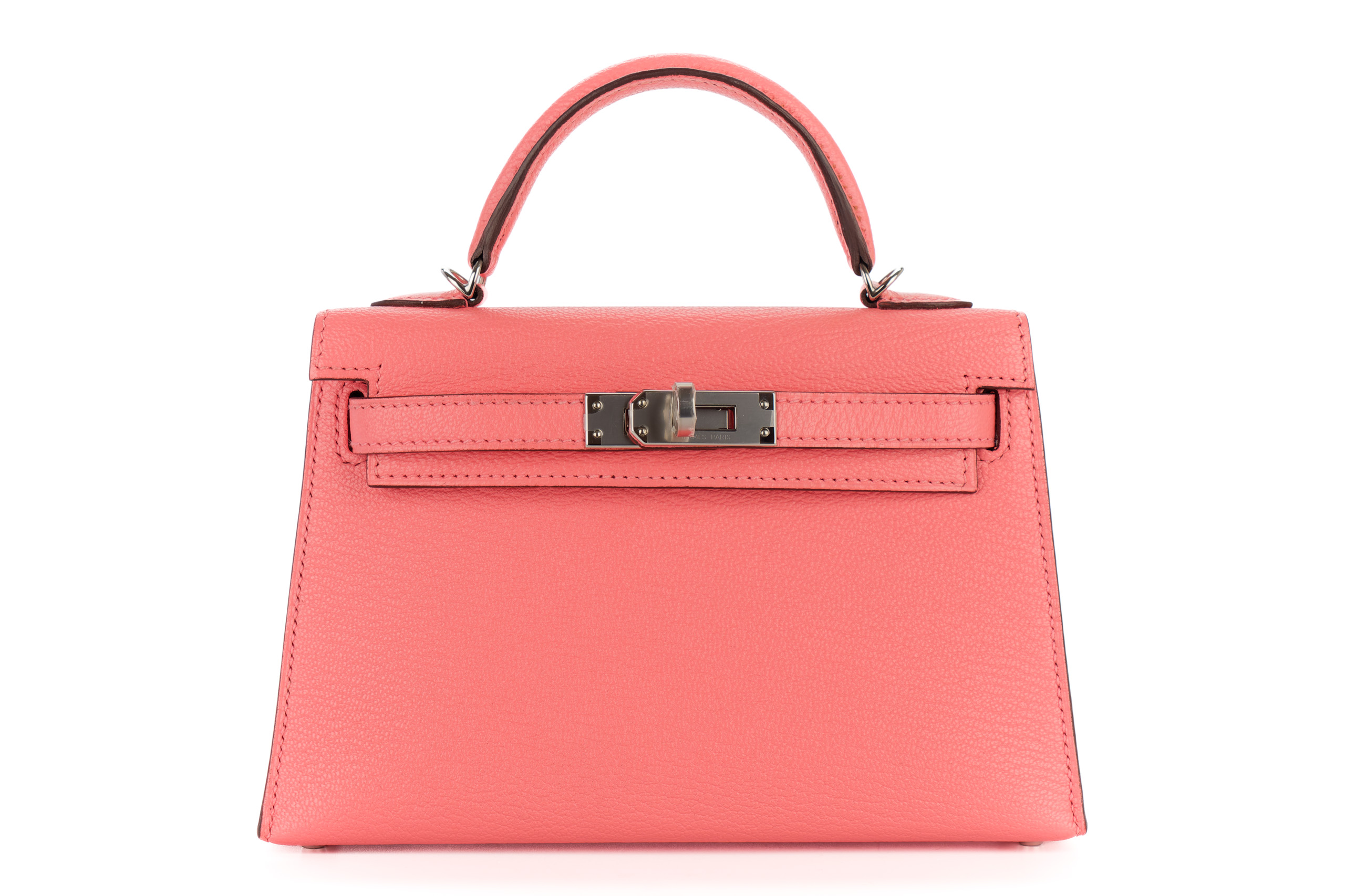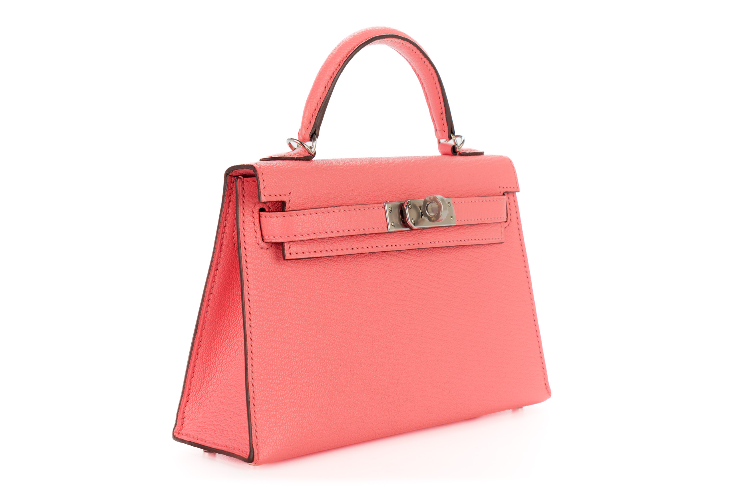 Hermès Mini Kelly Rose D’Été Chevre Palladium Hardware / D Stamp 2020, Brand New
