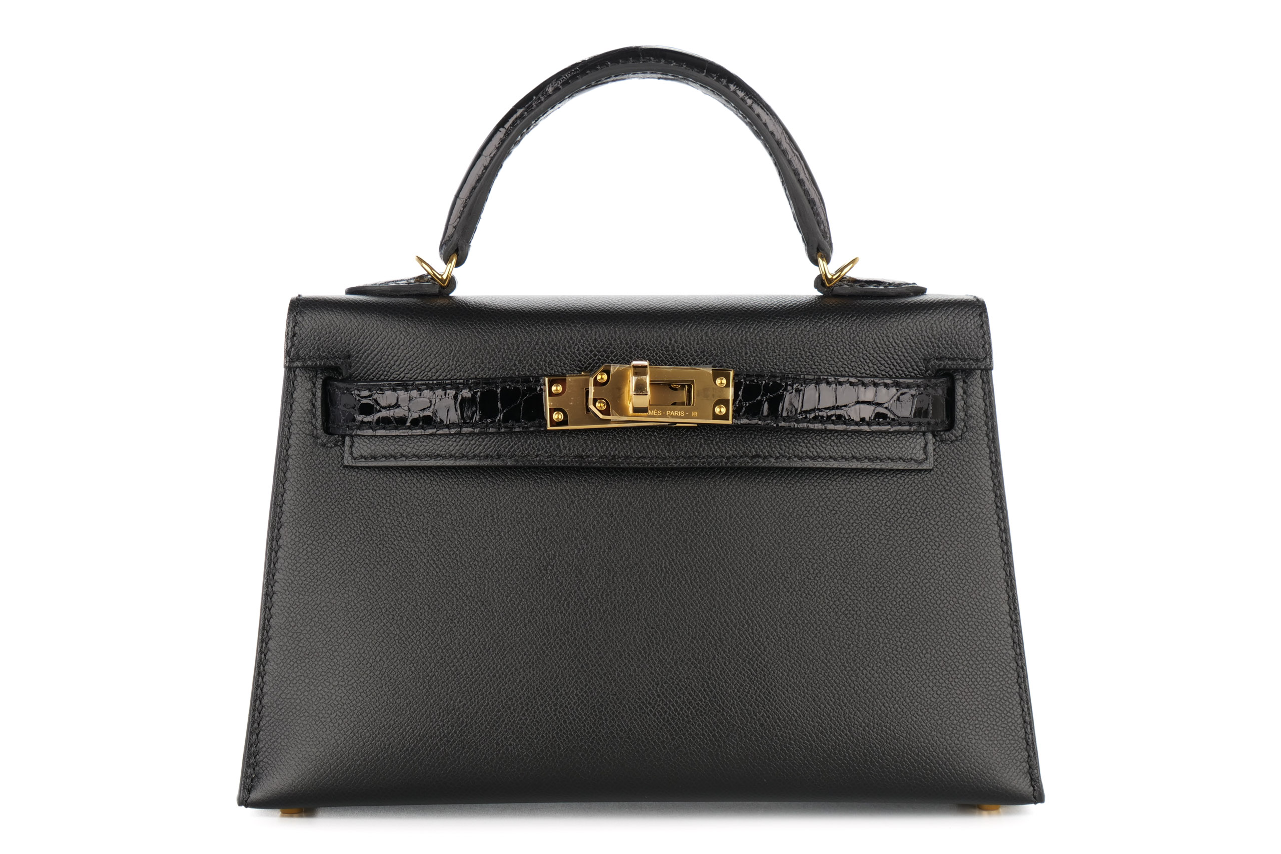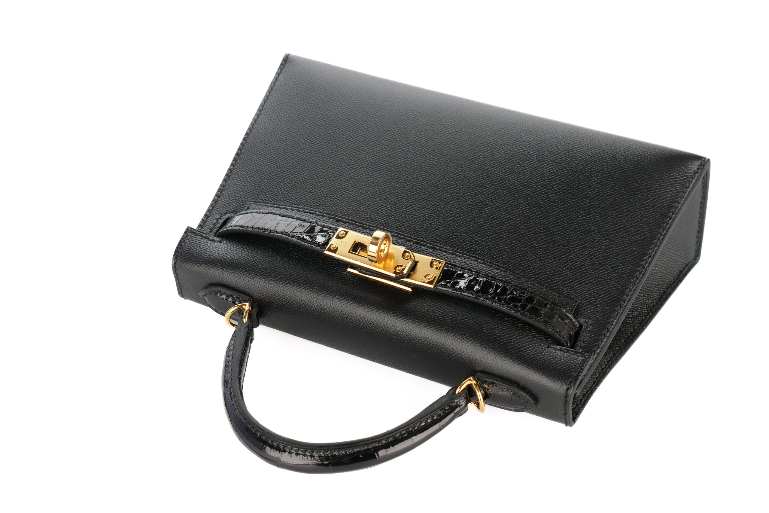 Hermès Mini Kelly Touch Noir – Black Madame / Shiny Alligator Gold Hardware