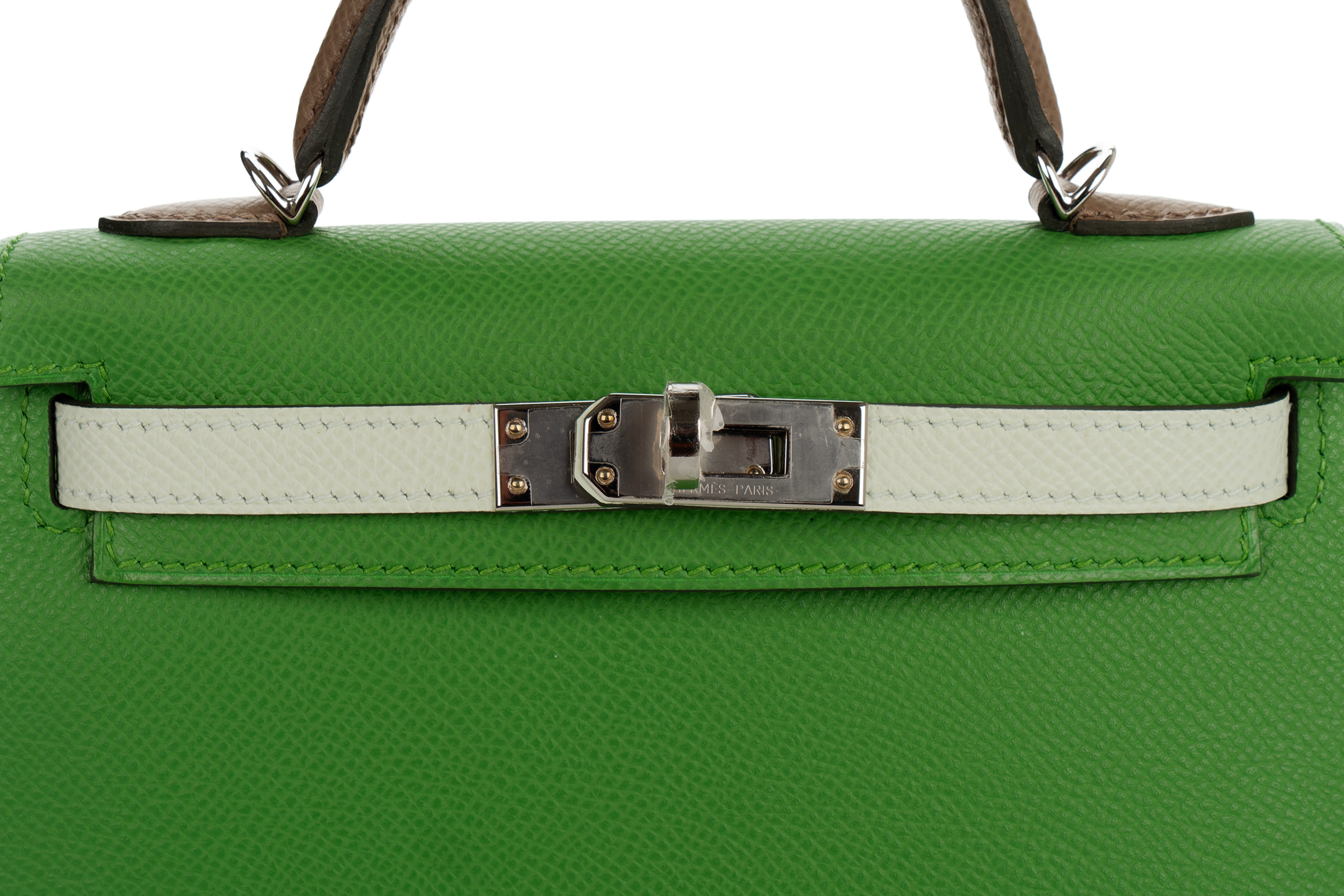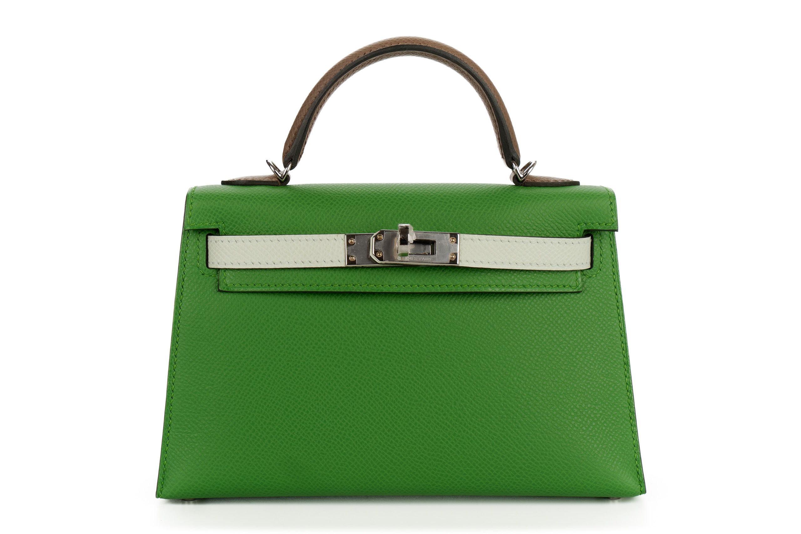 Hermès Mini Kelly Tri Color Vert Yucca / Vert Fizz / Etoupe Epsom Palladium Hardware / B stamp 2023 Box Fresh