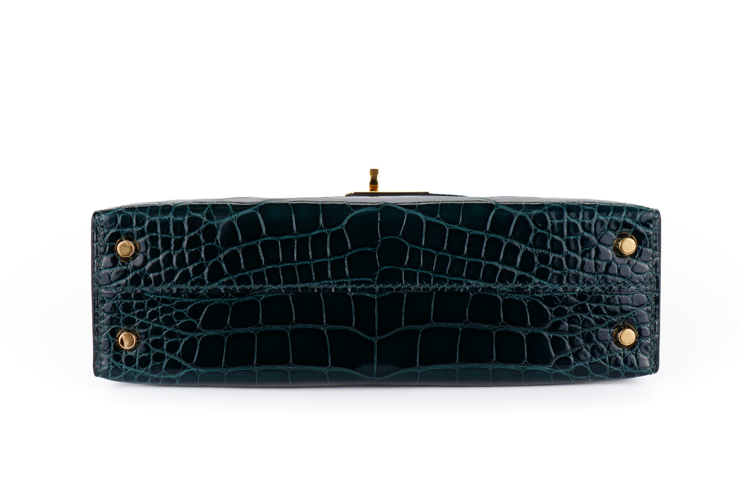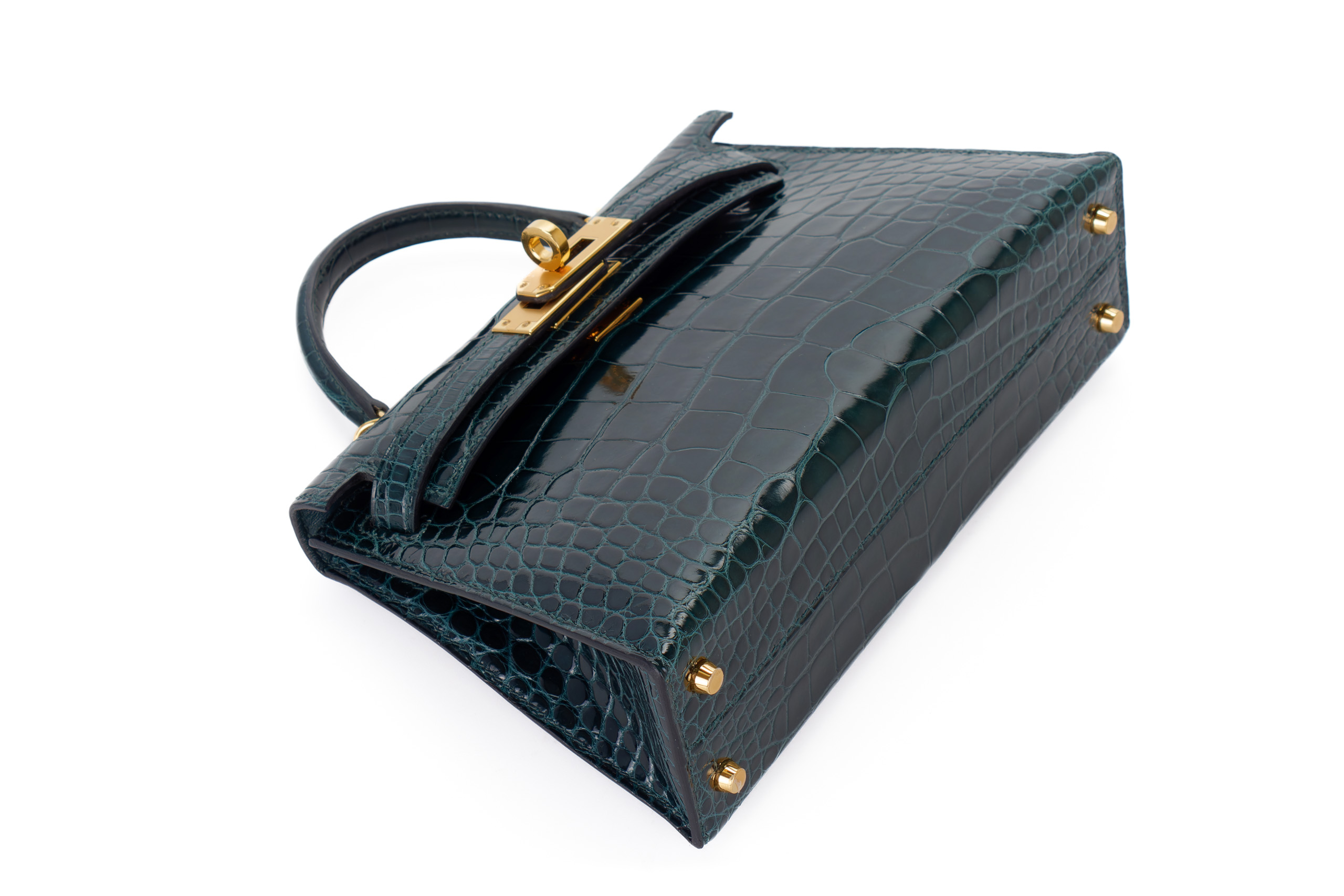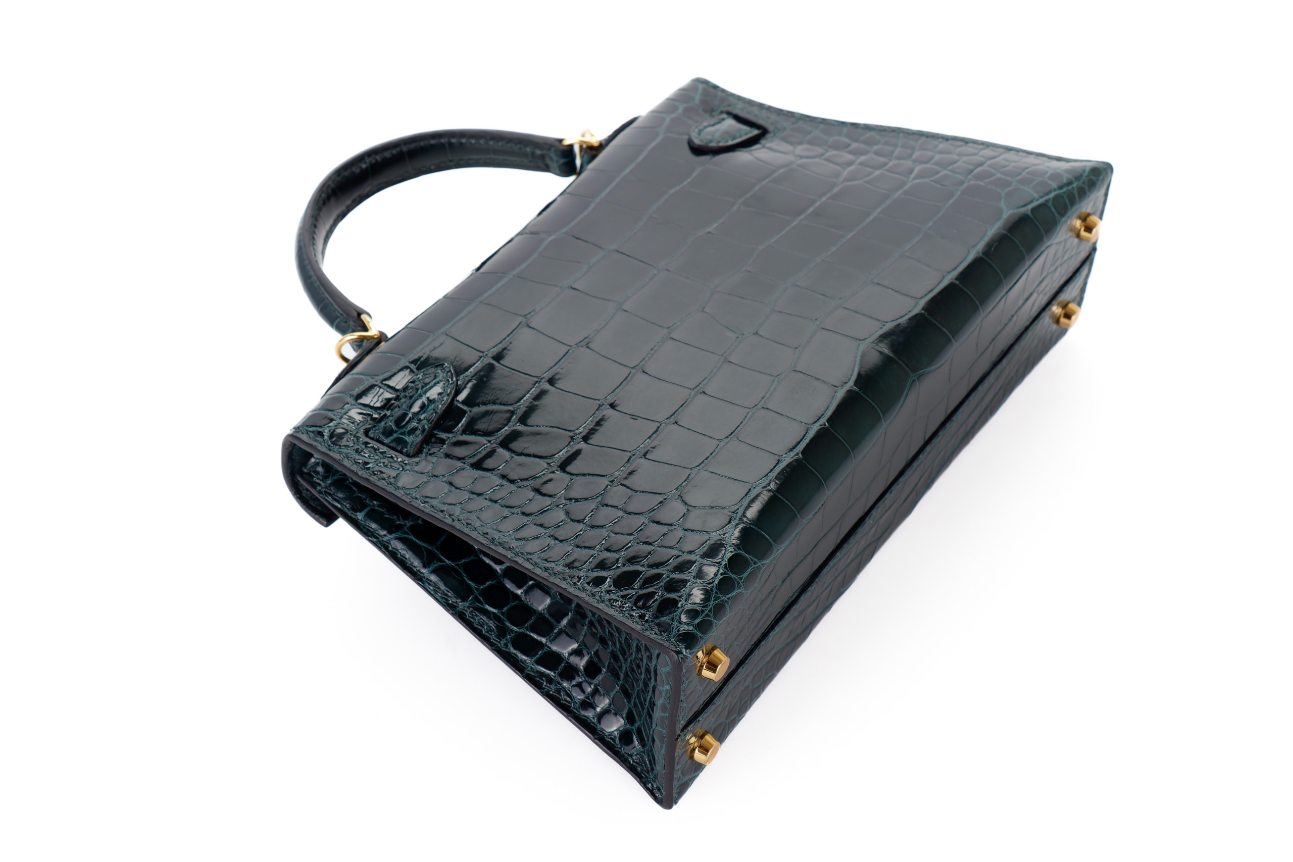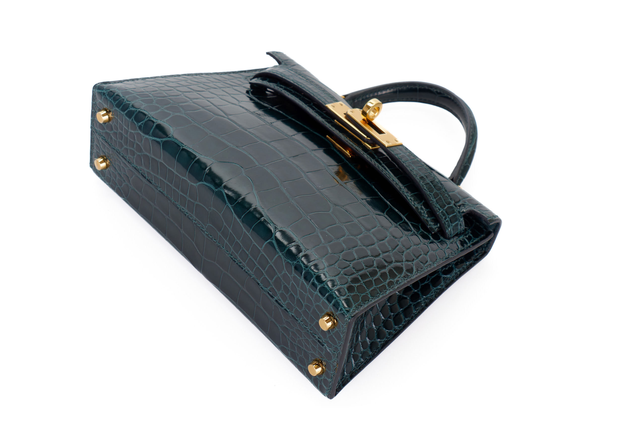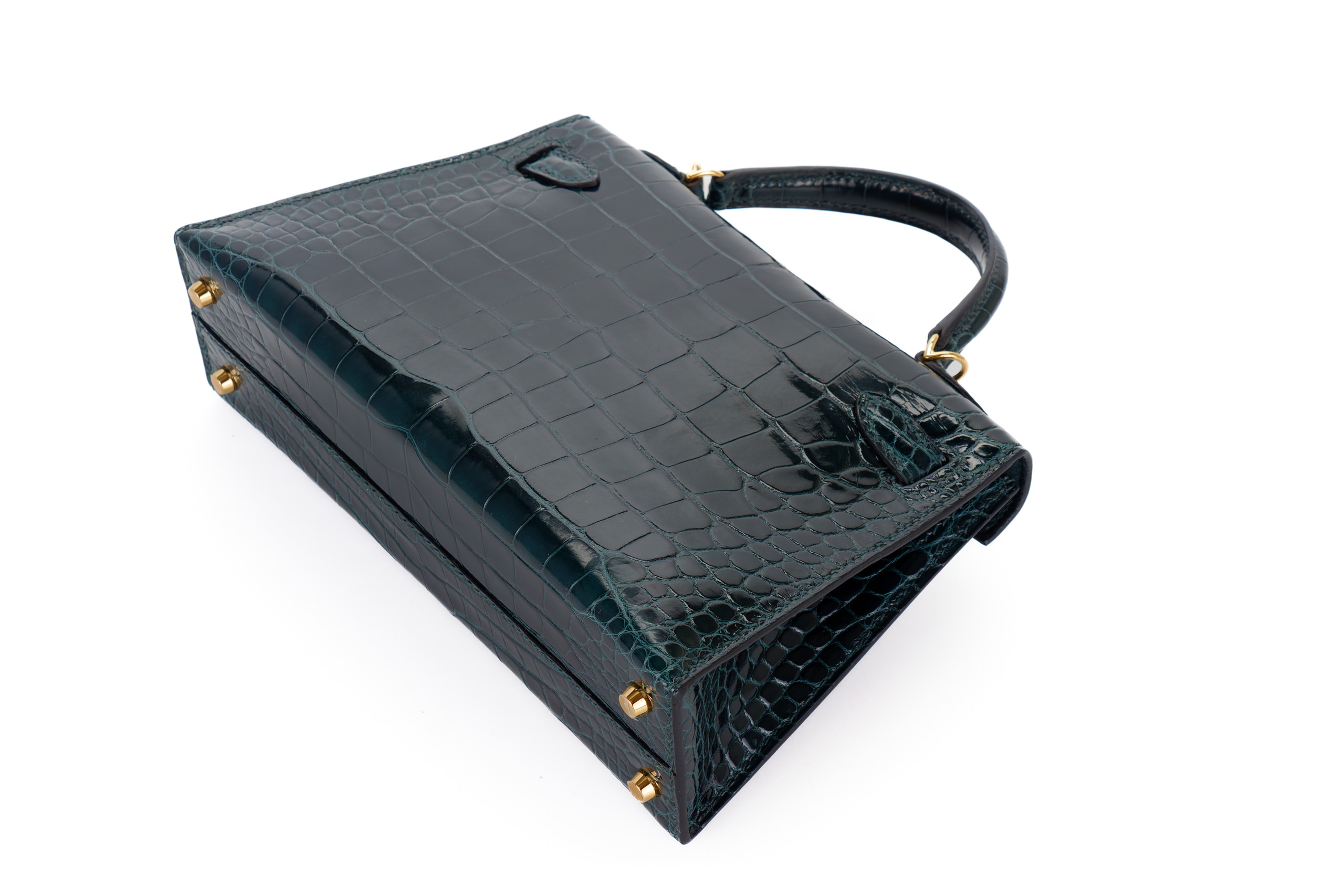 Hermès Mini Kelly Vert Cypres Shiny Alligator Gold Hardware / Excellent Pre-Loved condition D stamp 2019