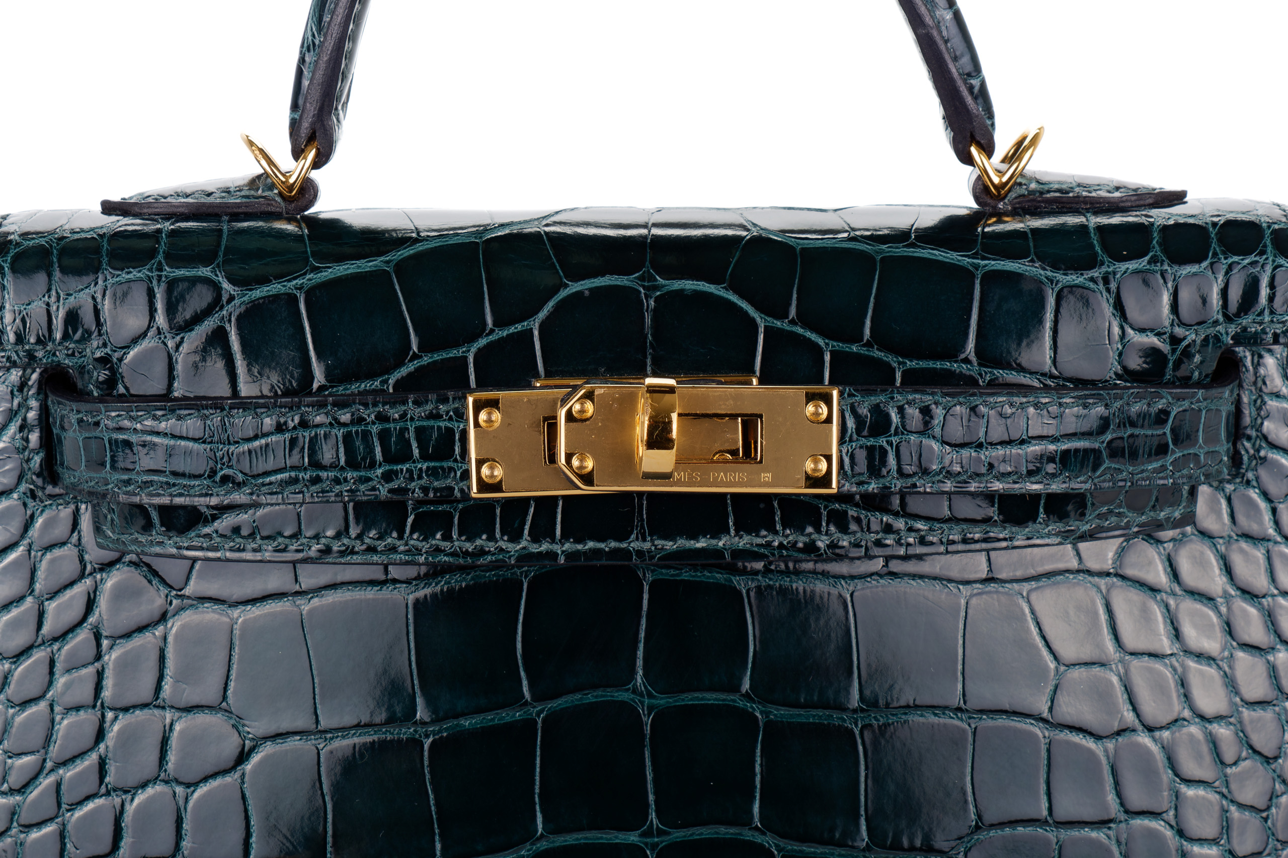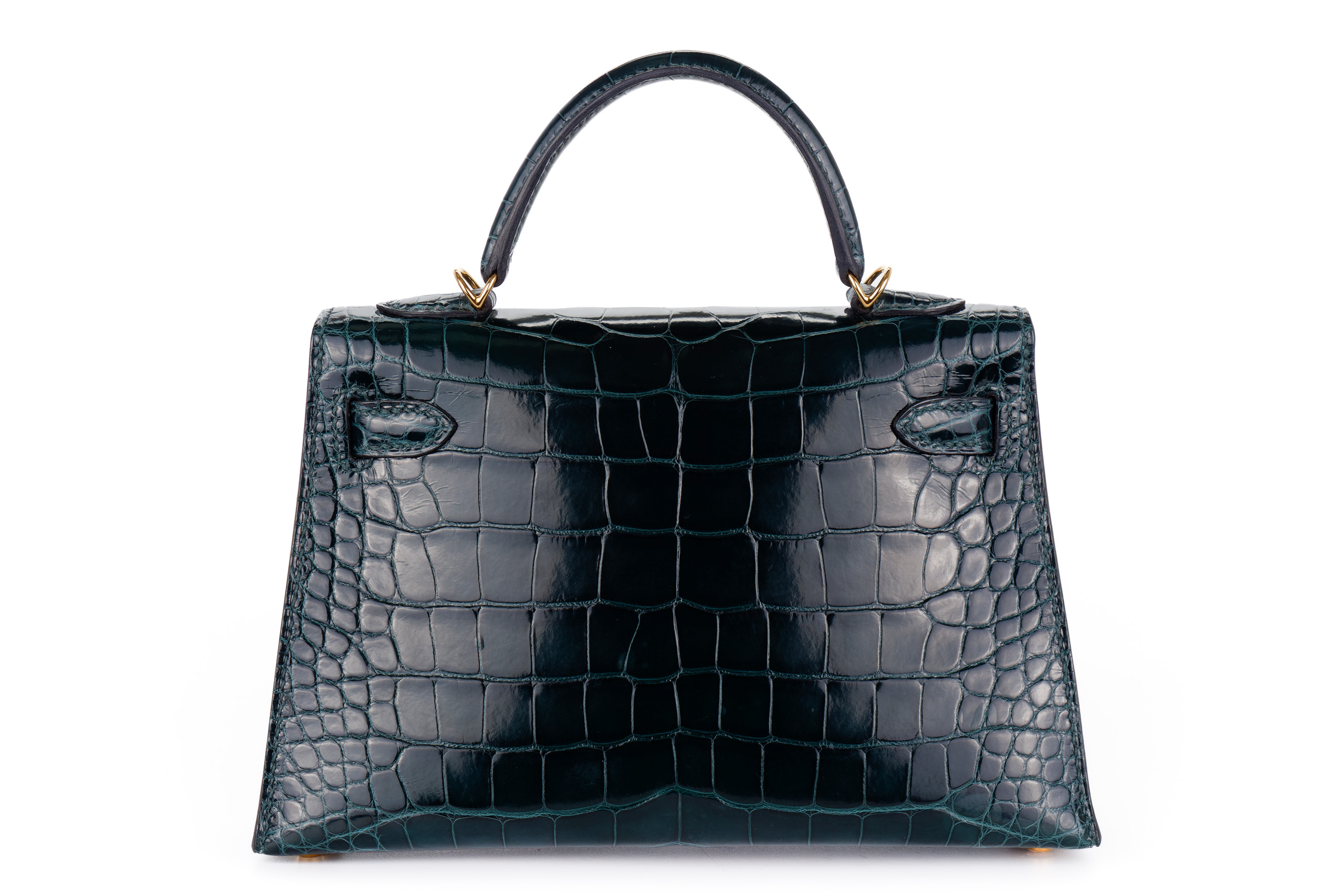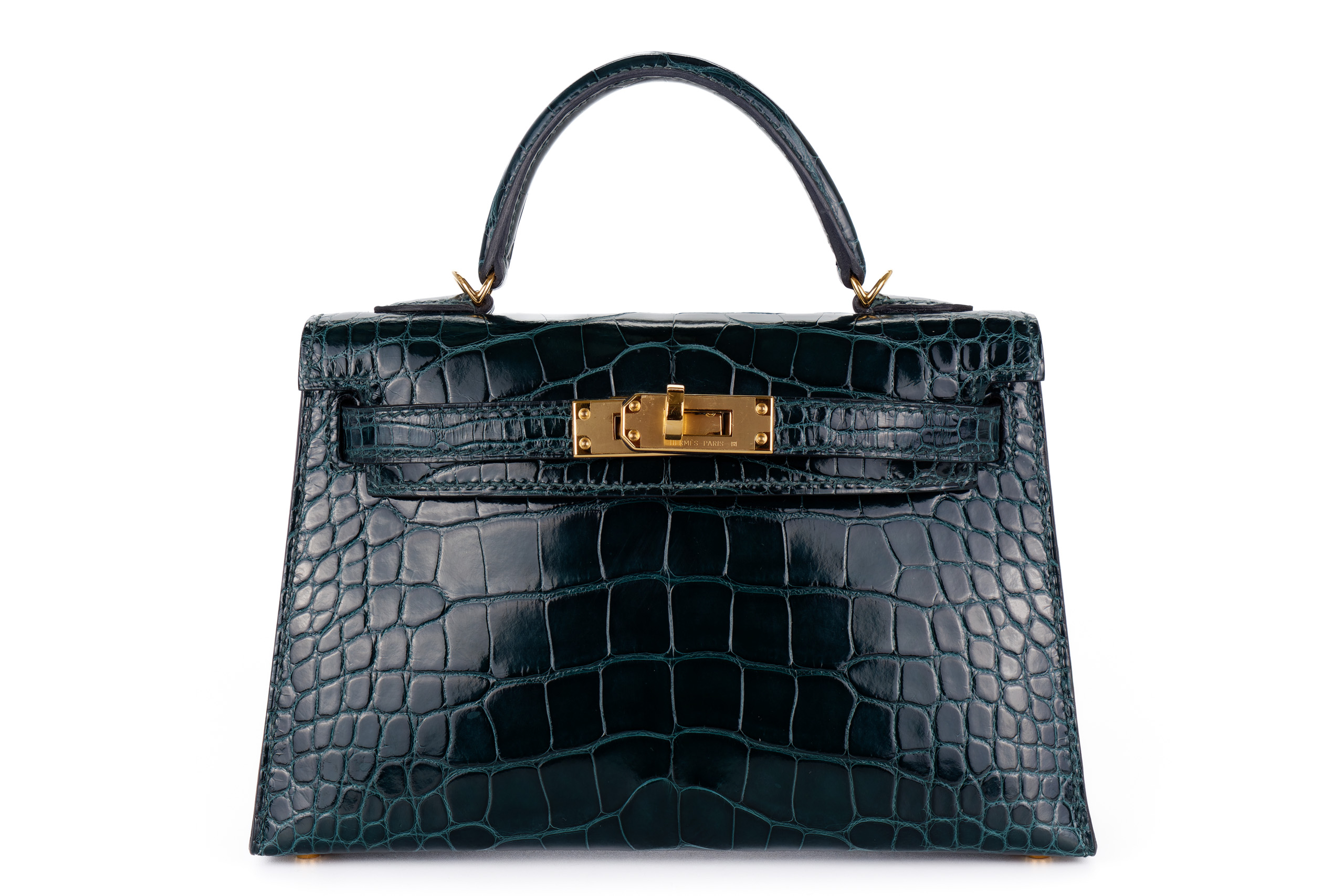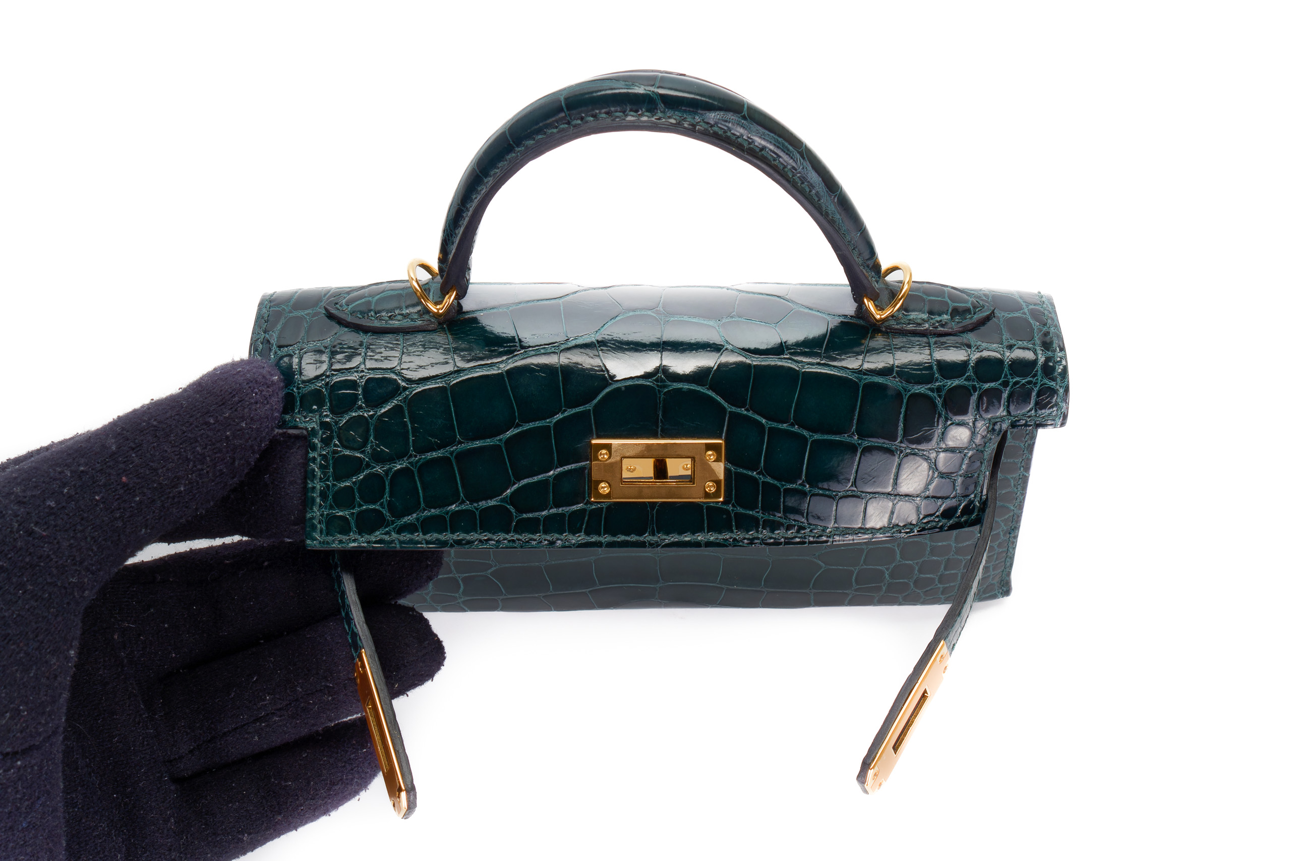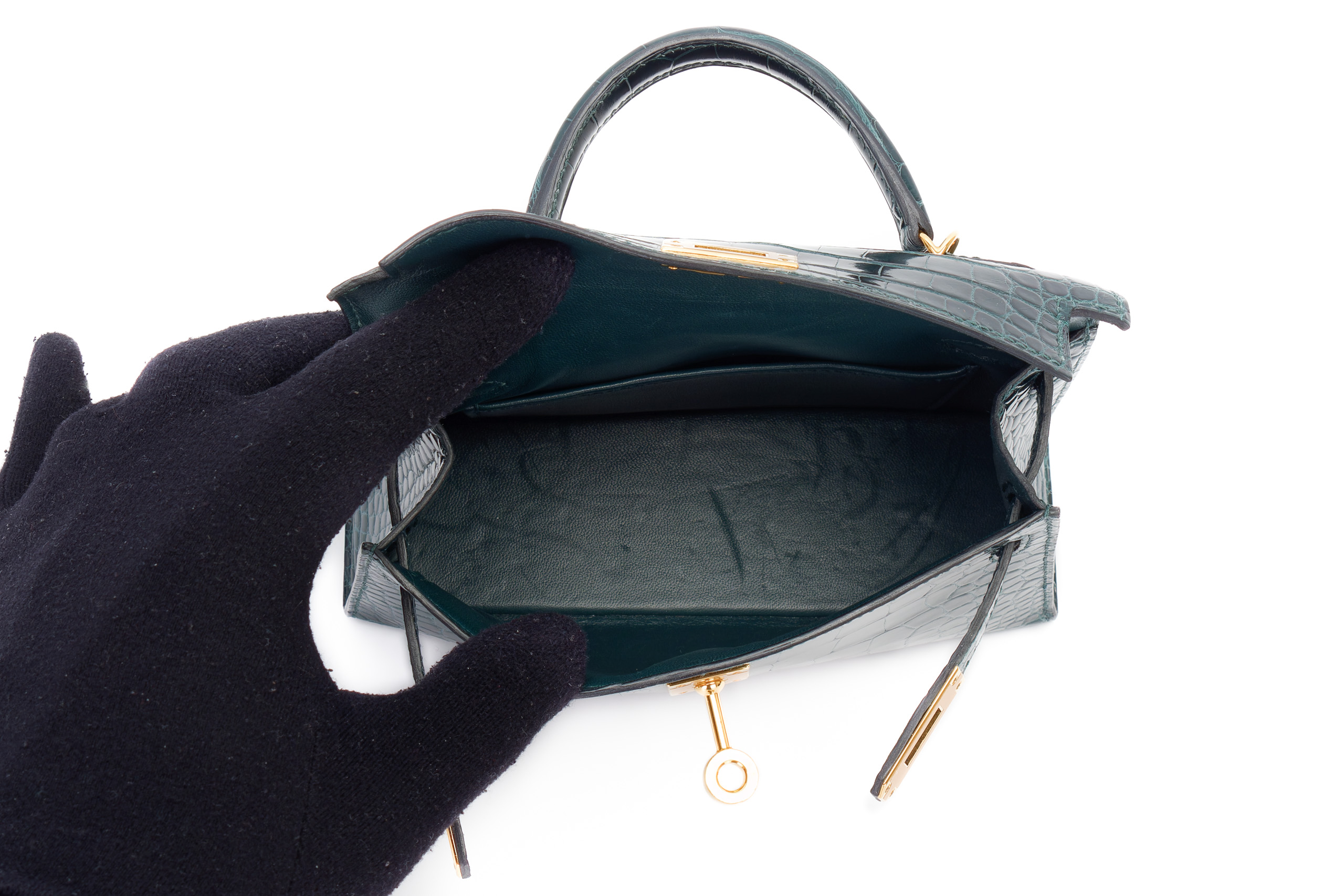 Hermès Mini Kelly Vert Cypres Shiny Alligator Gold Hardware / Excellent Pre-Loved condition D stamp 2019
