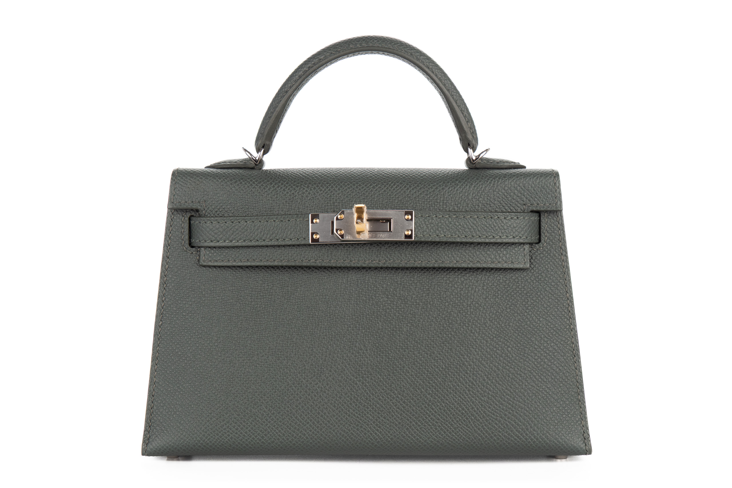 Hermès Mini Kelly Vert Mangrove Epsom Electrum Hardware / K Stamp 2025, Brand New