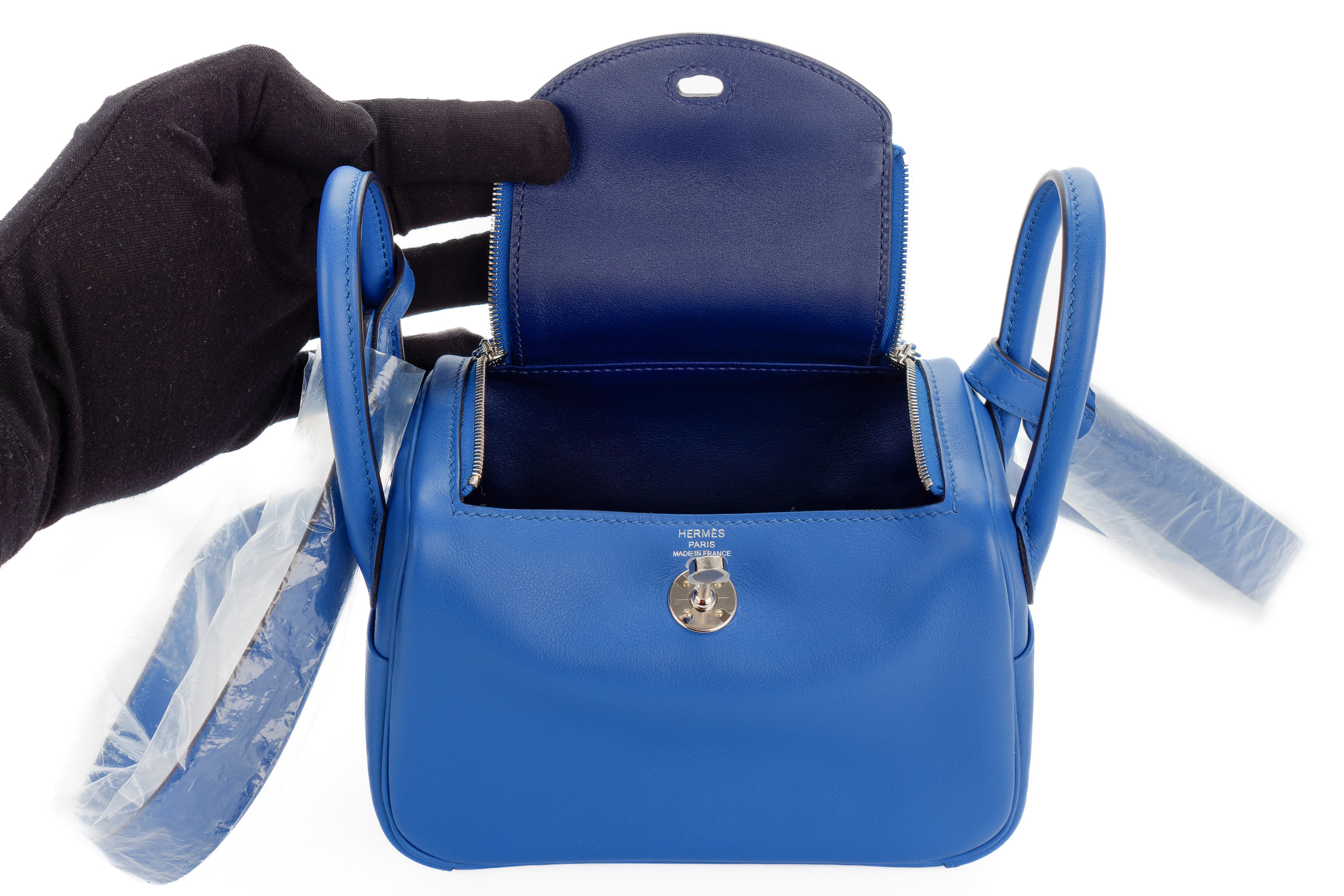 Hermès Mini Lindy Bleu France Swift Palladium Hardware