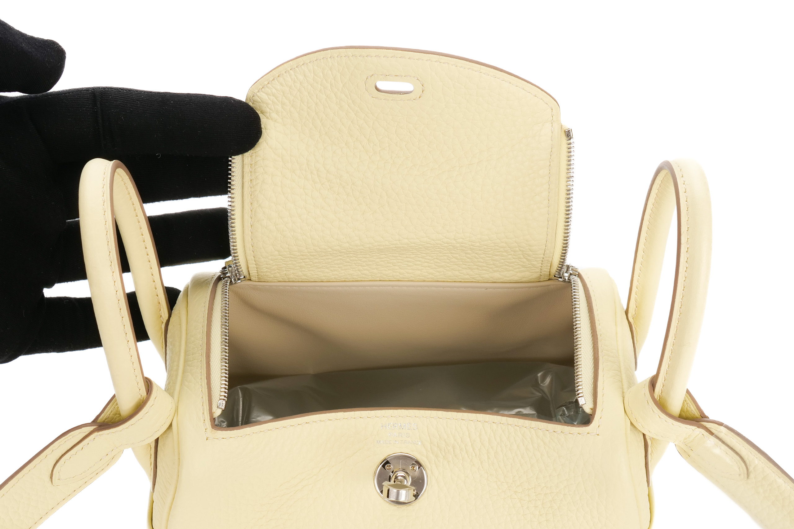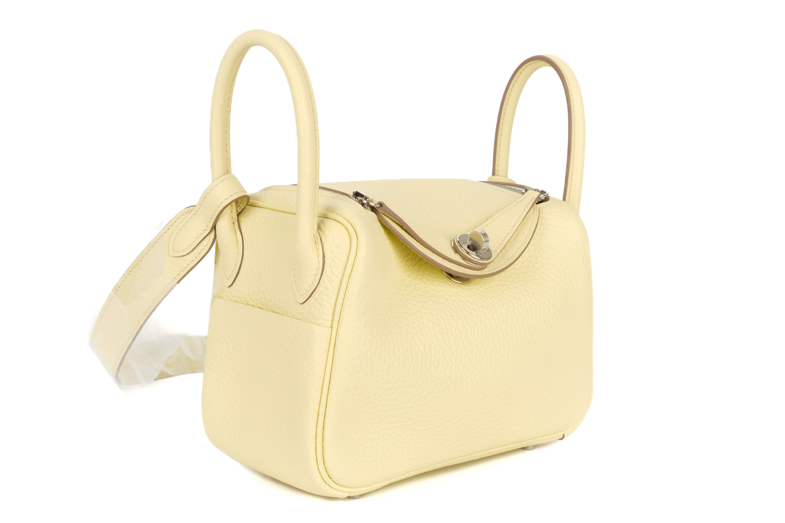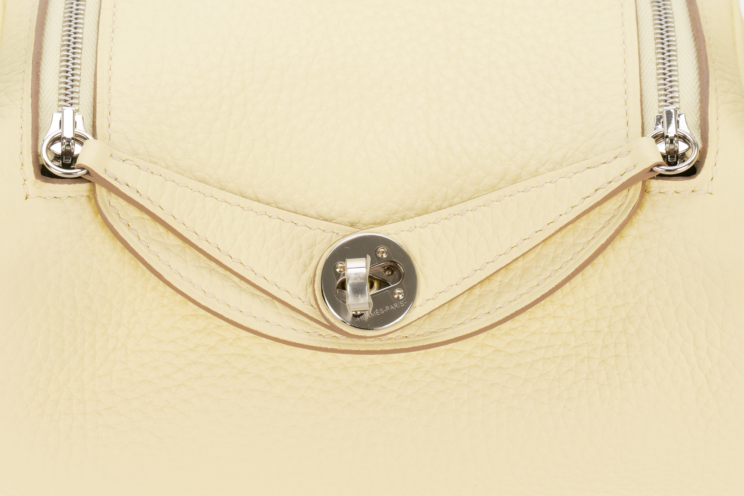Hermès Mini Lindy Verso Jaune Milton / Gris Perle Clemence Palladium Hardware / W Stamp 2024, Brand New