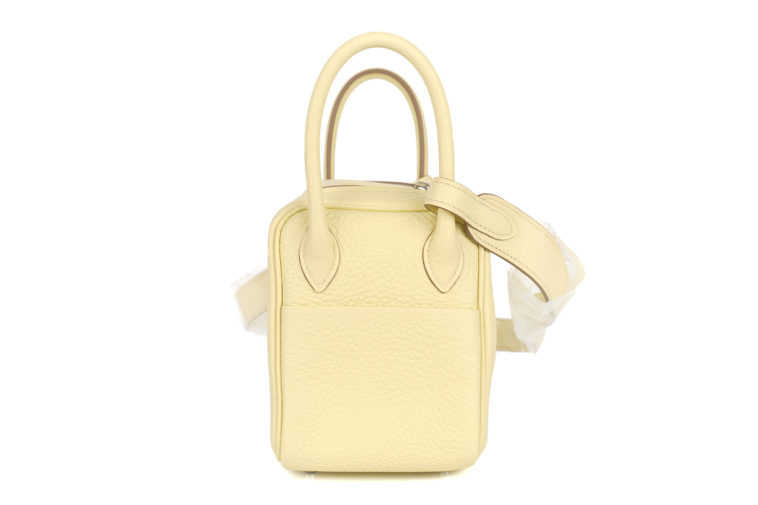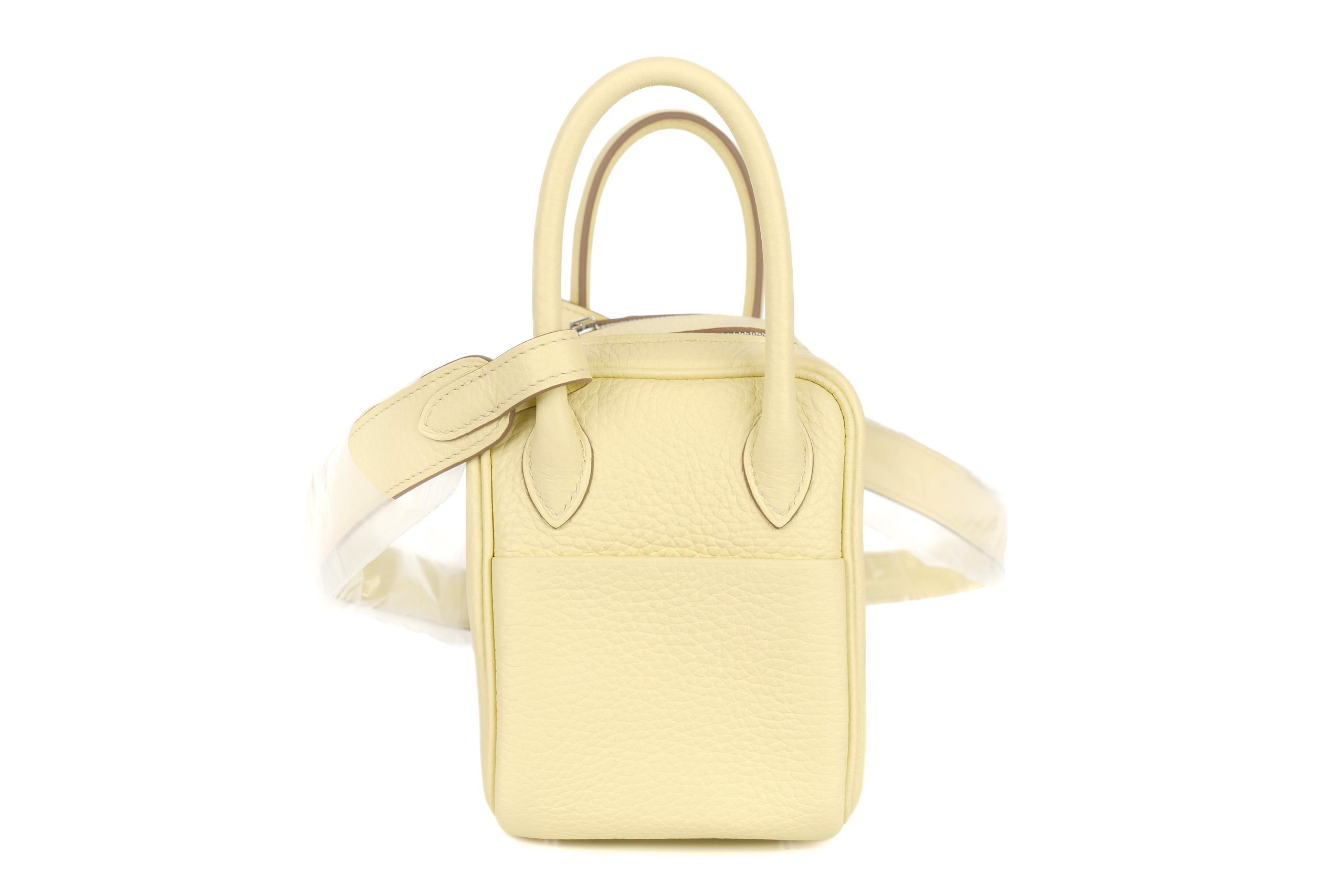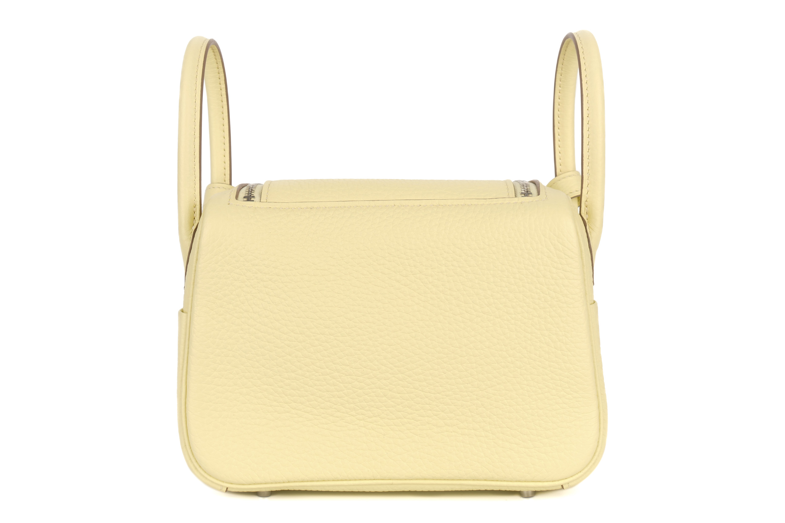 Hermès Mini Lindy Verso Jaune Milton / Gris Perle Clemence Palladium Hardware / W Stamp 2024, Brand New