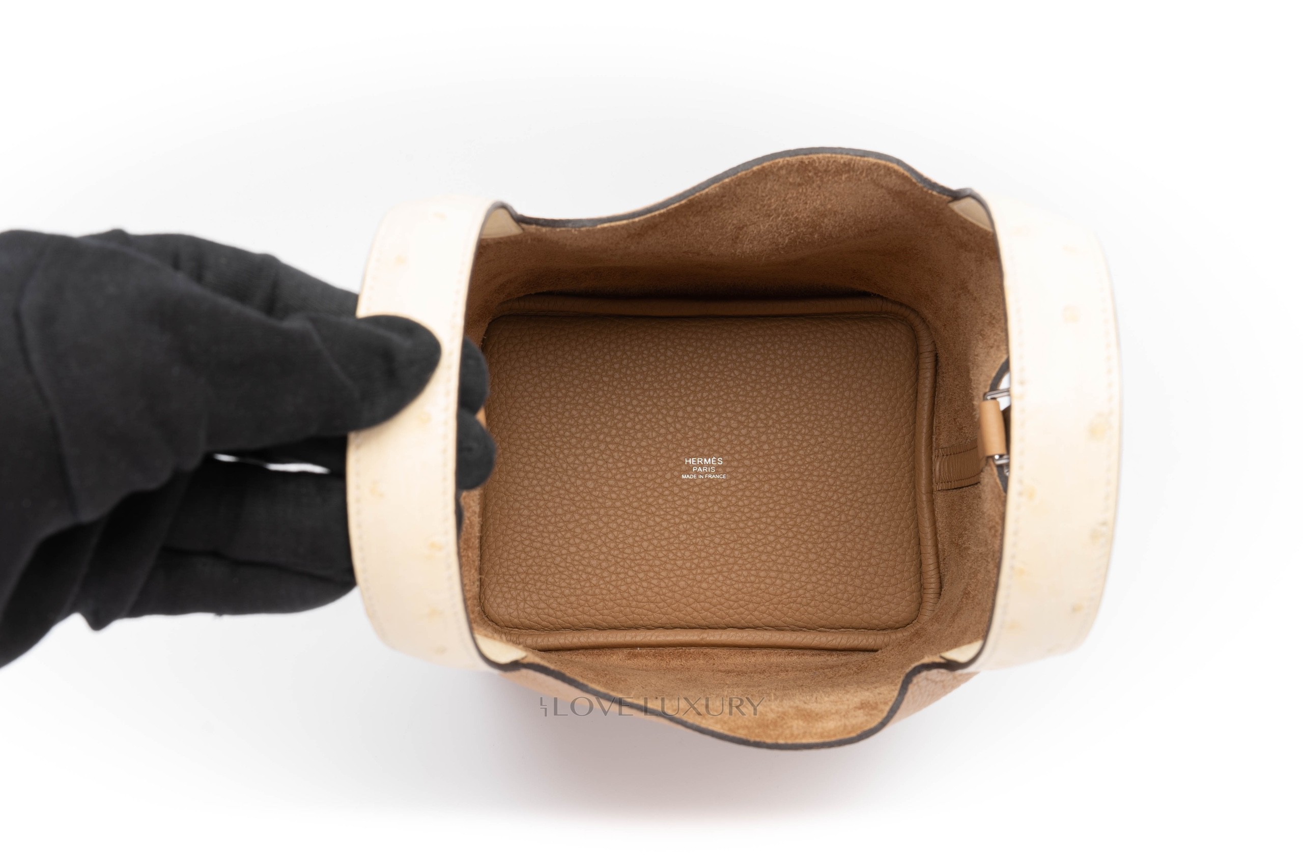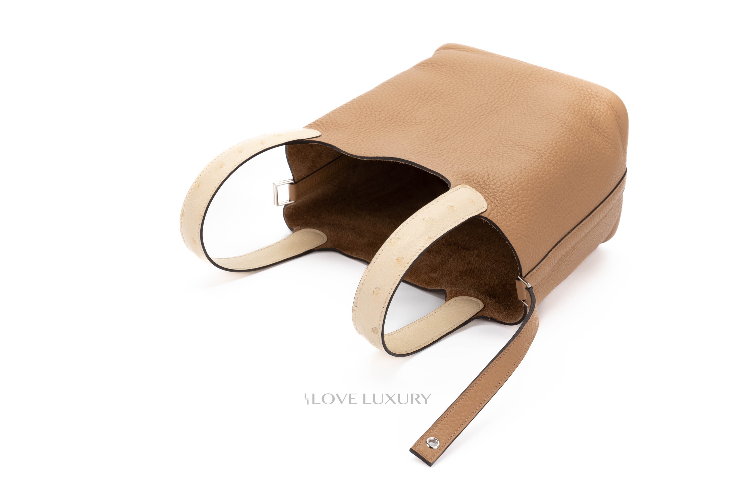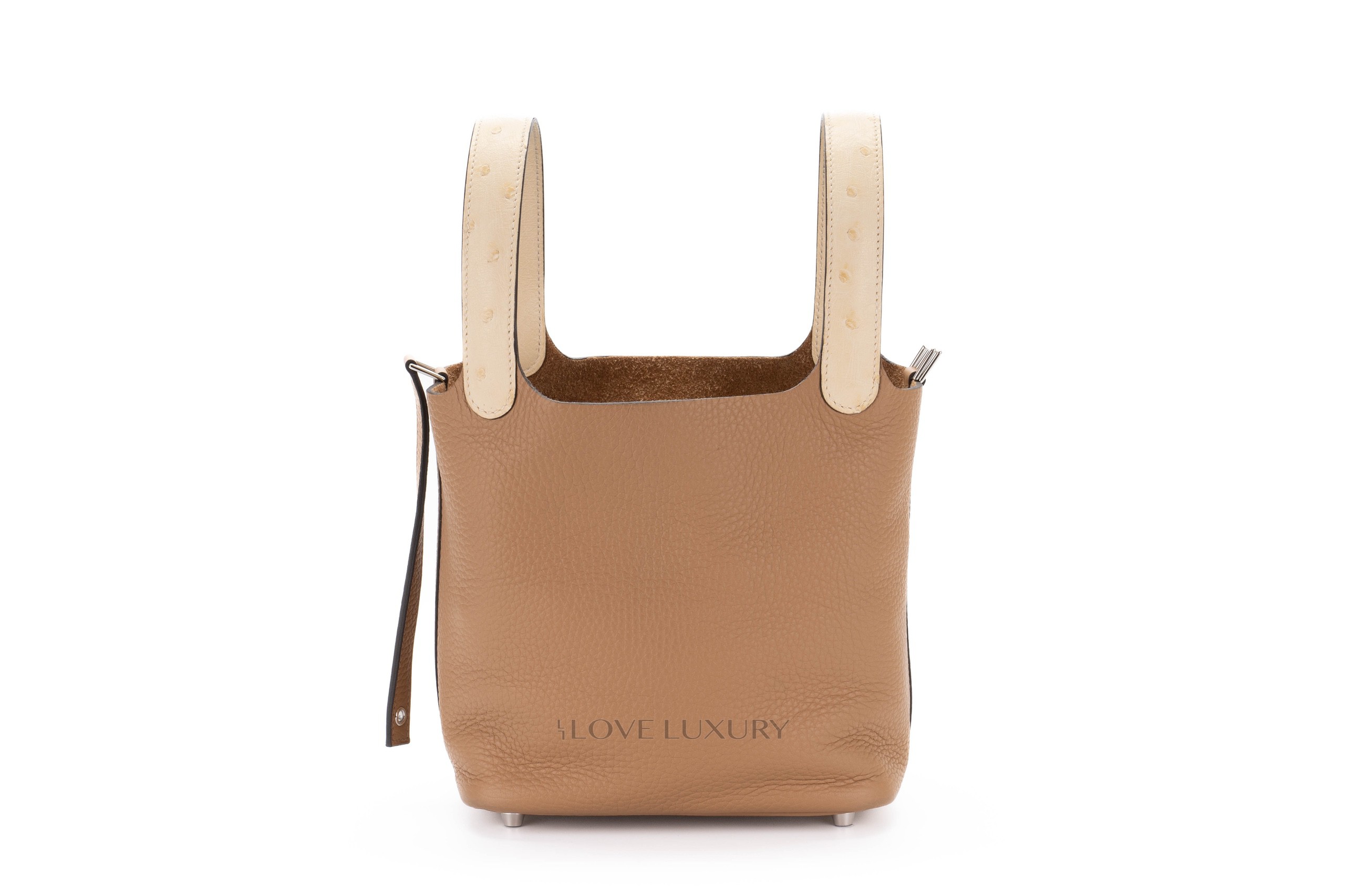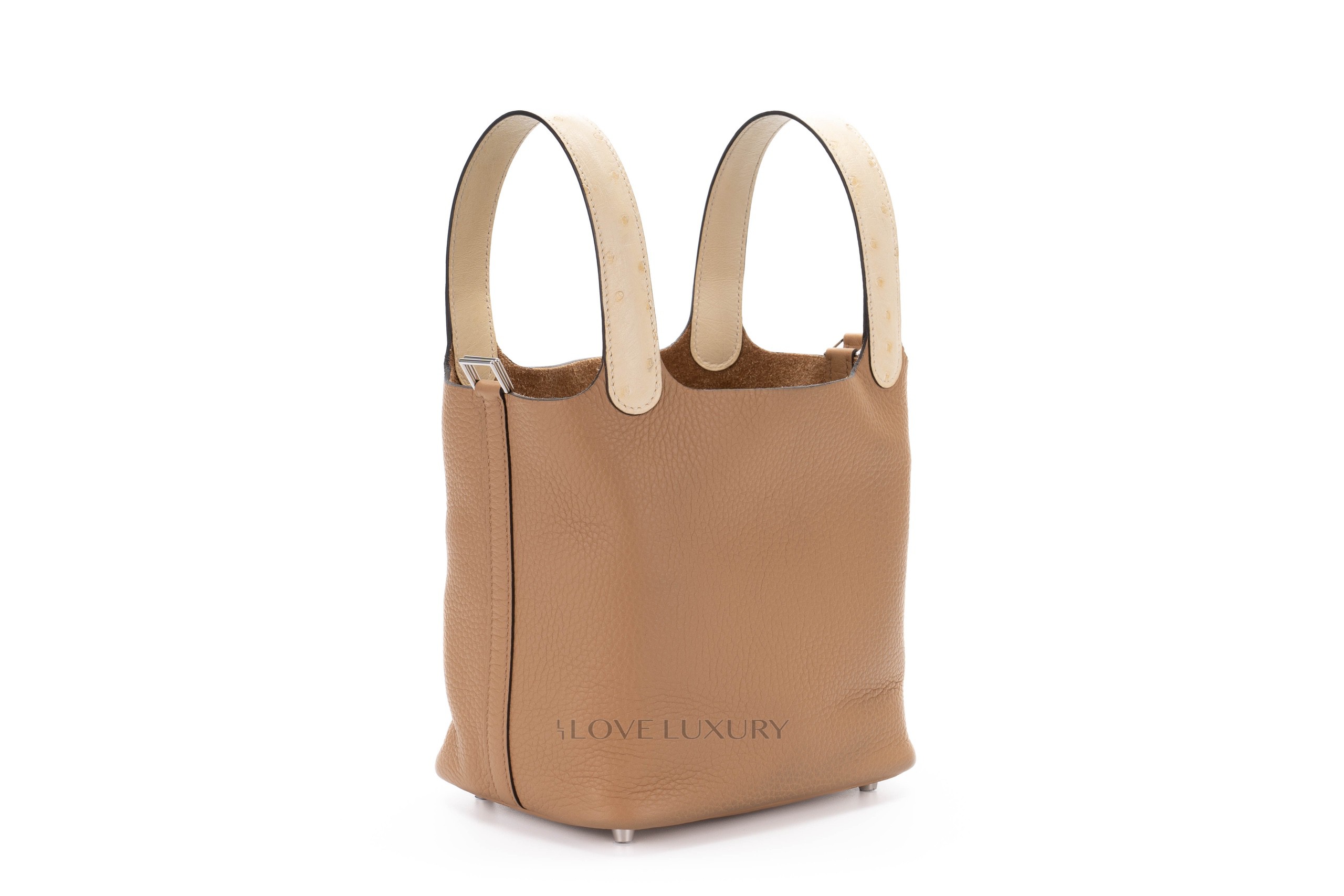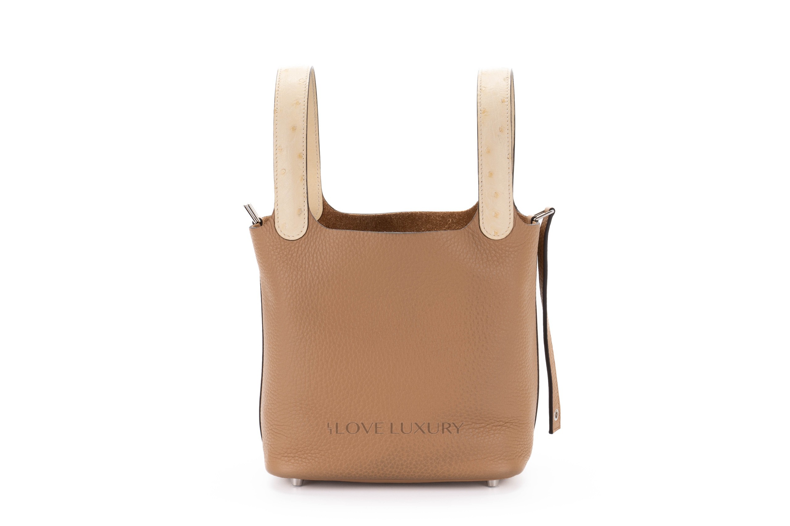 This bag comes in the newly released Chai colour with a hint of vanille ostrich on the handle. The Picotin is a great evry day or going out bag, the strap and lock closure give added security and ensure your belongings are stowed away saftely. This bag is box fresh with full set. CITIES are not required for Ostrich any longer.