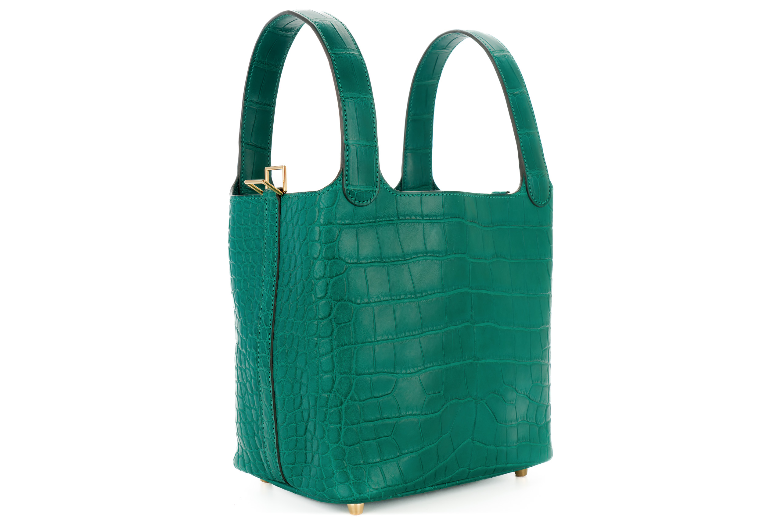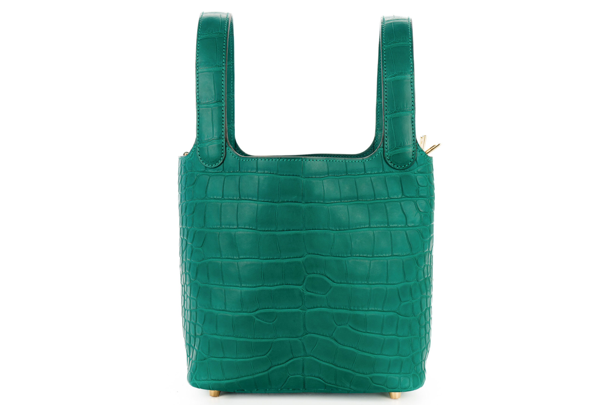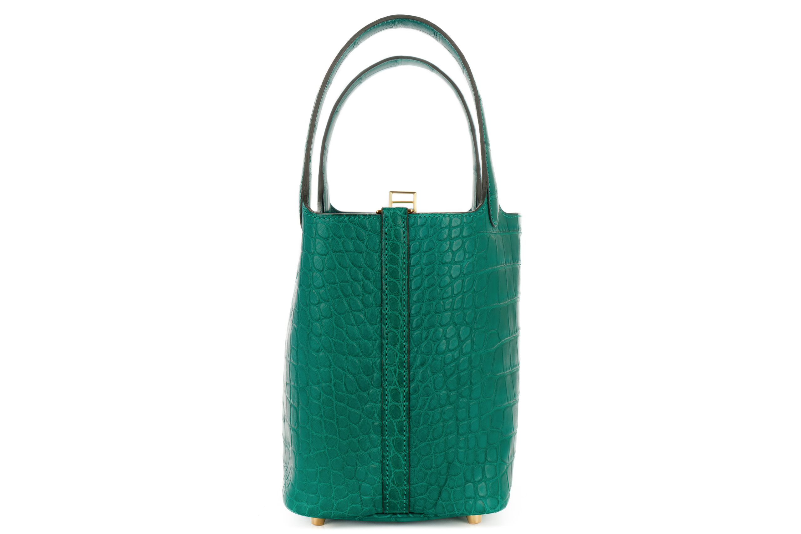Hermès Picotin 18 Malachite Matte Alligator Gold Hardware / W Stamp 2024, Excellent Preloved