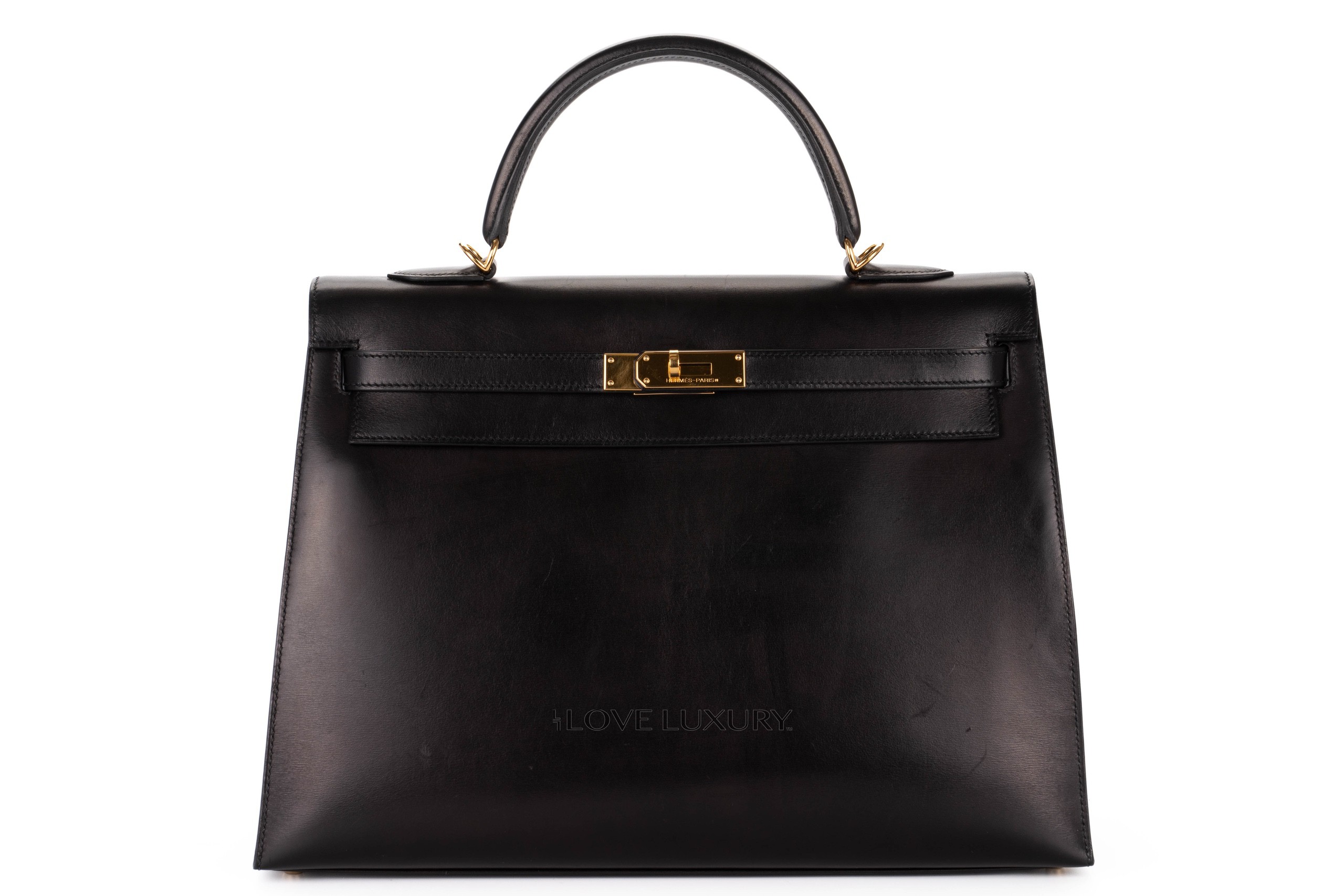Hermès Vintage Kelly 35 Box Calf Leather Black Gold Hardware / J Stamp 2006 Pre Loved Condition